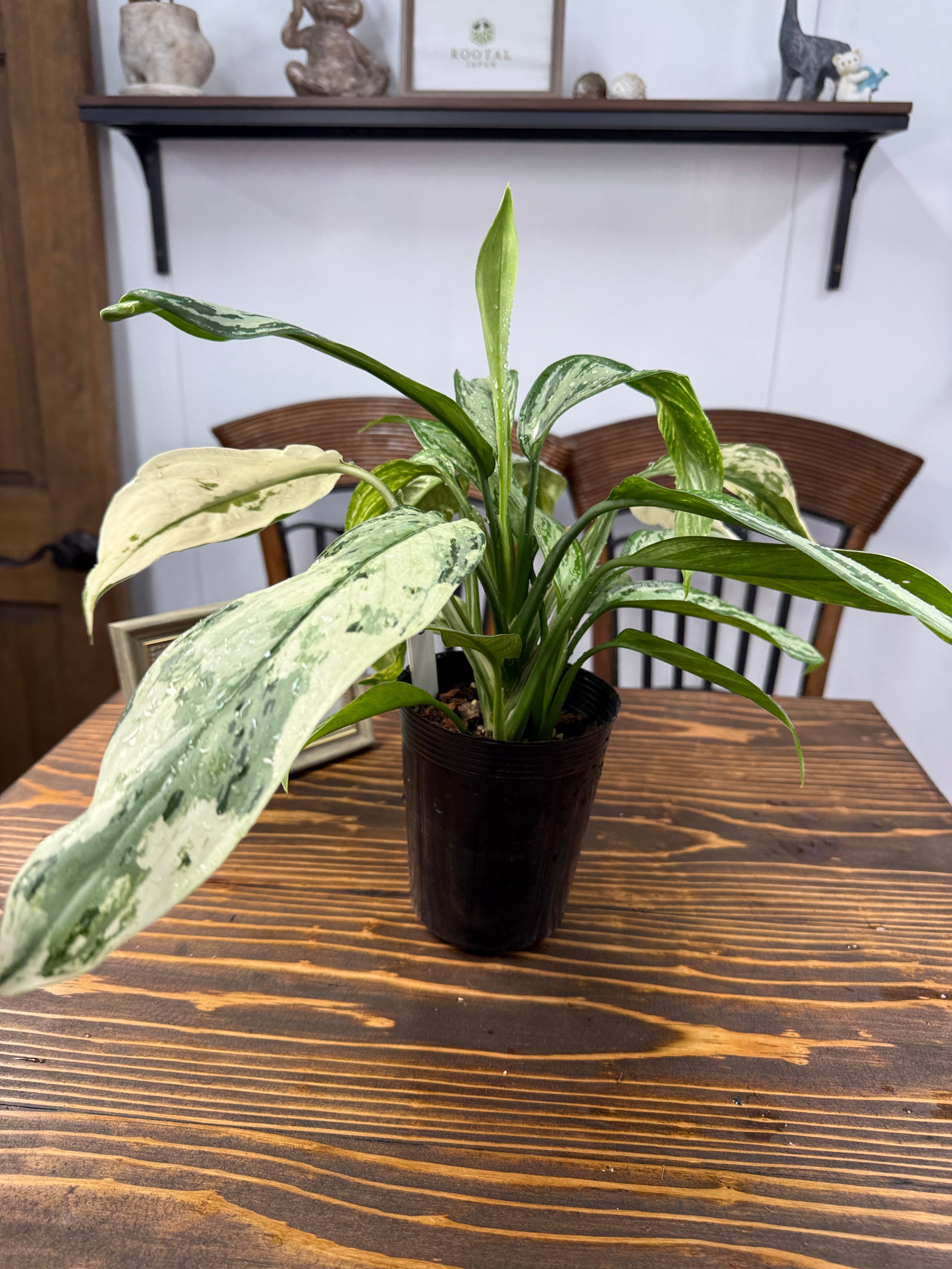 アグラオネマ シルバークィーン バリエガータは、斑入りの美しい葉が特徴の観葉植物です。この植物は、お部屋に洗練された雰囲気を演出し、リラックスできる空間を提供します!観葉植物を育てるのが初めての方にも優れた手入れのしやすさがあり、この機会にぜひお迎えください。