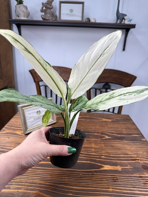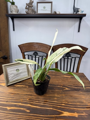 アグラオネマ シルバークィーン バリエガータは、美しい斑入り葉が特徴の観葉植物です。この植物は、お部屋にエレガントさを加え、心地よい空間を演出します!初めて観葉植物を育てる方でも手入れがしやすく、この機会にぜひお迎えください。