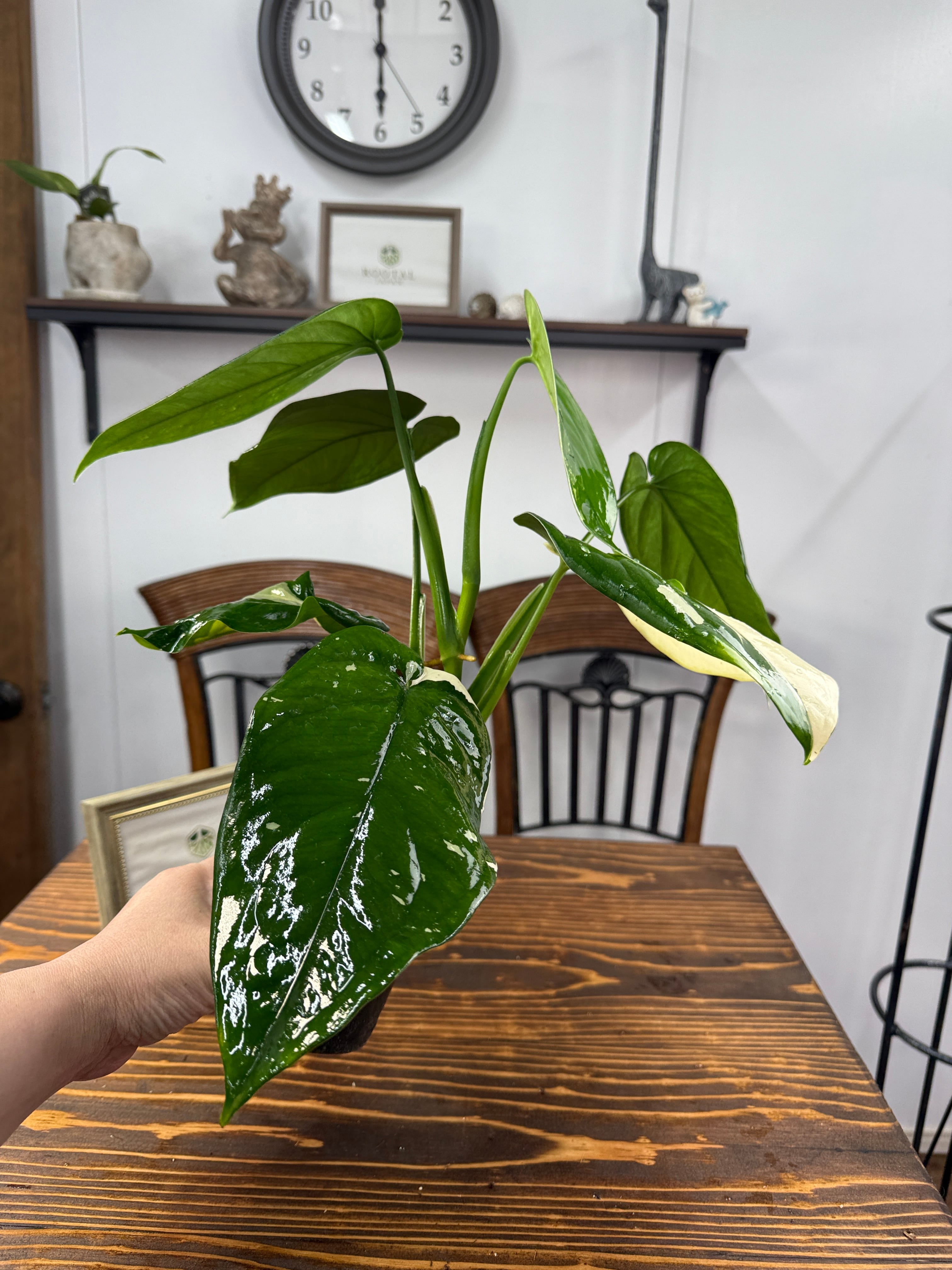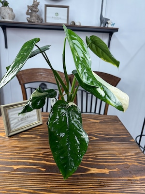 【シンゴニウム】チアペンス 斑入りは、その美しい斑入りの葉が特長的な観葉植物です!お部屋におしゃれなアクセントを加え、個性的な雰囲気を演出します。観葉植物初心者の方でも育てやすい特性を持っているため、ぜひこの機会にお迎えください。
