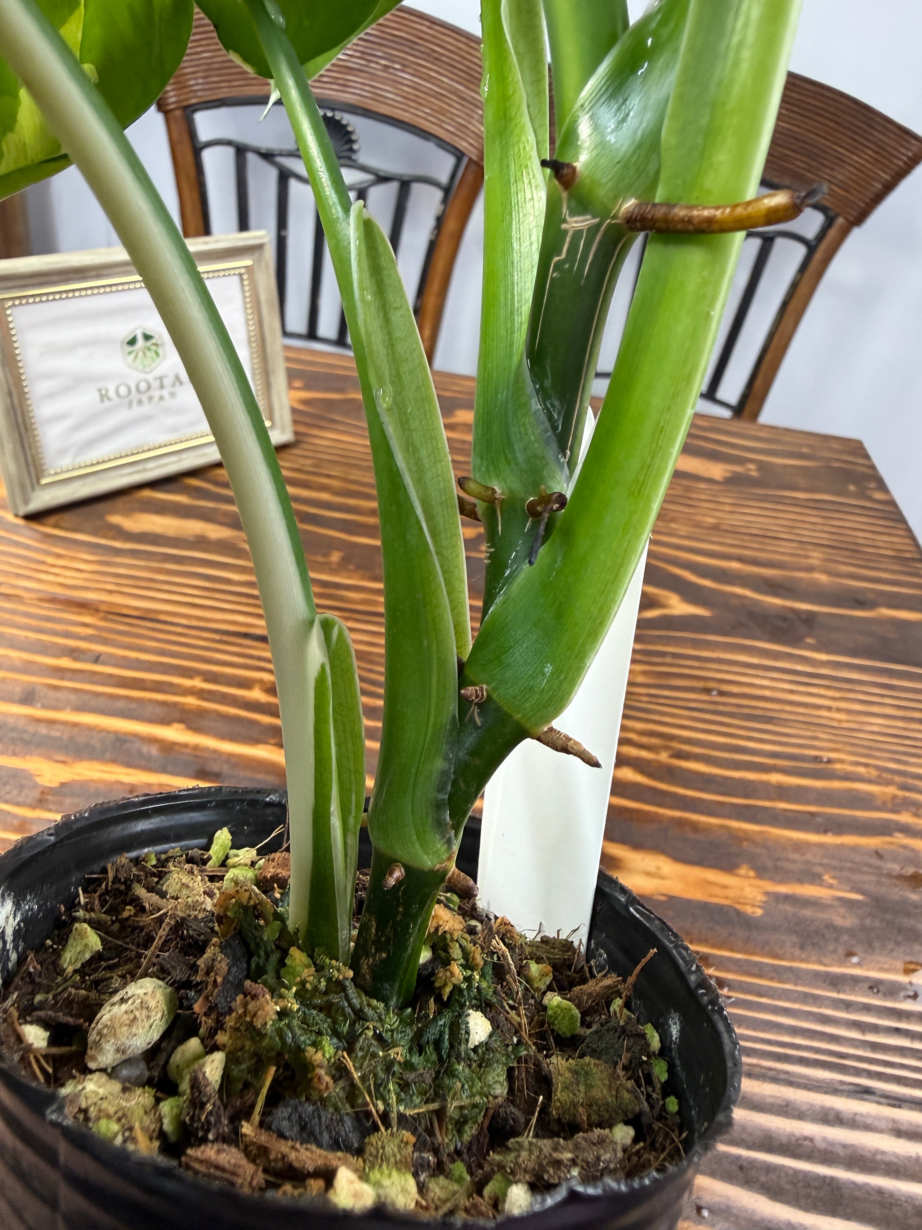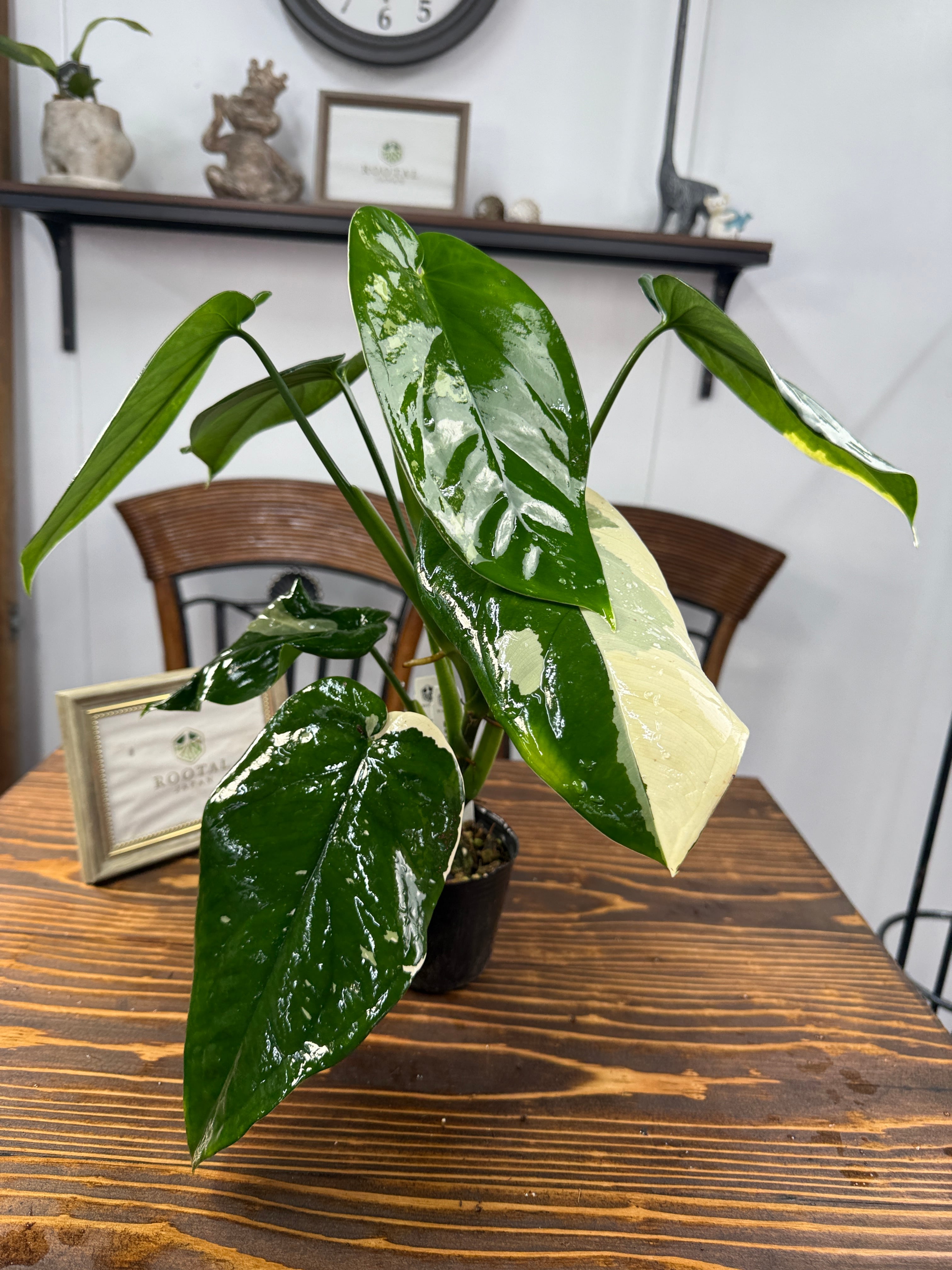 シンゴニウム チアペンス 斑入りのサイズは、約25㎝程度の健康的な苗を厳選してお届けいたします。このユニークな葉は、インテリアに視覚的な魅力を与え、どんなスペースにもぴったりです!