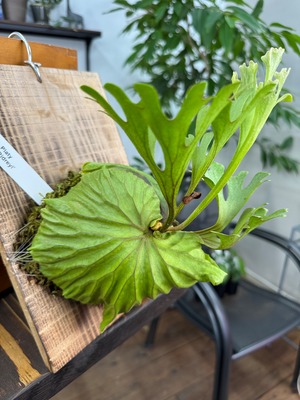 ビカクシダ リドレイは、その美しい葉の形と色合いが大変魅力的で、見る人を引きつけます。出荷時のサイズはおおよそ25cm程度です。