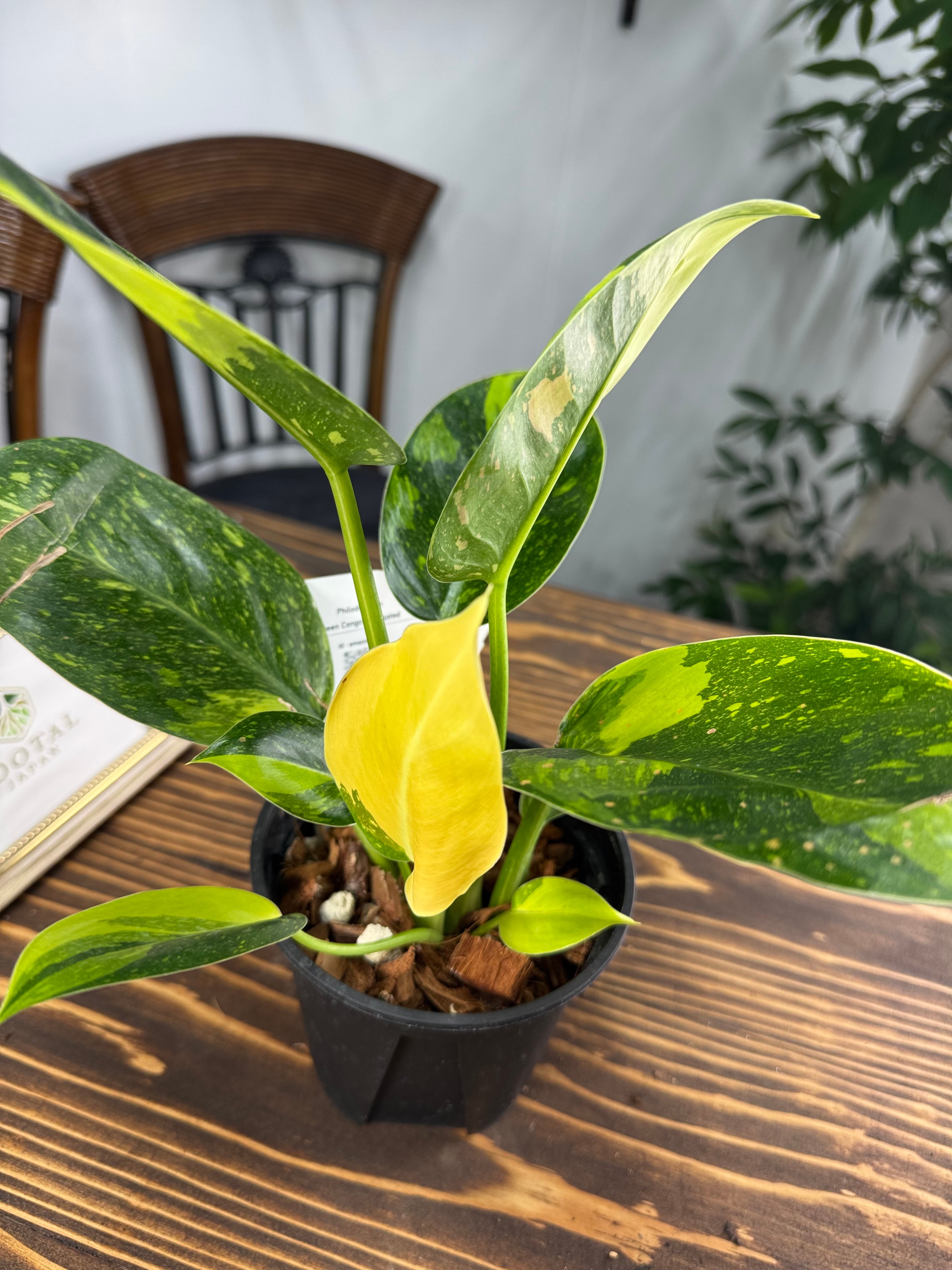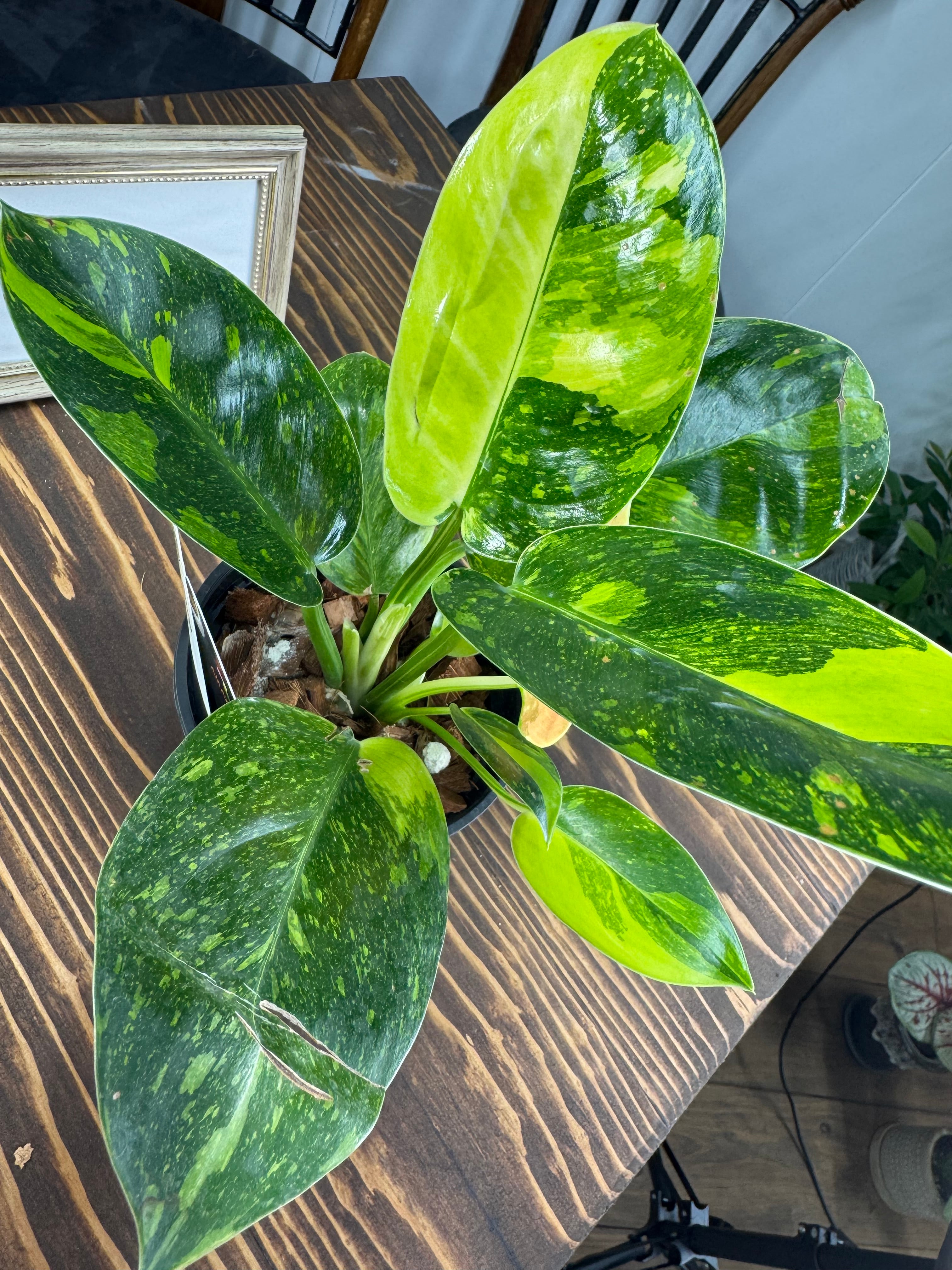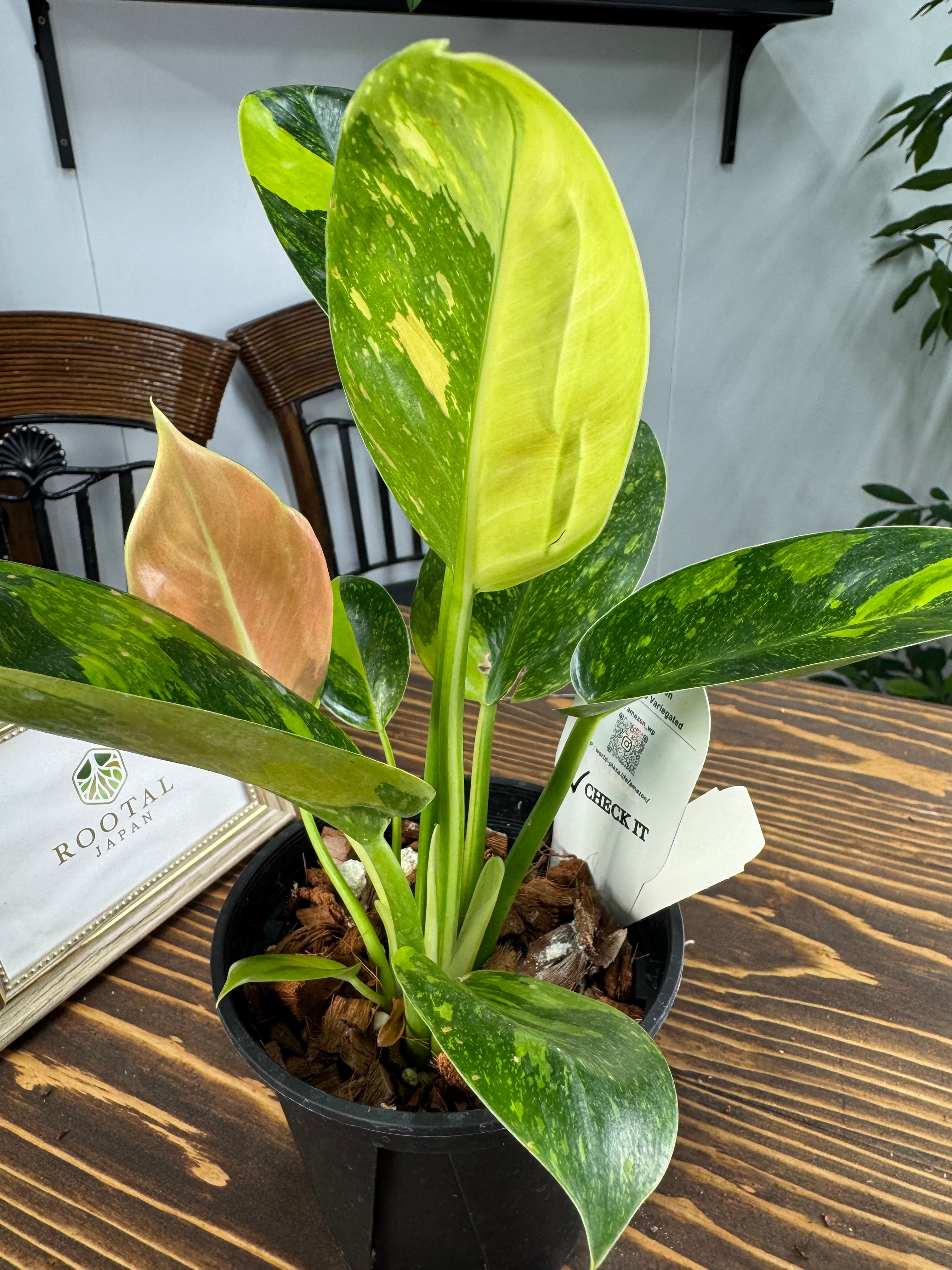 美しい斑入りが魅力の観葉植物!フィロデンドロン グリーンコンゴは、その特有の葉模様と華やかな色合いがインテリアを一層引き立ててくれる一品です。お手軽に育てられるので、観葉植物初心者の方でも安心して楽しめます。
