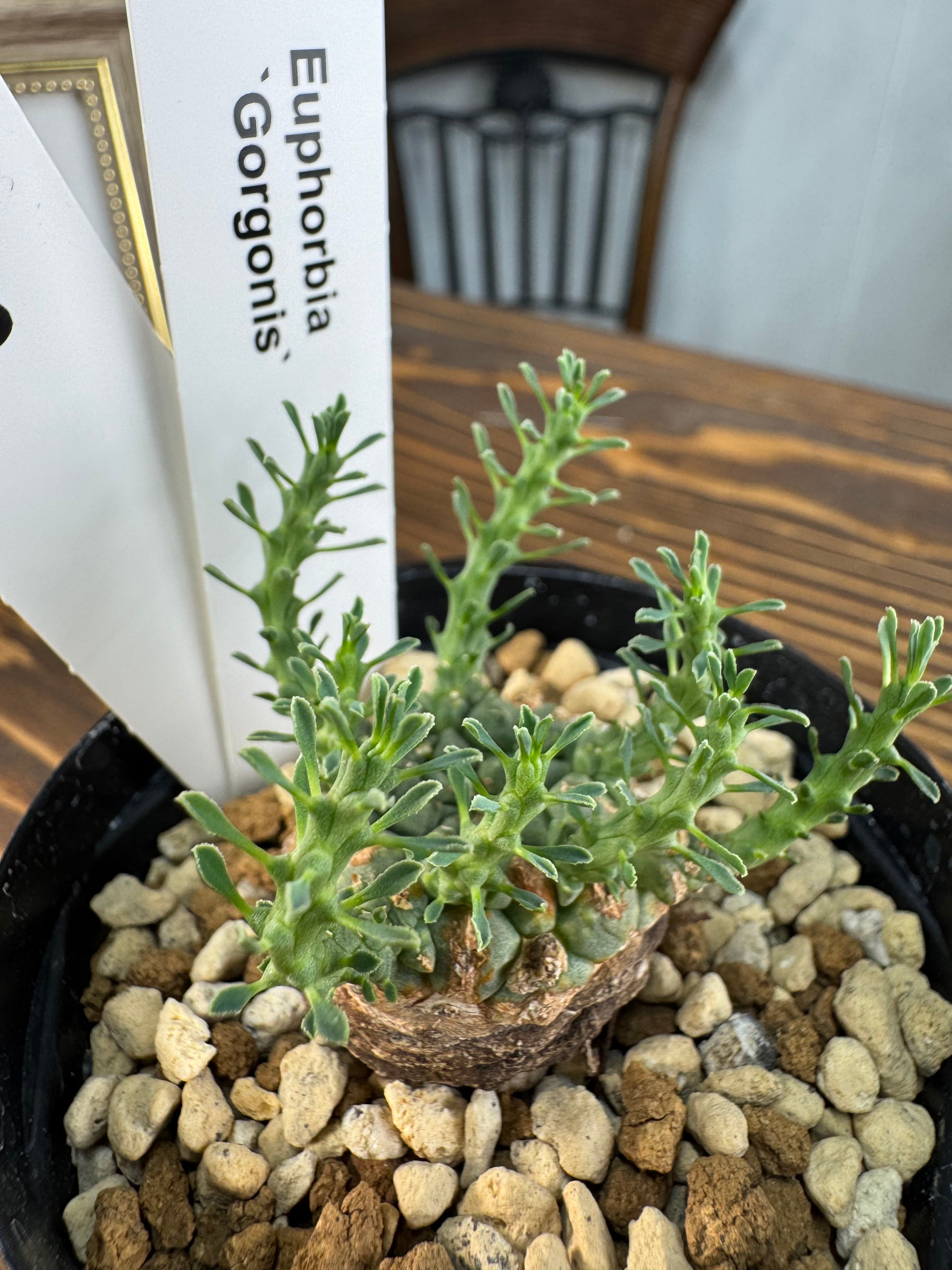 ユーホルビア ゴルゴニスは、個性的な形状と深いグリーンが特徴です。お届けは2.5号ポットにて、健やかな苗を厳選しておりますので、成長するにつれてその存在感をじっくりとお楽しみいただけます。