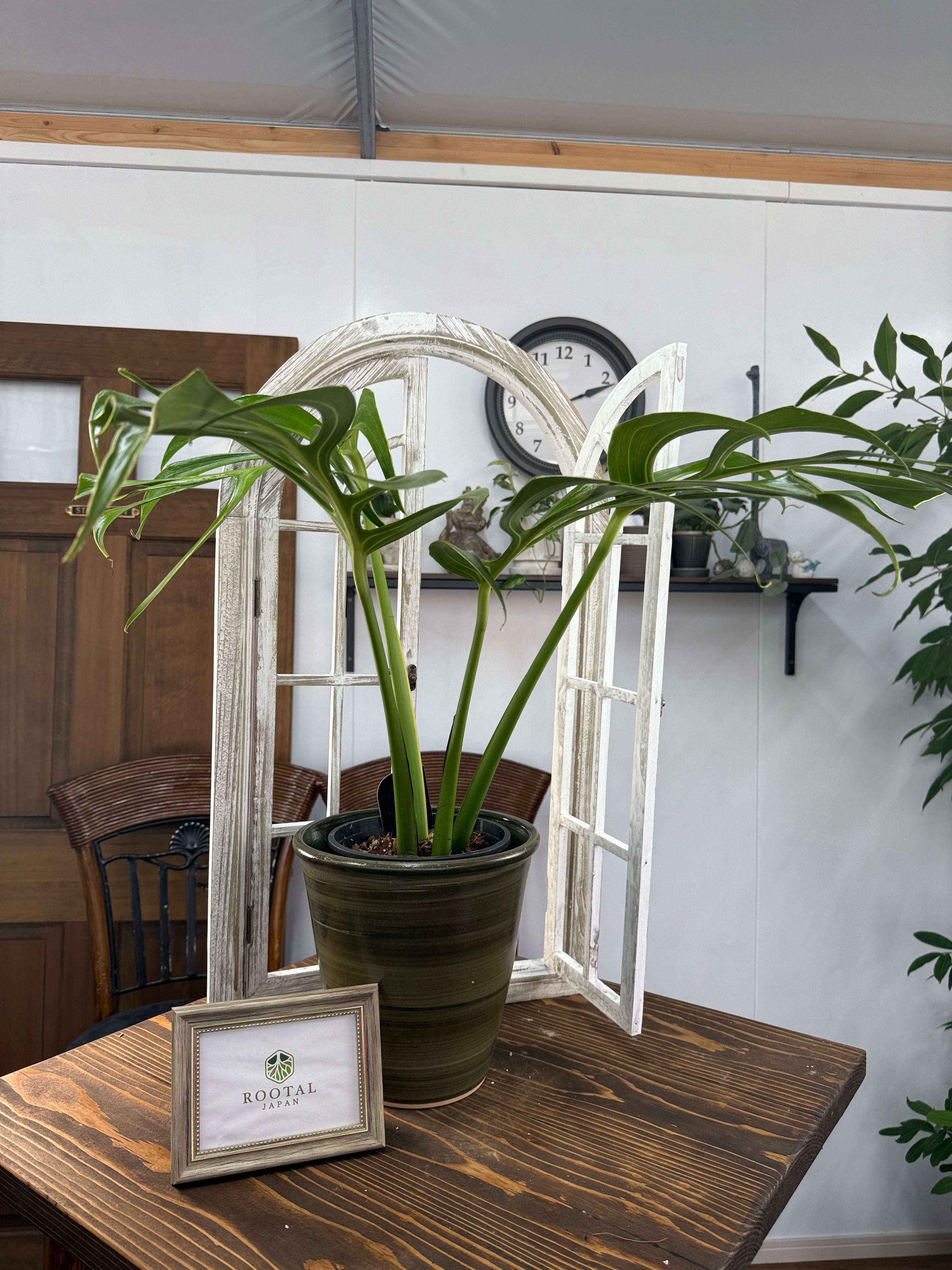 モンステラ バールマルクスフレームは、個性的な葉の形状が特徴的な観葉植物です。その美しい緑色がインテリアにエネルギーを与え、どんな空間にも絶妙に溶け込みます!育成が簡単で、初心者の方でも安心して育てられますので、この機会にぜひお迎えください。