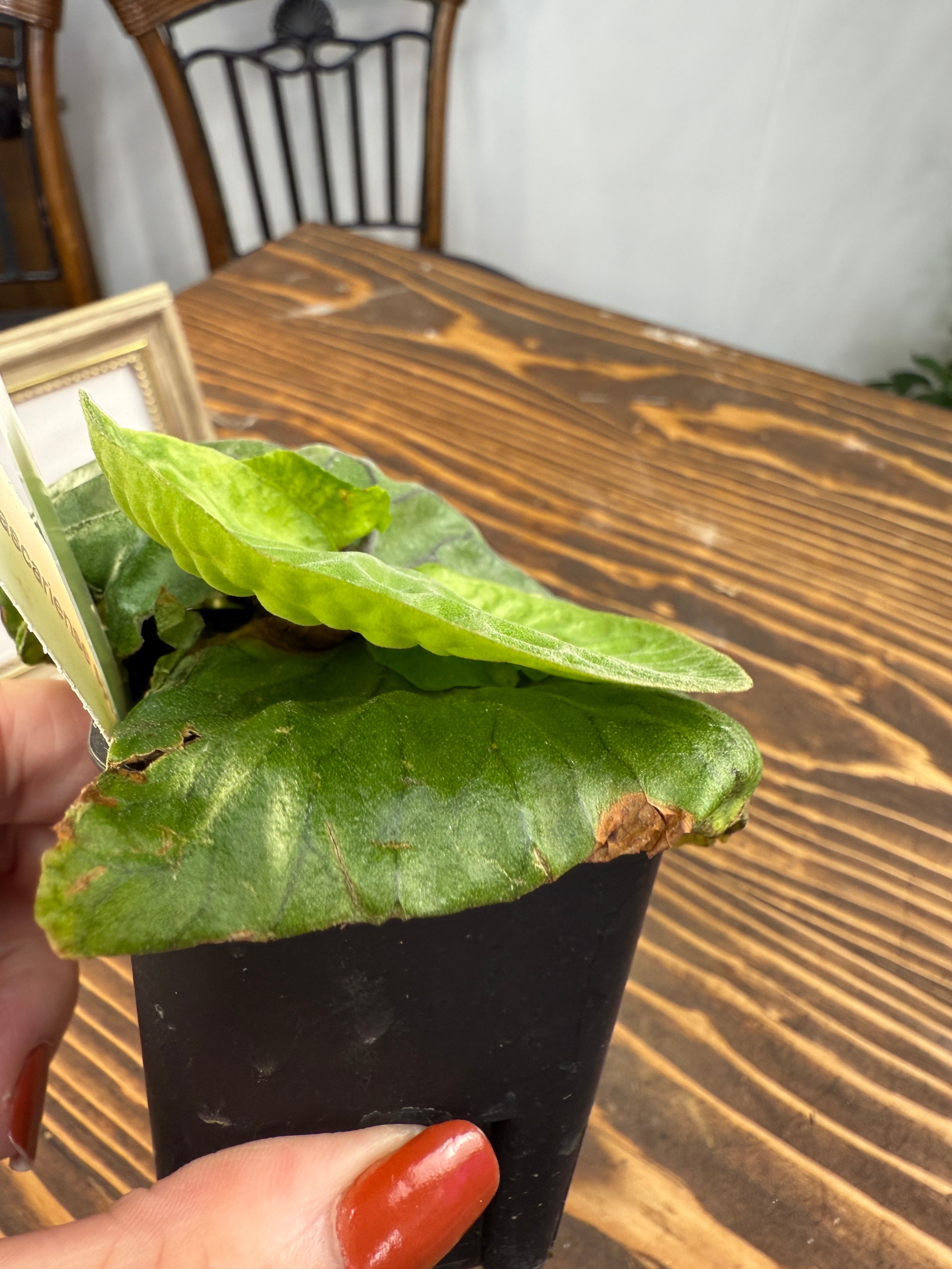 苗の状態でのお届けとなりますため、定期的な植え替えをお願い申し上げます。若干の葉のダメージが見受けられることがありますが、成長過程における自然な現象としてご理解いただければ幸いです。十分な日光を受けることで健康的に成長し、その魅力を一層引き立てますので、丁寧なお手入れをお願いいたします。何かご不明な点がございましたら、お気軽にお問い合わせください。