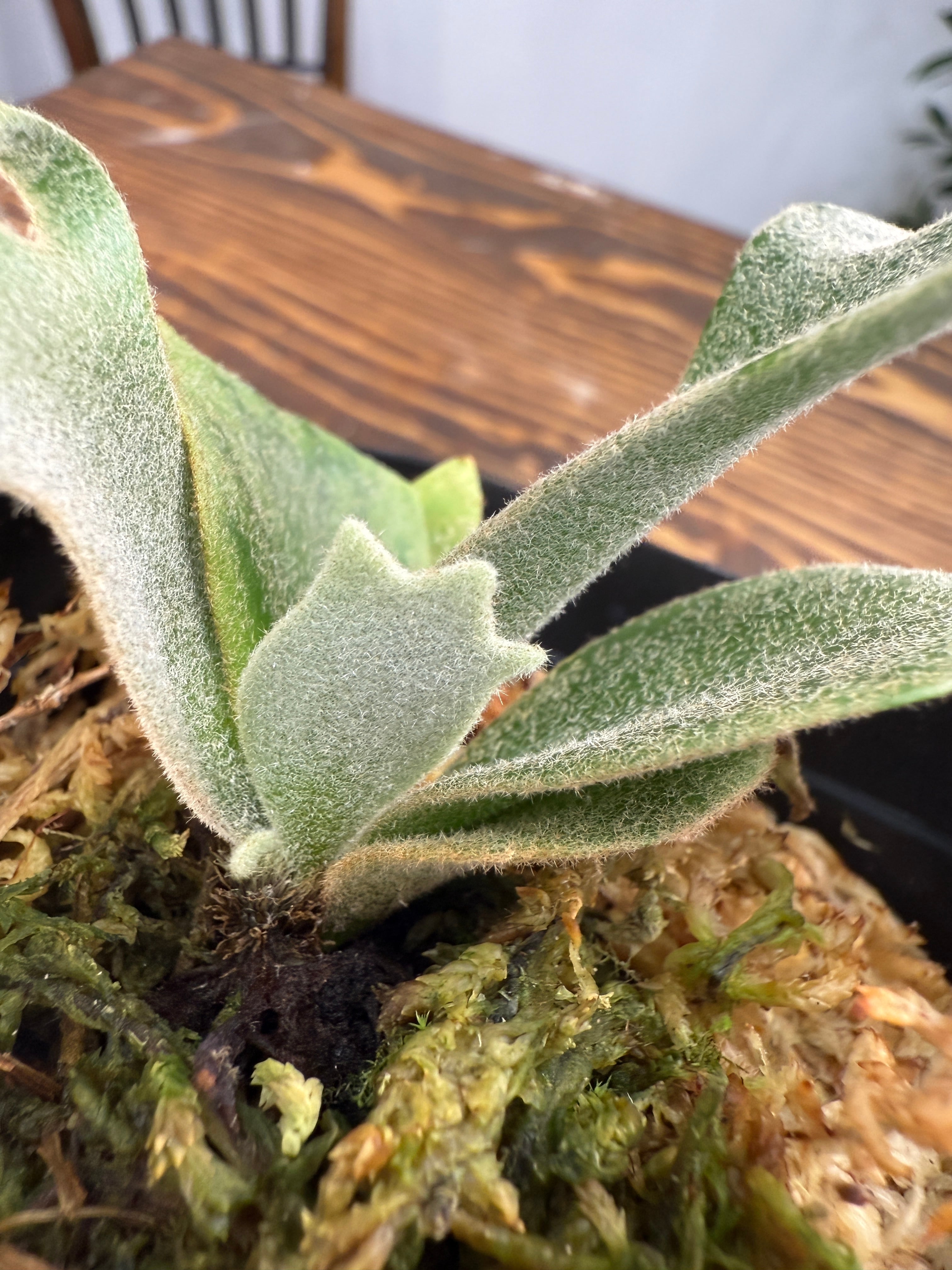 ビカクシダ OMG TCは、成長するごとにその魅力が増していきます。個性的な姿を持つこの植物は、お部屋の特別なアクセントになり、目を引く存在感を発揮します!