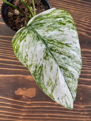 エピプレムナム バリハノマン バリエガータは、出荷時のサイズが約15㎝(3号ポット)で、特有の美しいバリエガータ模様が魅力的です。成長とともにその風合いが変わり、毎日のお手入れが楽しみになることでしょう。