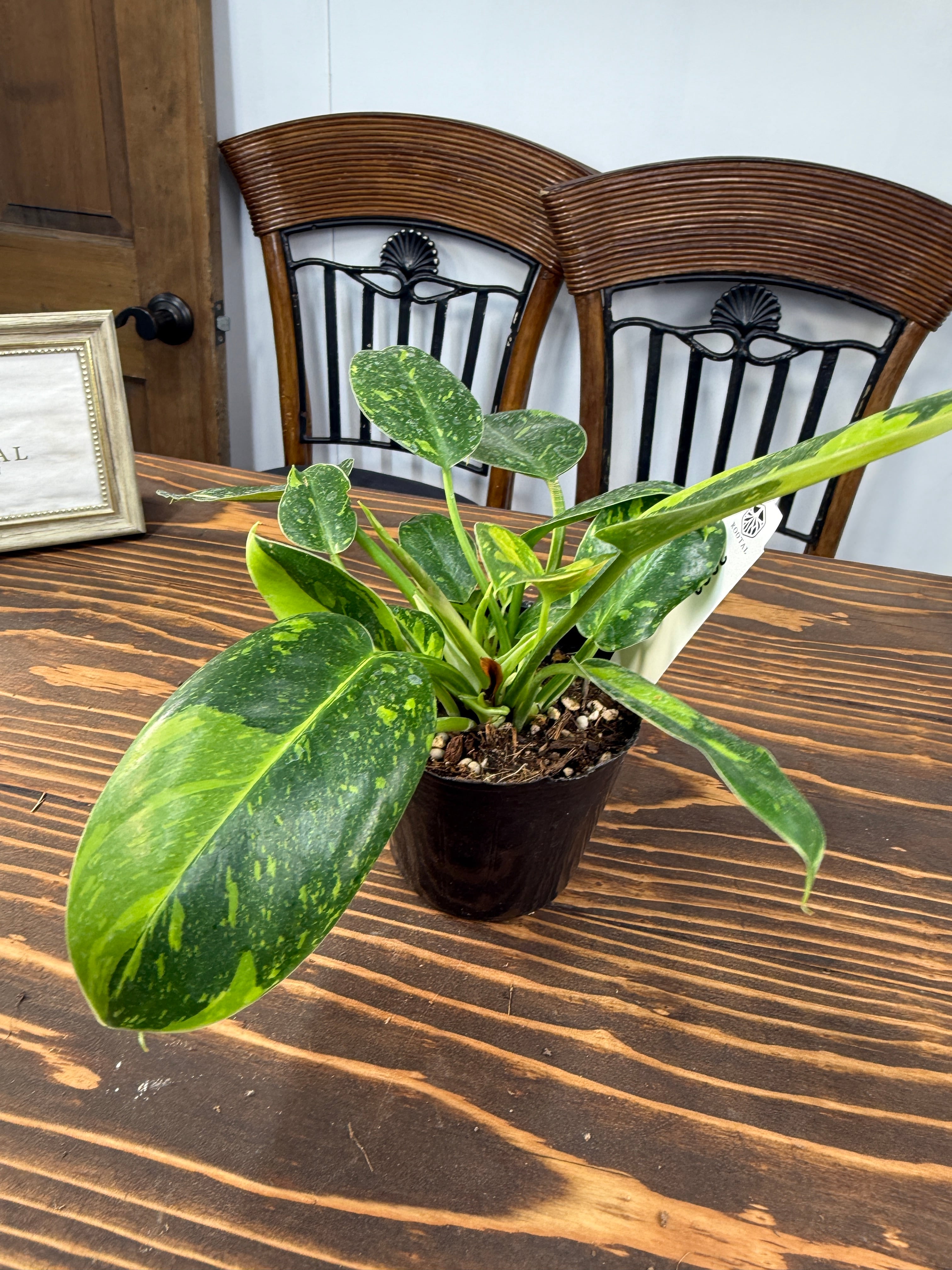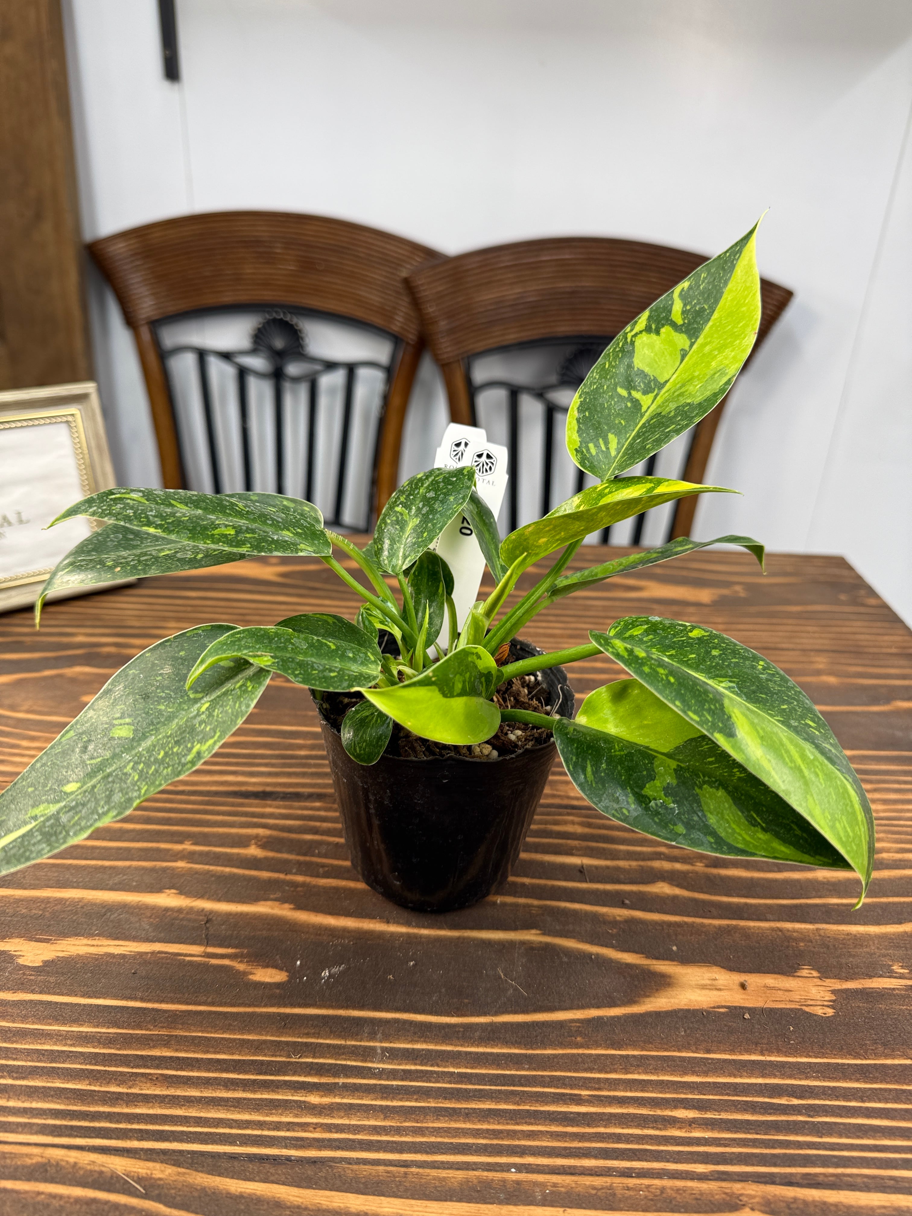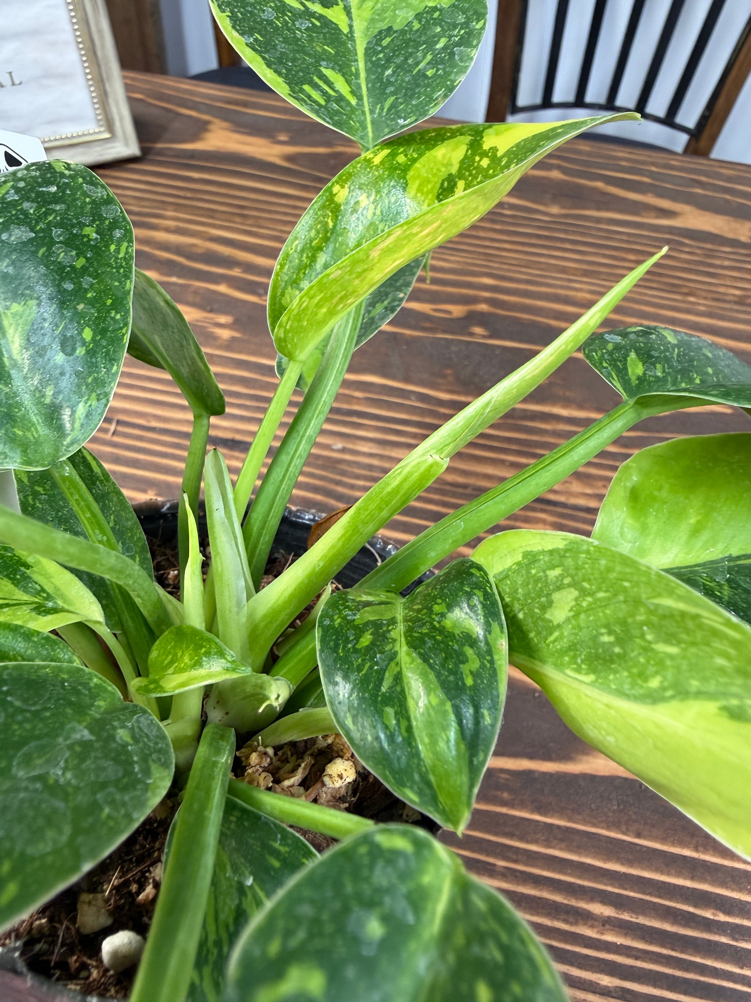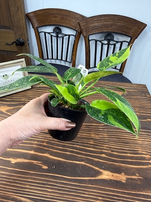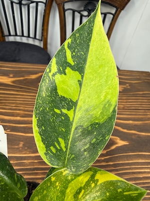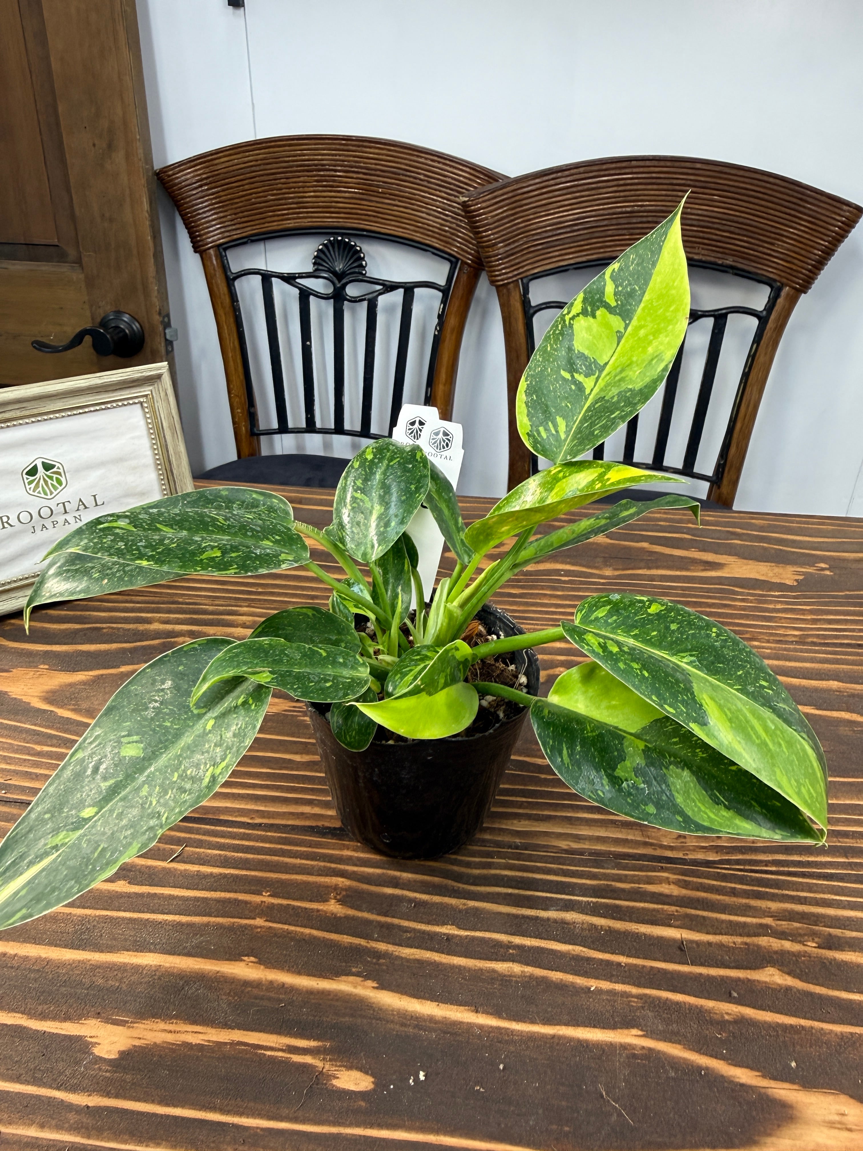 美しい斑入りの葉が特徴のフィロデンドロン グリーンコンゴバリエガータ!その独特な色合いと魅力的なフォルムが、お部屋のインテリアに新たな息吹を吹き込んでくれる一品です。育てやすい特性を持ち、玄関やリビングにぴったりな存在となることでしょう!