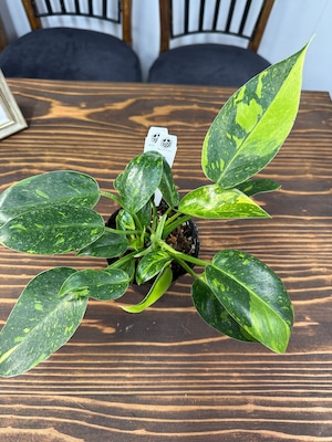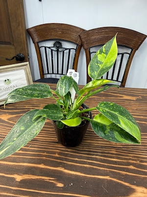 フィロデンドロン グリーンコンゴバリエガータの葉は、深い緑に美しいクリーム色のバリエーションが施され、目を魅了します。健康な状態の3号ポットの苗をご用意しております。特別なグリーンとして楽しんでいただけることでしょう。