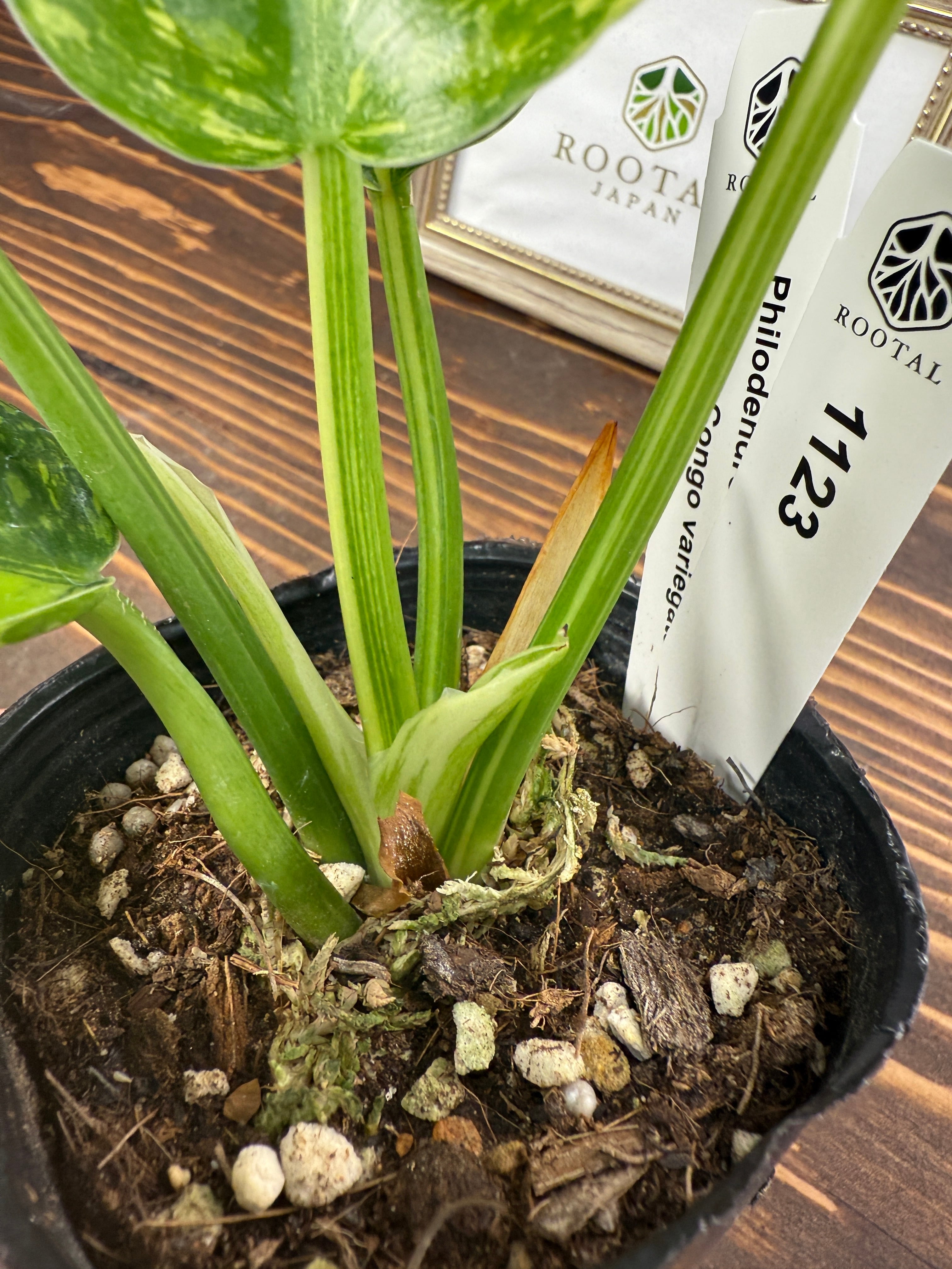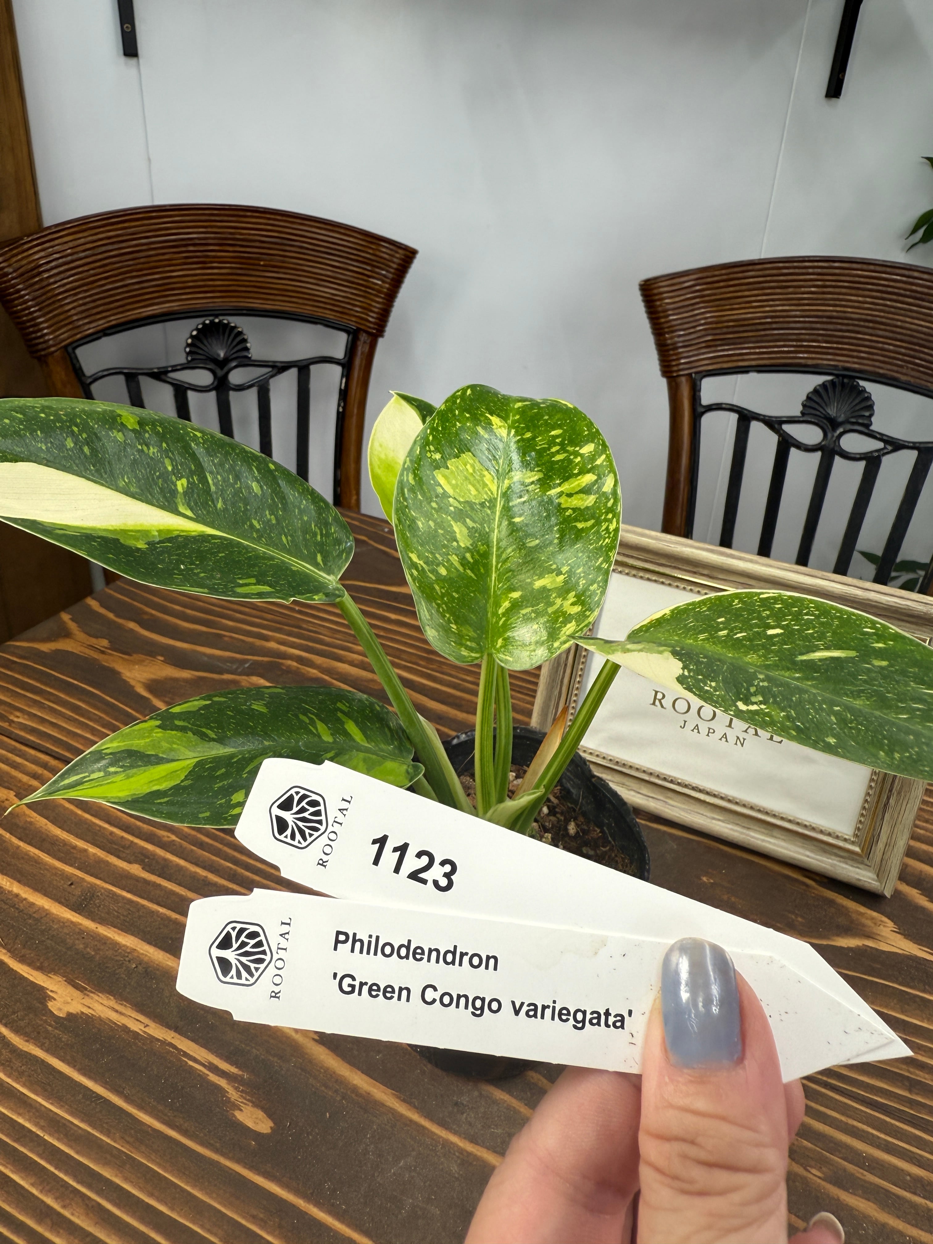 ★1123【優美な緑】フィロデンドロン グリーンコンゴバリエガータ(3号ポット)