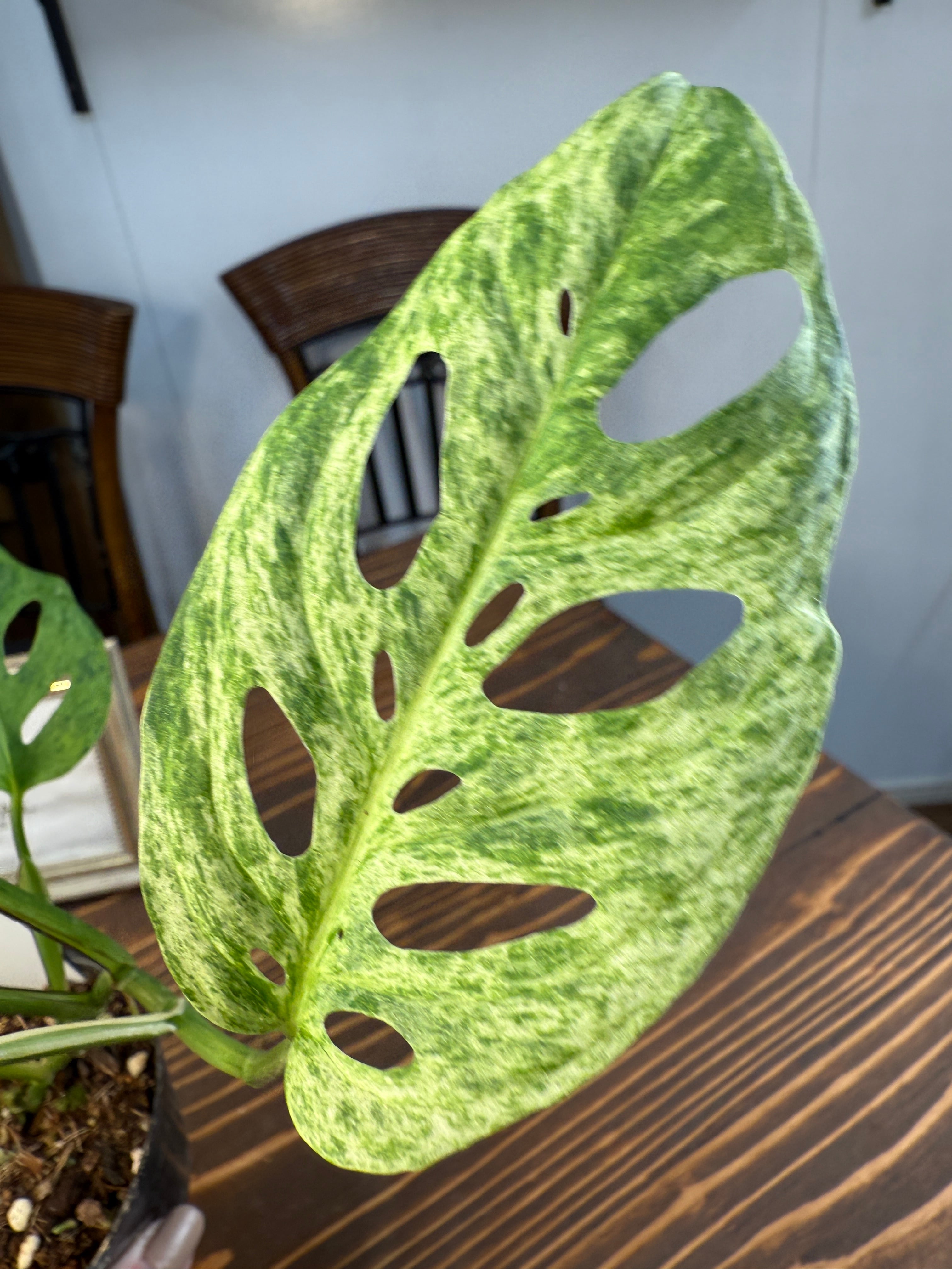 モンステラ アダンソニー モトルド バリエガータは、緑の濃淡に美しい斑入りが施された葉が特徴です。サイズは3号ポットでお届けしますので、どんなスペースにもぴったりフィットします。見る人を惹きつける存在感は、インテリアに贅沢なアクセントを与えてくれるでしょう。