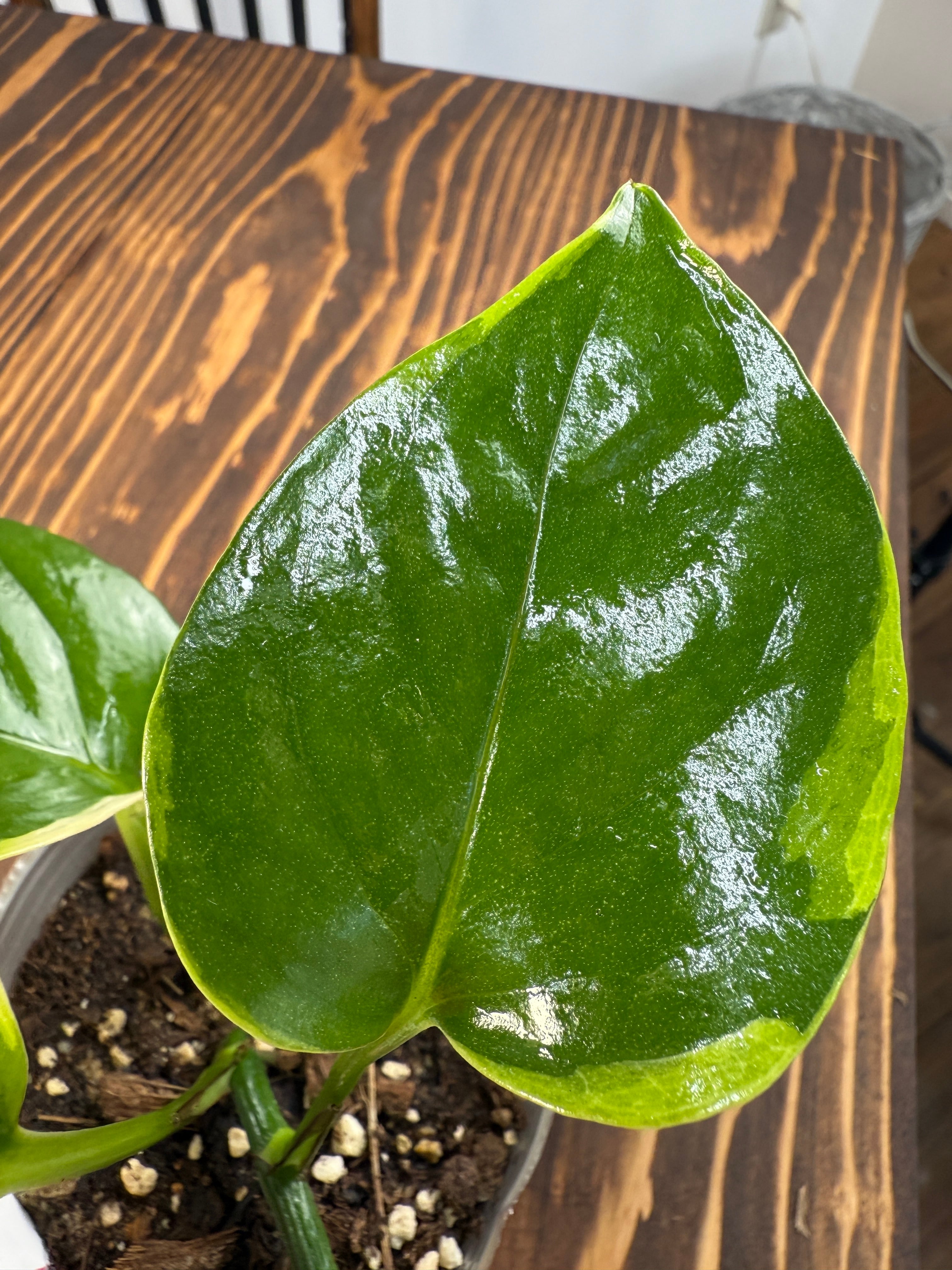 ポトス AWドリームの葉は、美しい緑色がグラデーションになっており、そのユニークな形状が視線を引き寄せます。出荷時のサイズは3号ポット、健康で活きのいい個体をお届けします。
