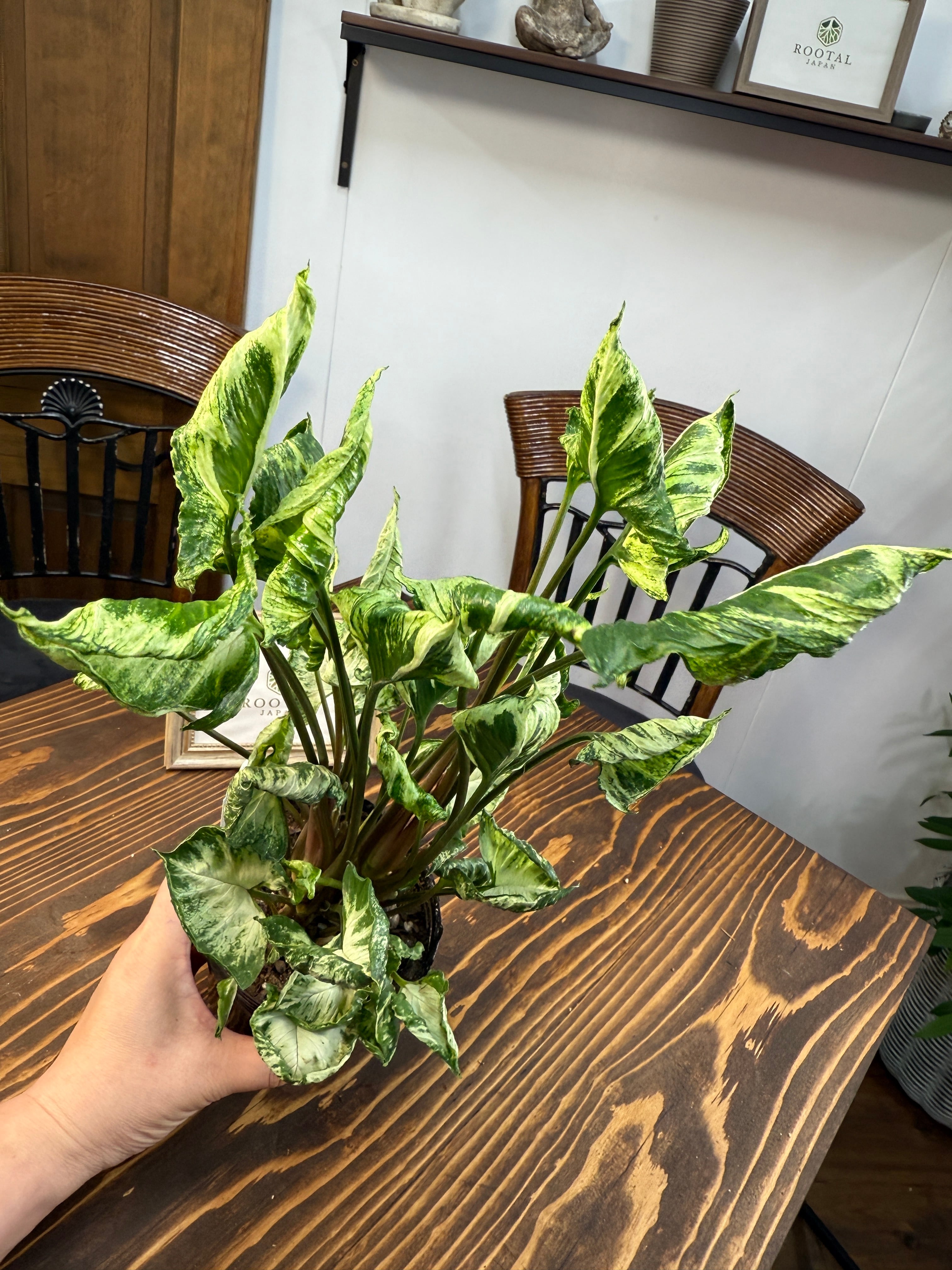 葉に若干の傷みが見受けられることがありますが、これはシンゴニウムの成長過程の一部であり、こちらをご了承いただけますと幸いです。到着後は早めに明るい場所に置いていただき、しっかりとした環境で育てていただければと思います。万が一、商品に不備がございましたらお気軽にショップまでご連絡ください。