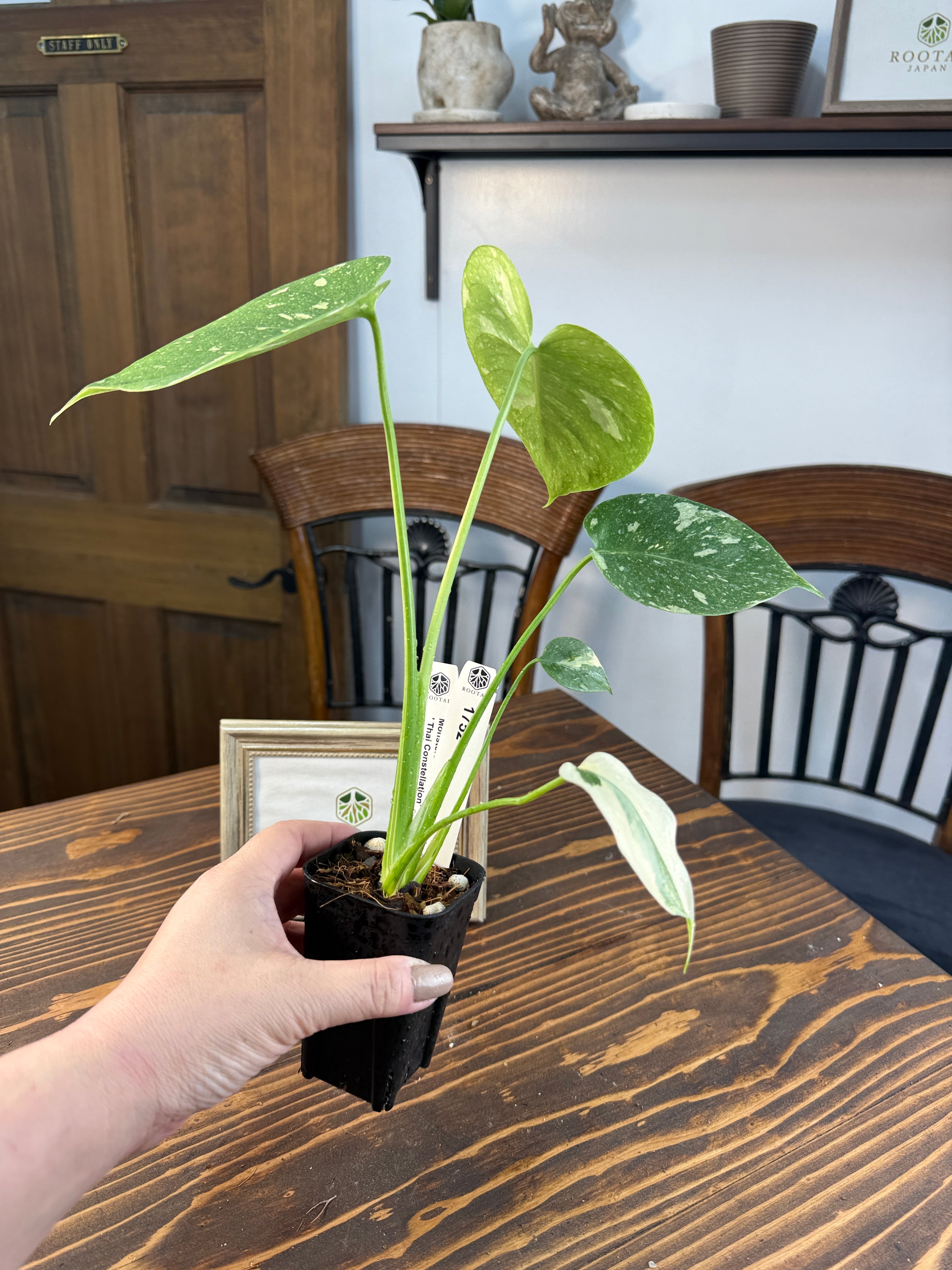 ★1752【斑入り模様が別格に美しい一品】モンステラ デリシオーサ タイコンステレーション(75㎜ロングポット)