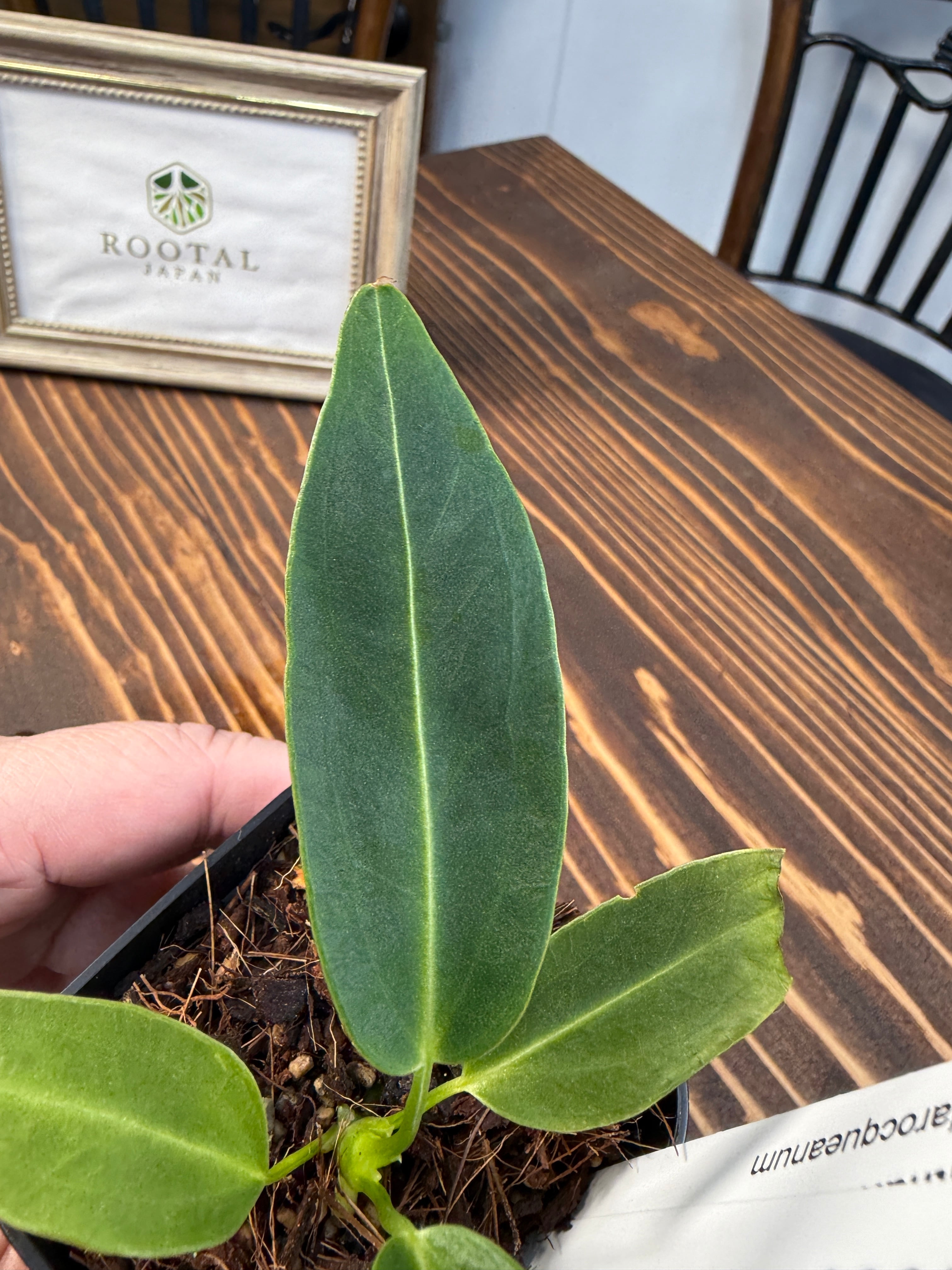 美しい花と艶やかな葉が心を癒やすアンスリウム ワロクアナム!その個性的なフォルムと深い色合いが、あなたの生活空間に華やかさをプラスします。日本国内で丁寧に育てられたこの貴重な品種は、インテリアに自然の美しさを添え、新たな息吹を吹き込む存在です。
