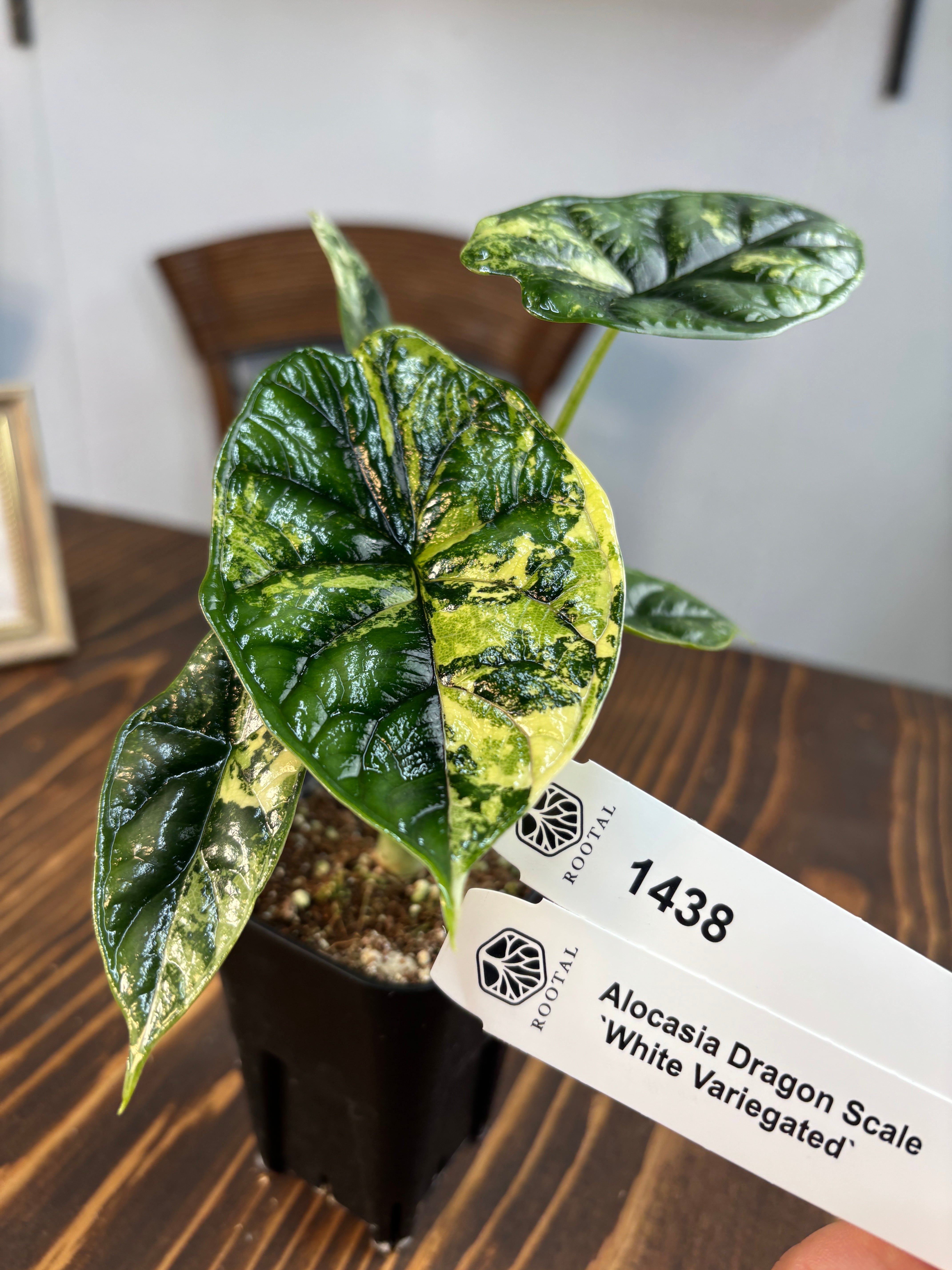 ★1438【超レア】アロカシア ドラゴンスケール ホワイトバリエガータ(2.5号ロング硬質ポット)※送料無料(一部除く)
