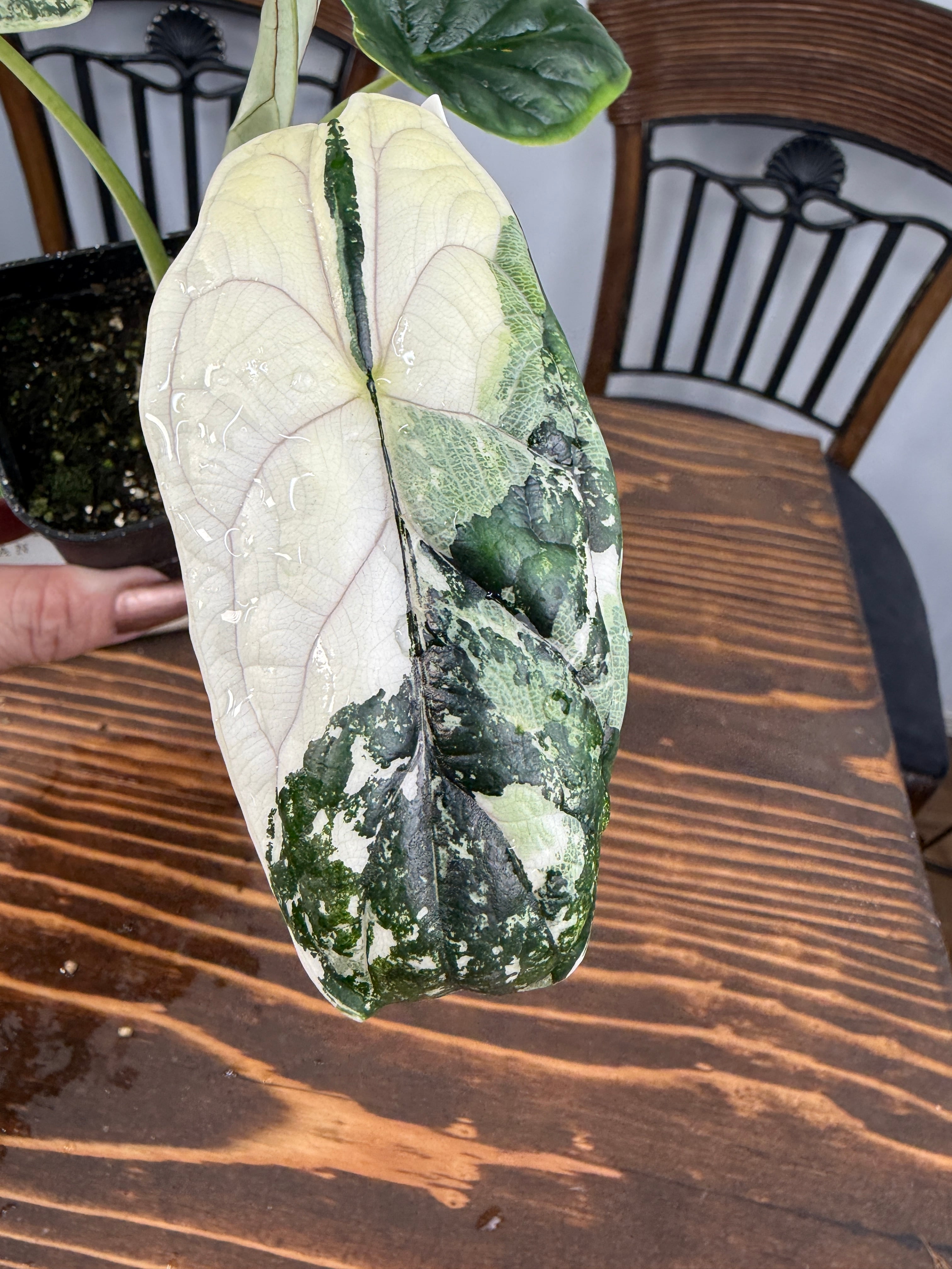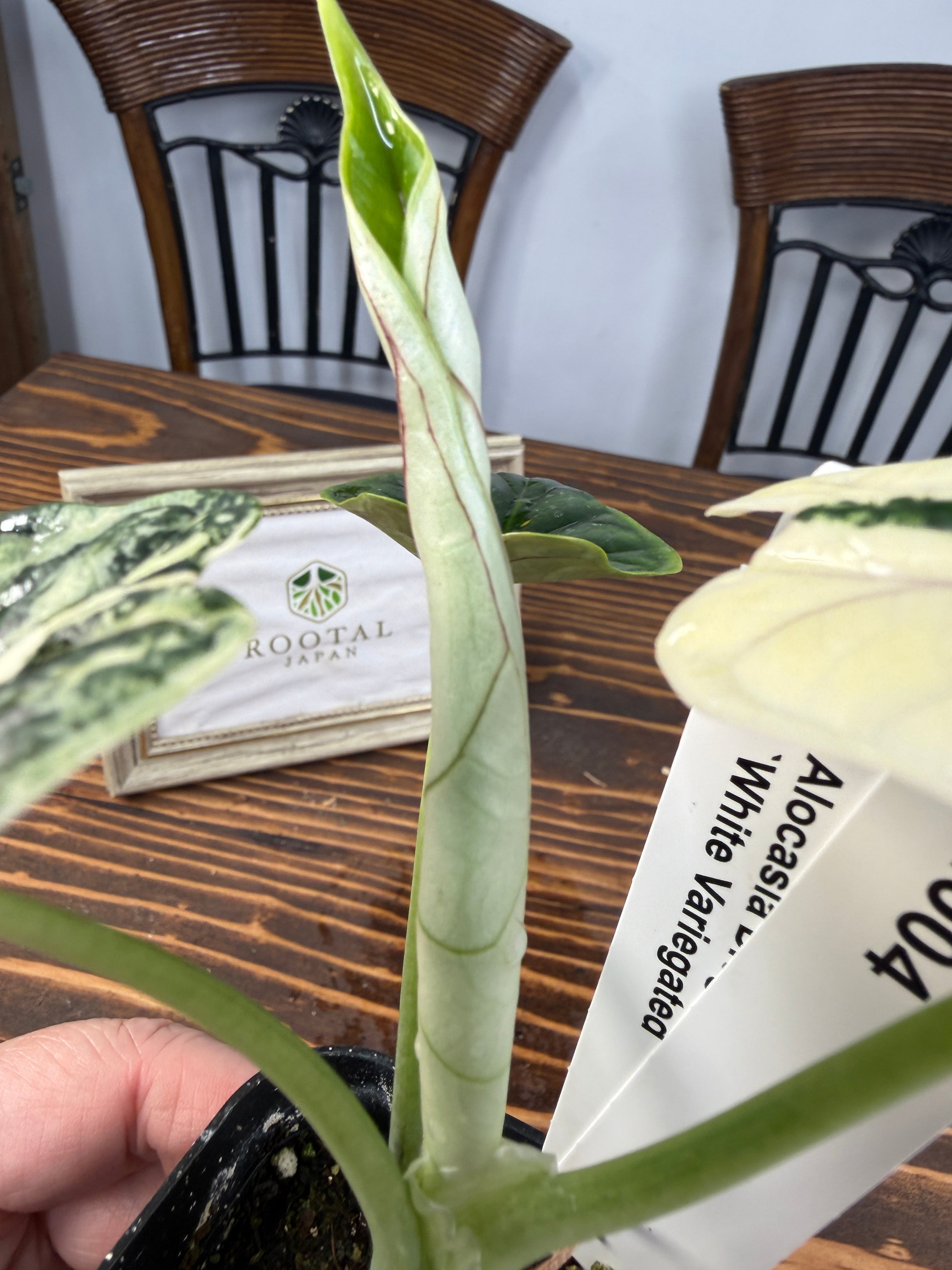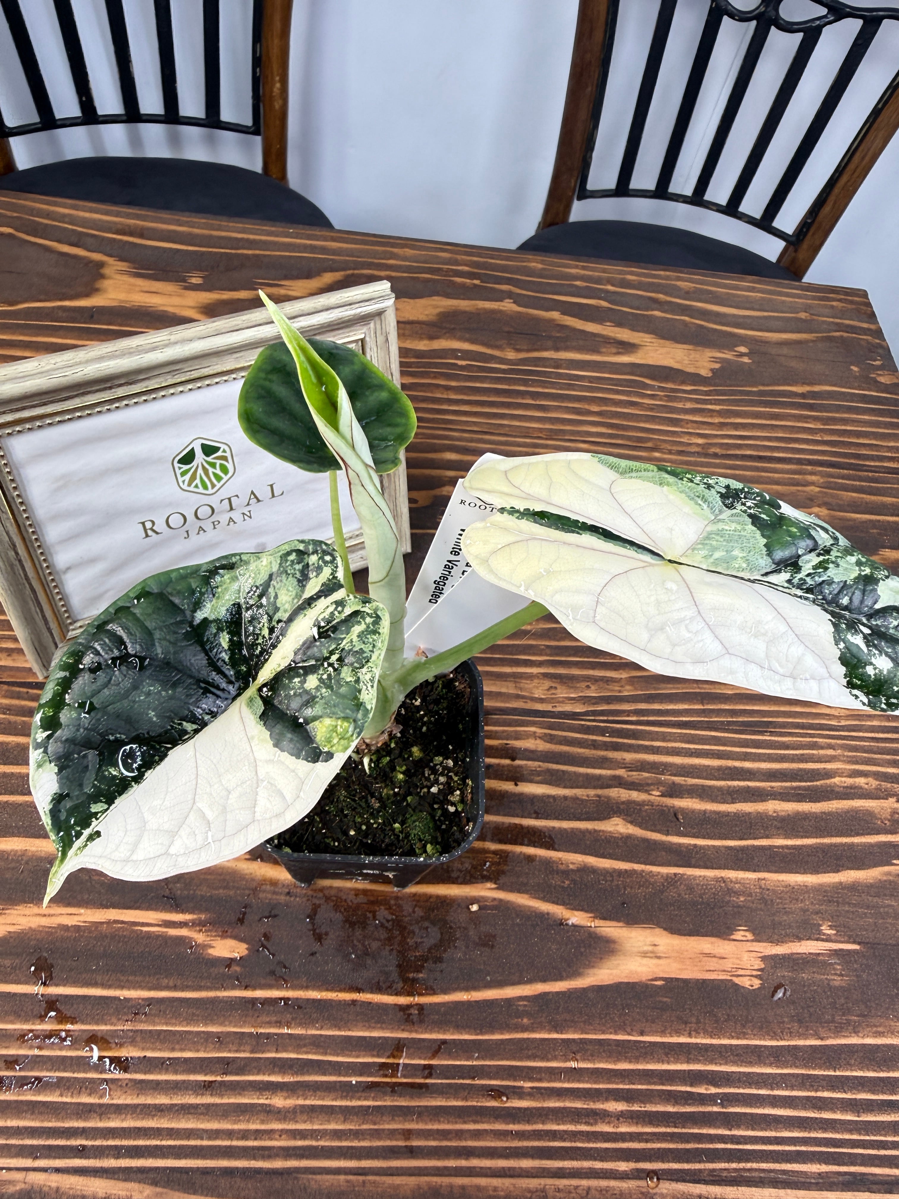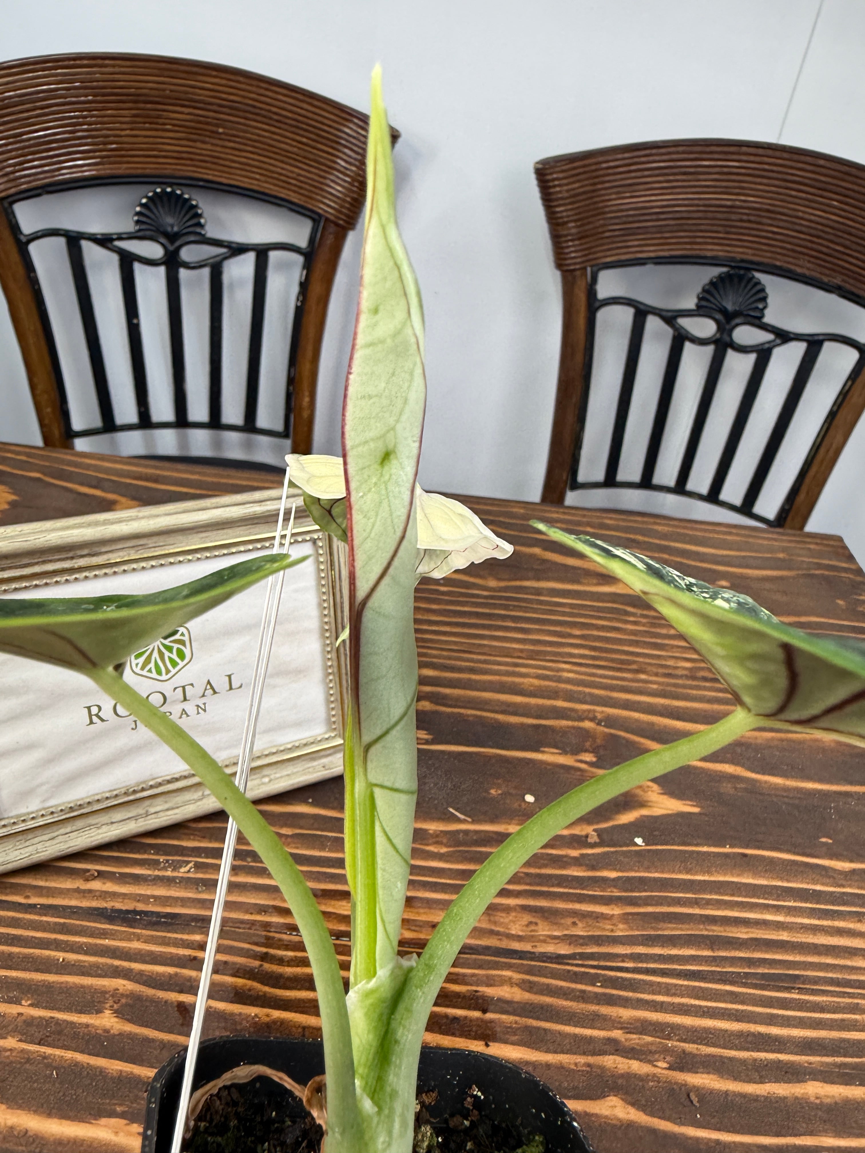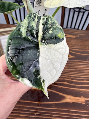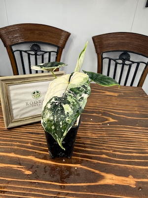 【超レア】アロカシア ドラゴンスケール ホワイトバリエガータは、そのユニークなドラゴンのような模様が特徴の観葉植物です!お部屋にエキゾチックな雰囲気を与え、心を豊かにすること間違いなしです。初心者の方でも育てやすい特性を持つので、ぜひこの貴重な植物をお迎えください。