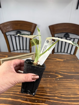 アロカシア ドラゴンスケール ホワイトバリエガータのサイズは、約15㎝程度の健康的な苗を厳選してお届けします。この美しい葉模様は、どんなインテリアにも個性的なアクセントを加え、あなたのスペースを一層引き立てます!