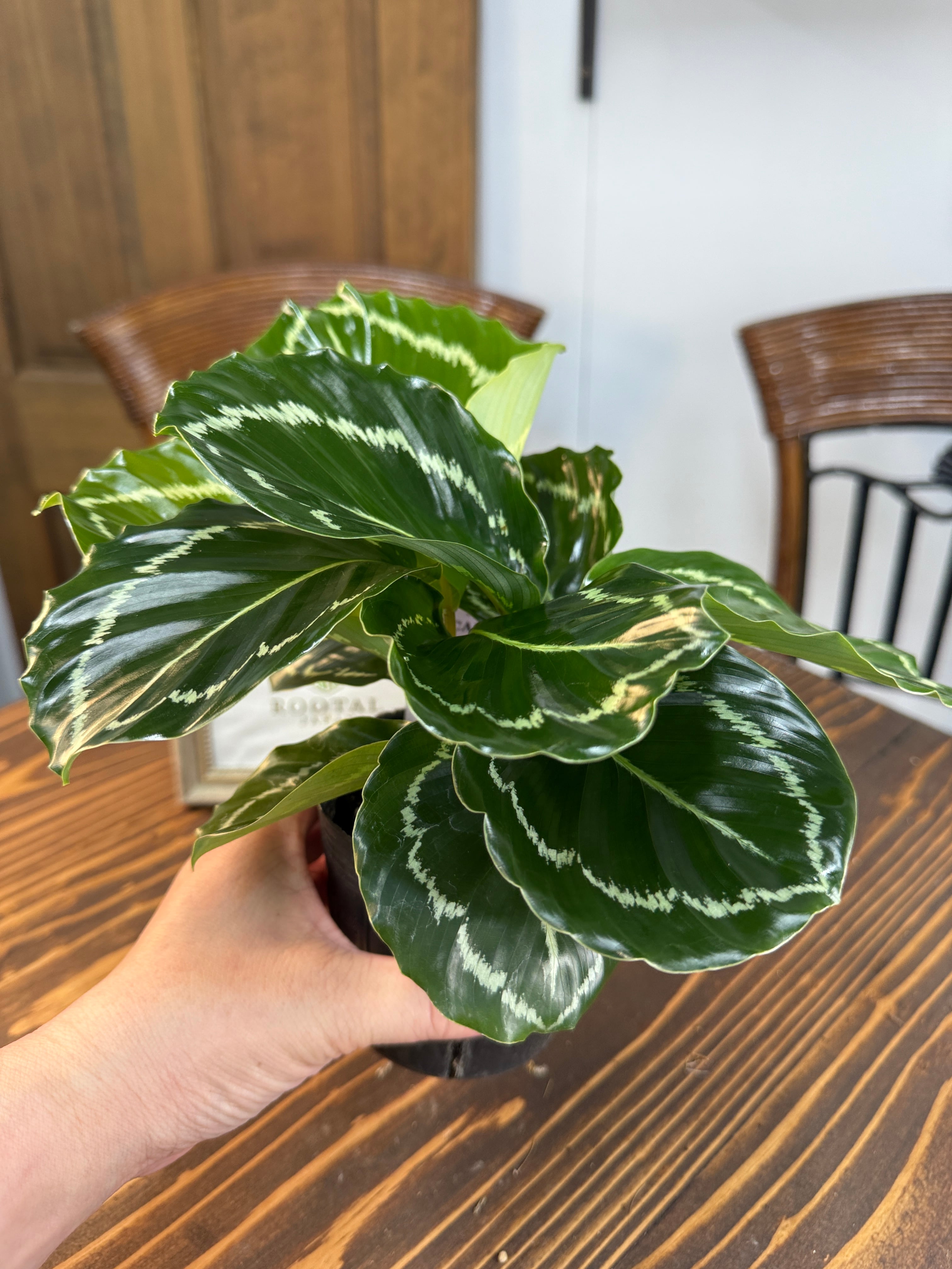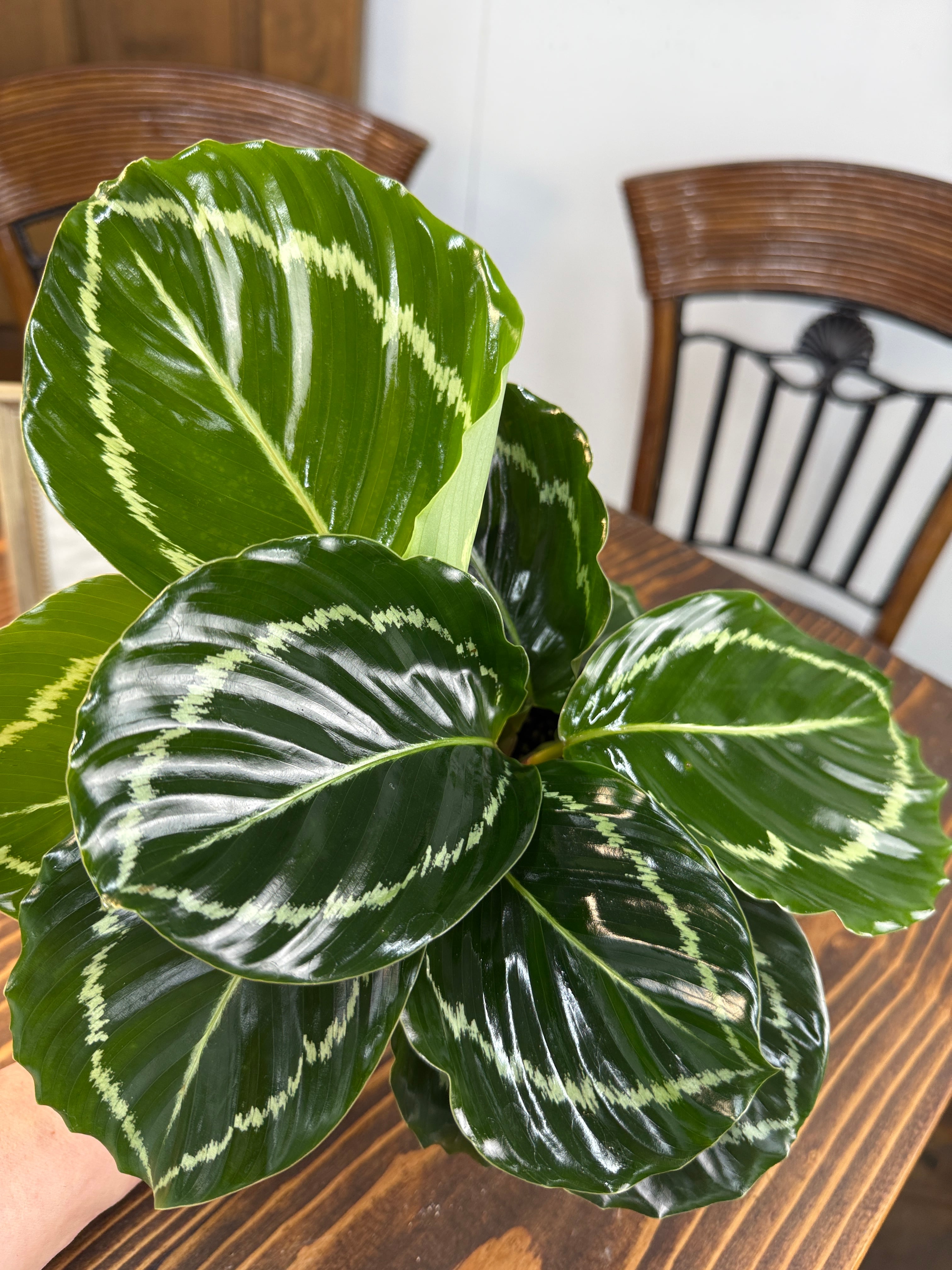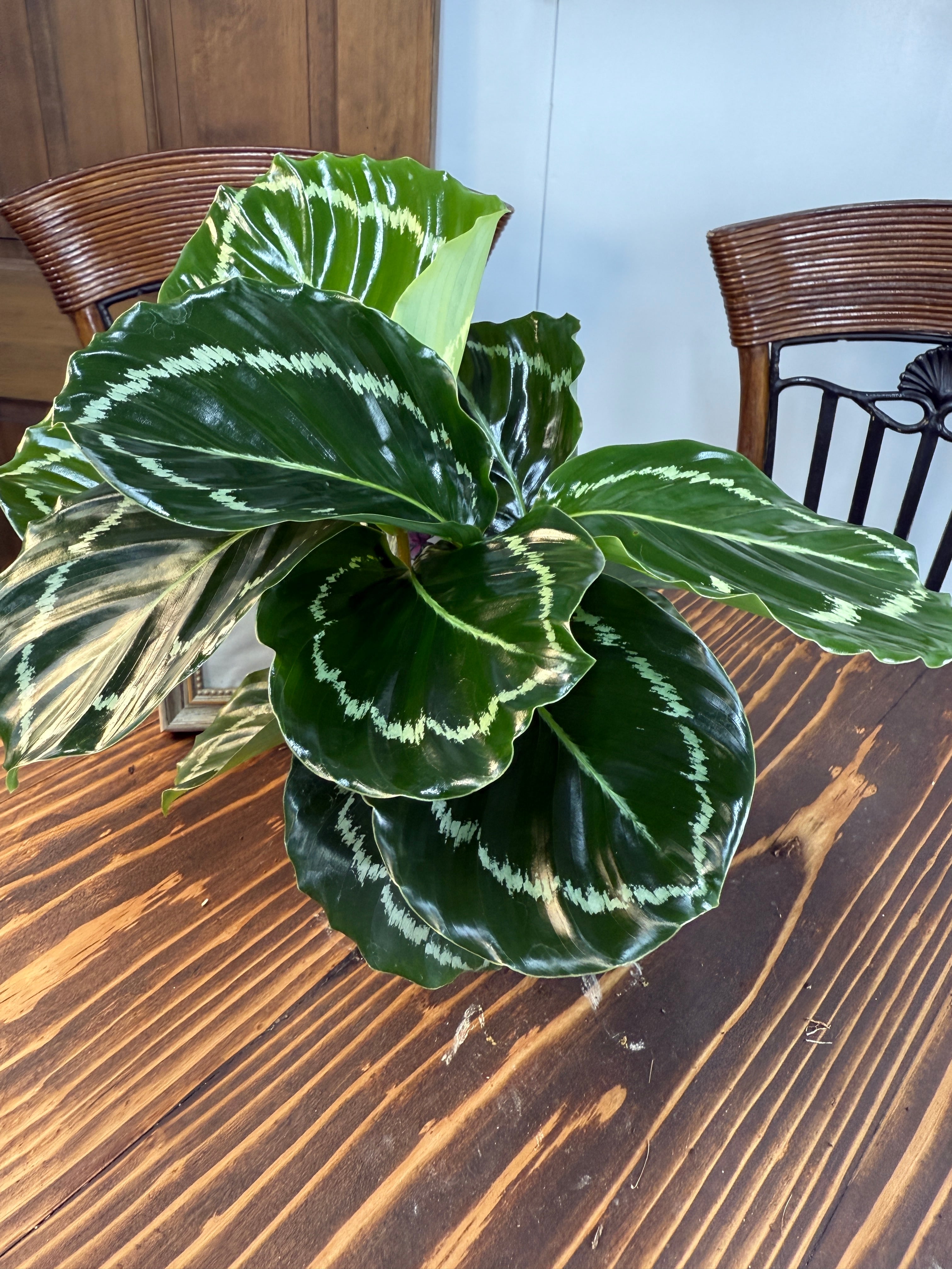 美しい緑の葉と優雅な模様が特徴の、カラテア グリーンローズ!