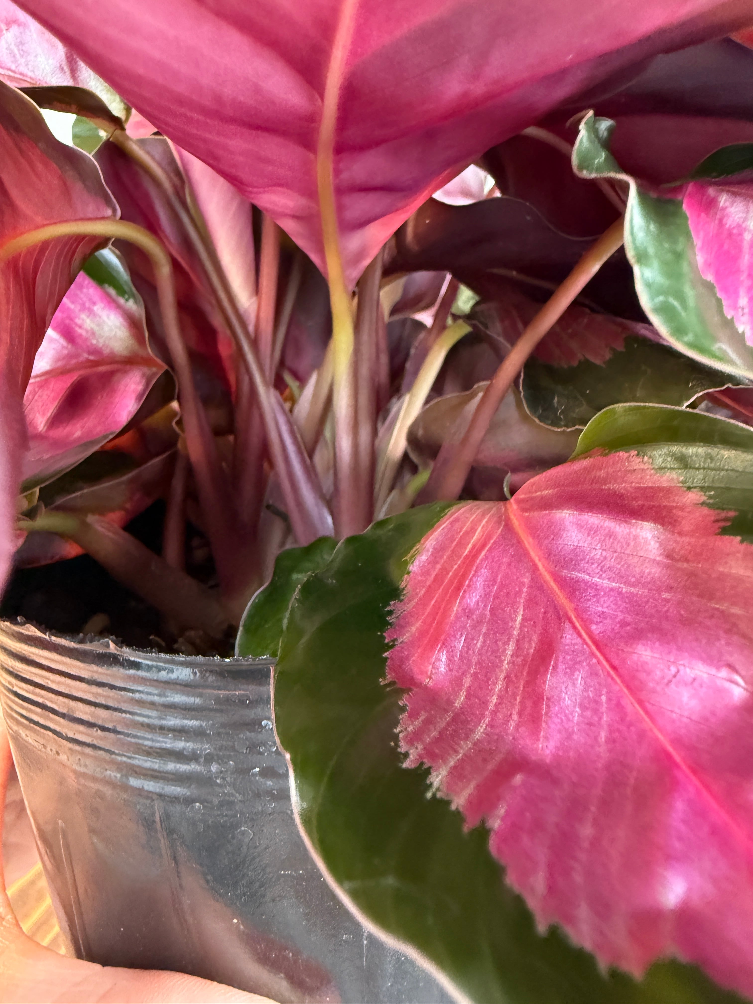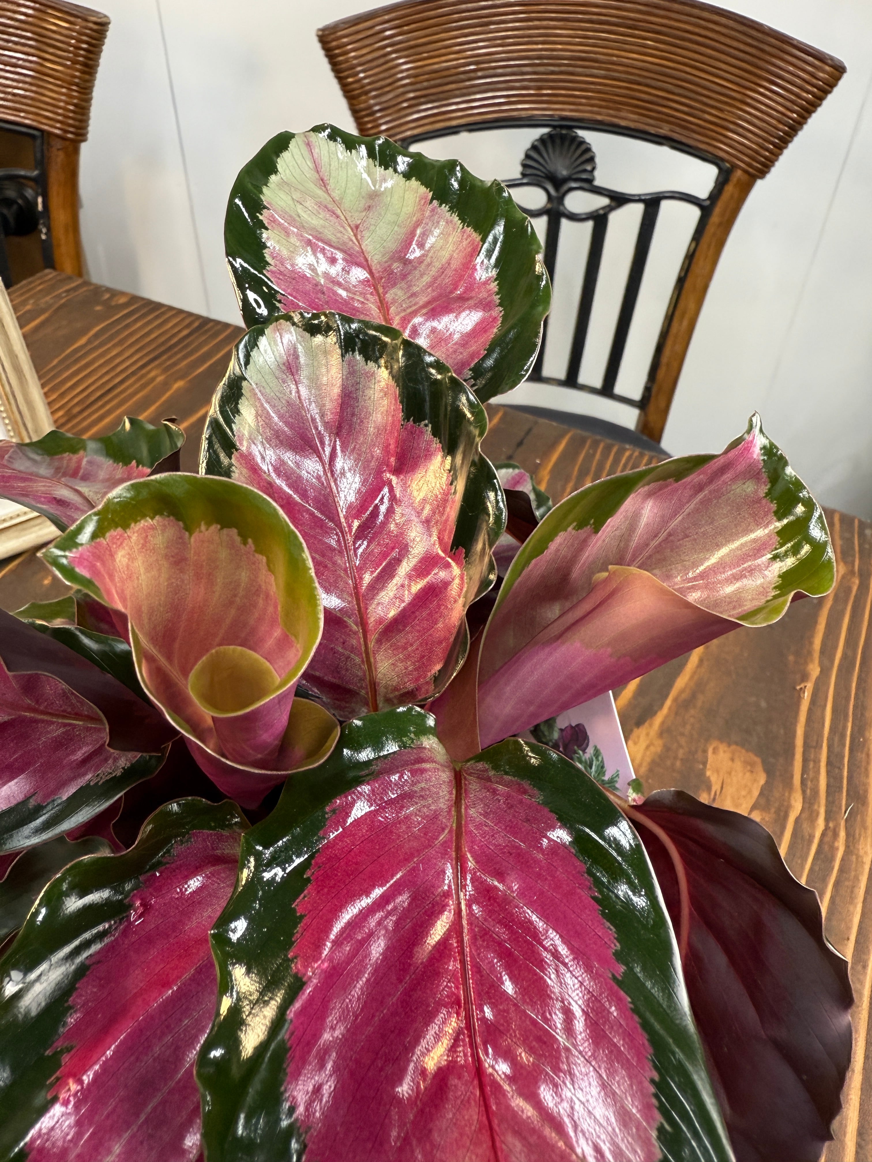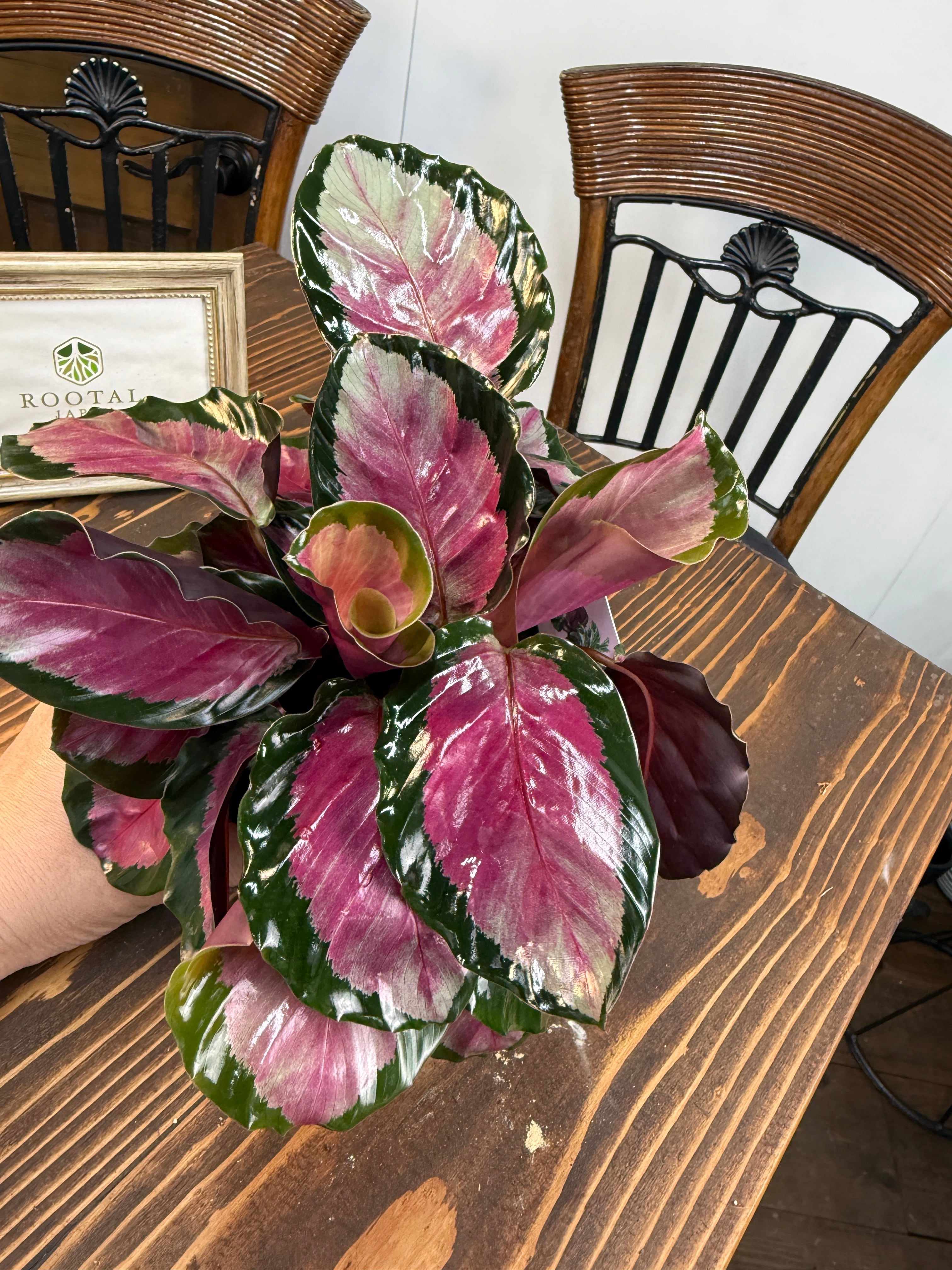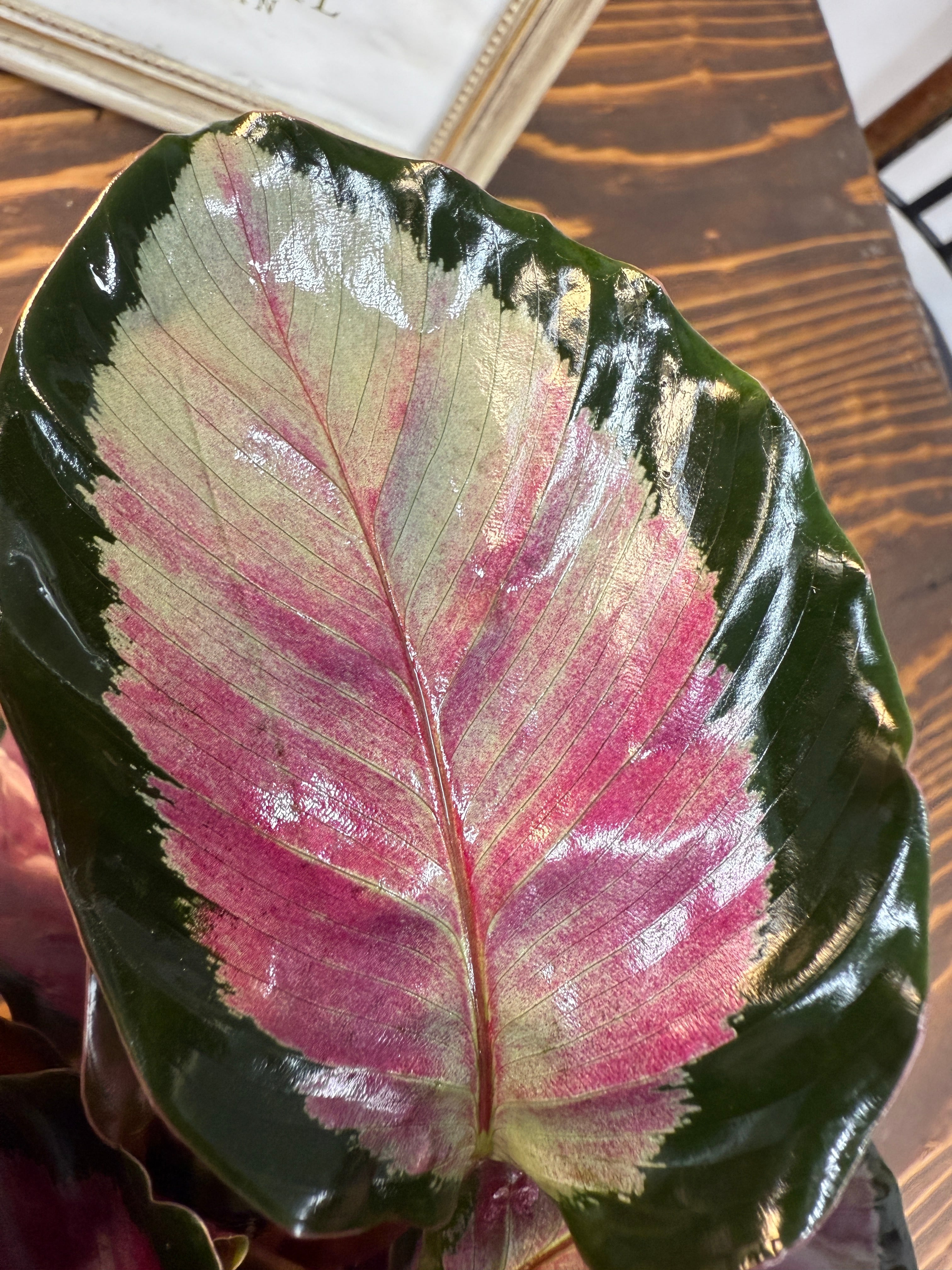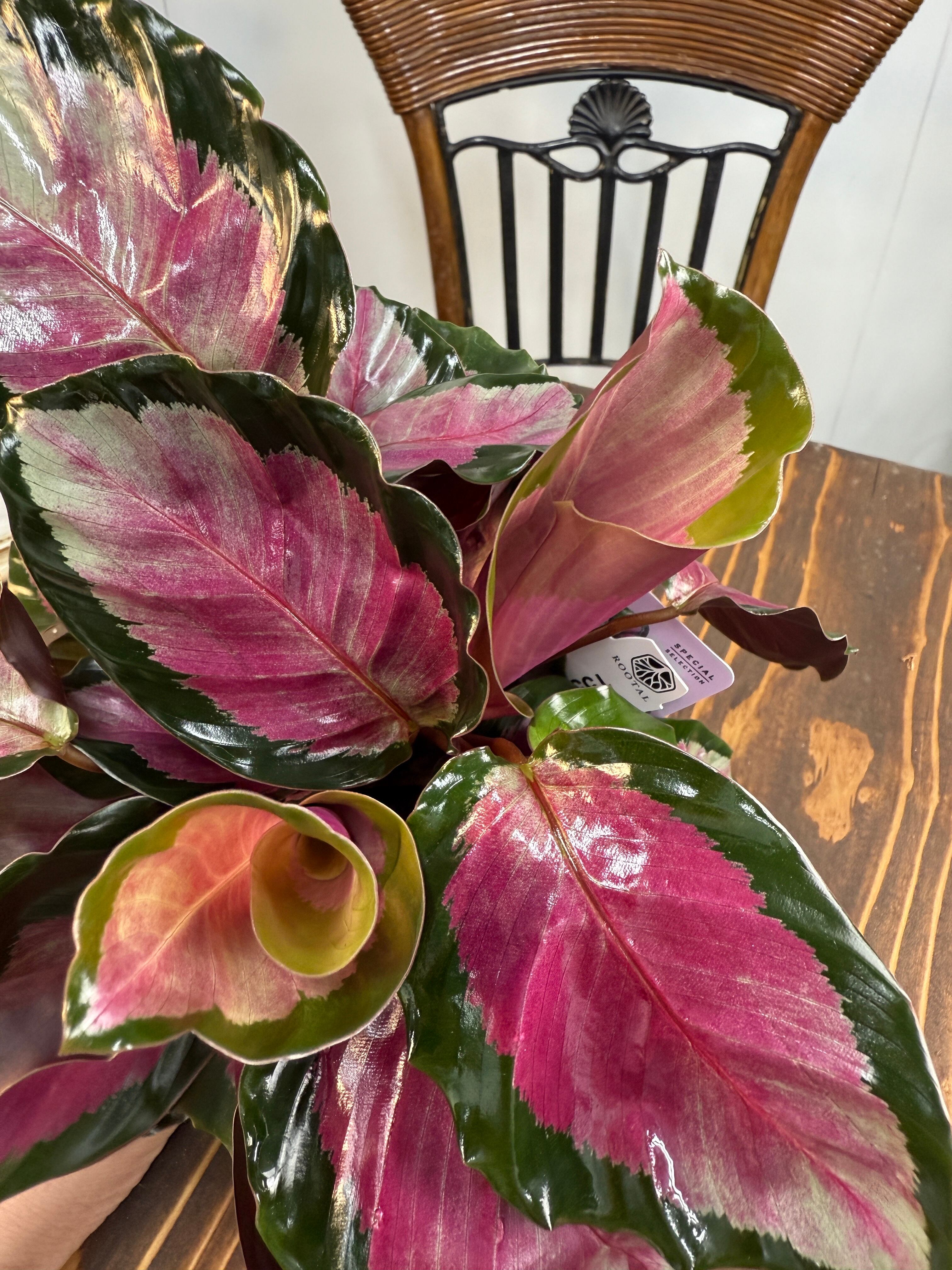 美しいローズカラーの葉に鮮やかな模様が広がるカラテア ロゼオピクタロージー!