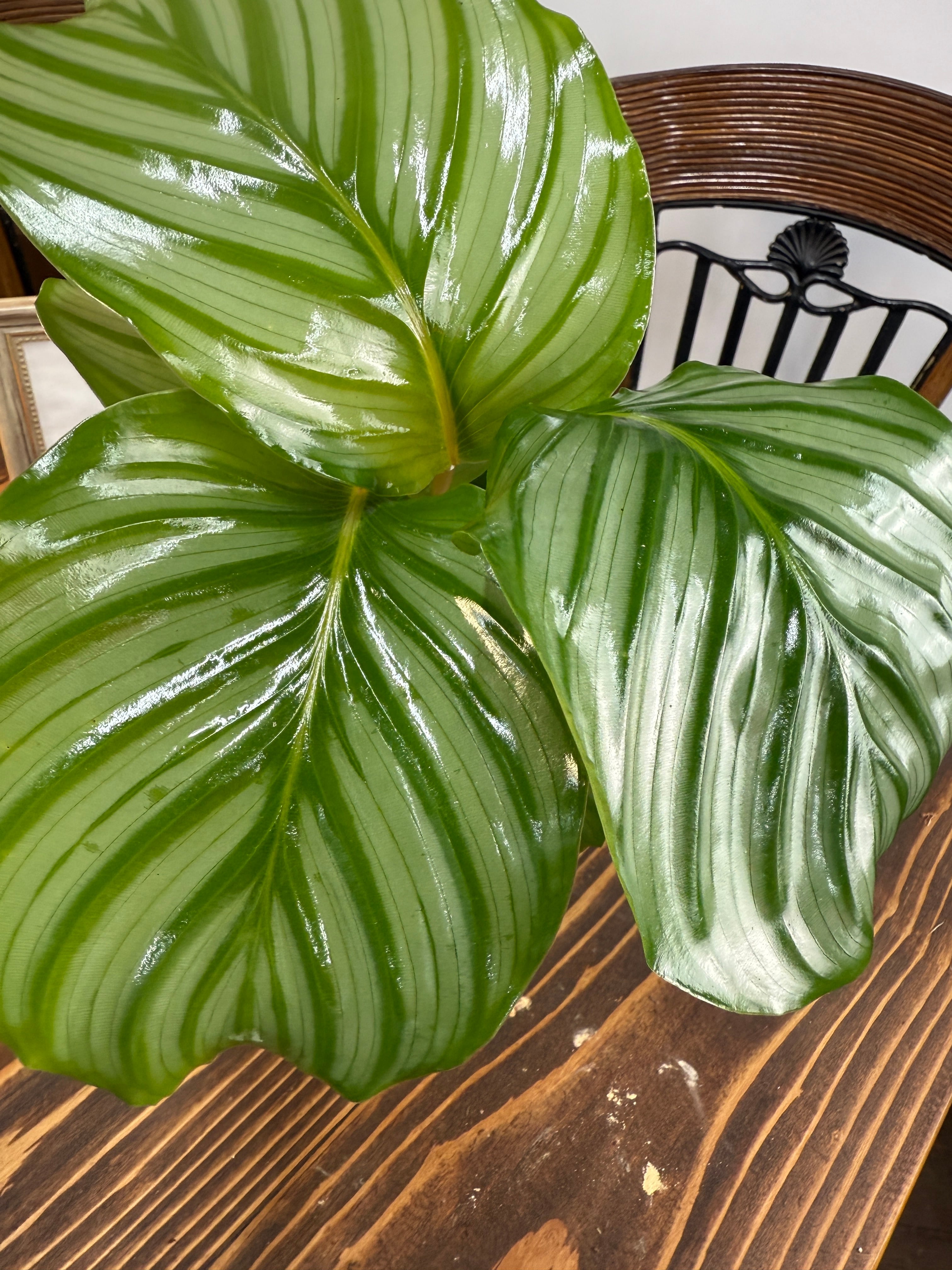 美しい丸みを帯びた葉に独特な模様が広がるカラテア オルビフォリア!