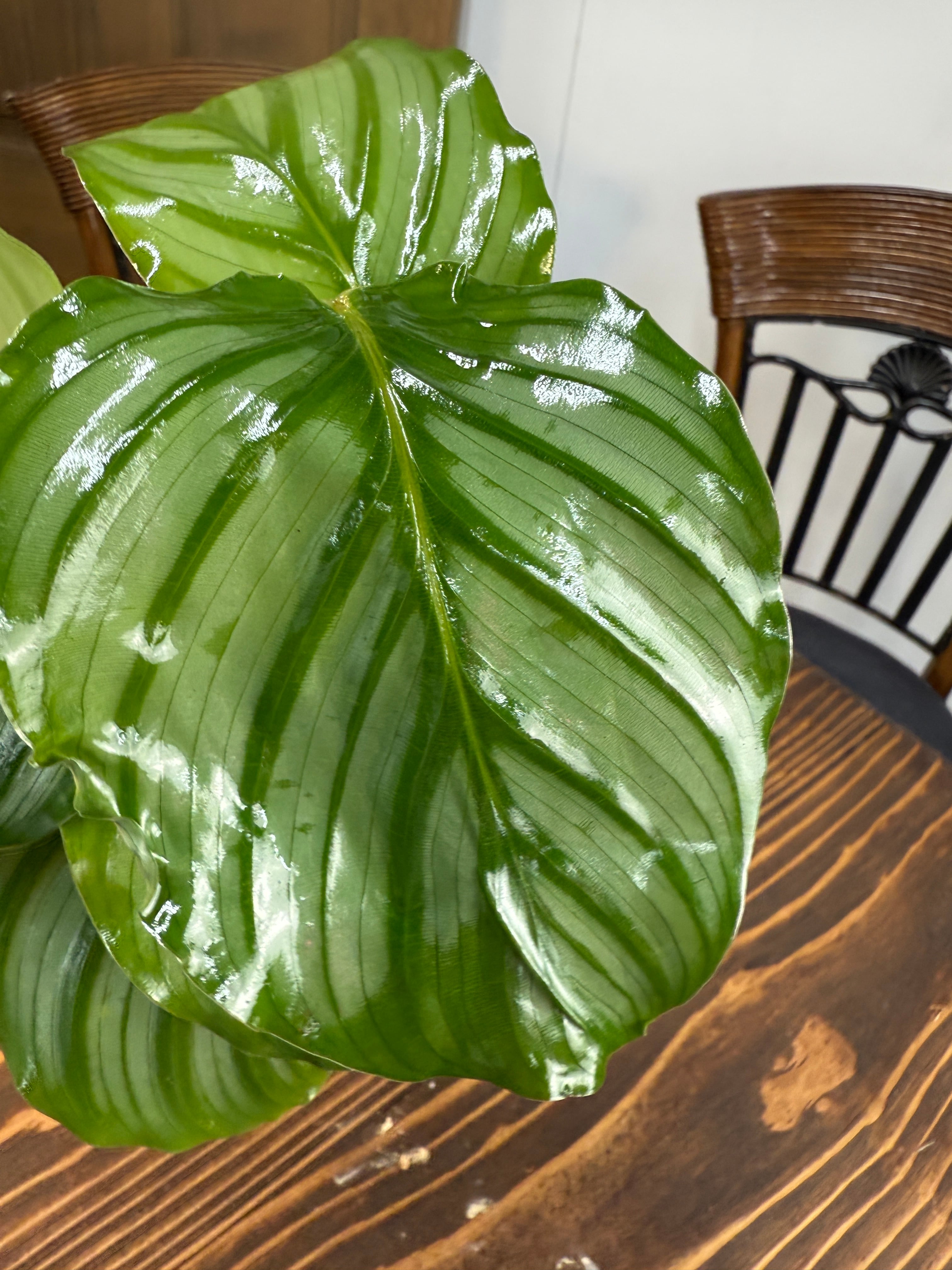 美しい丸みを帯びた葉に独特な模様が広がるカラテア オルビフォリア!