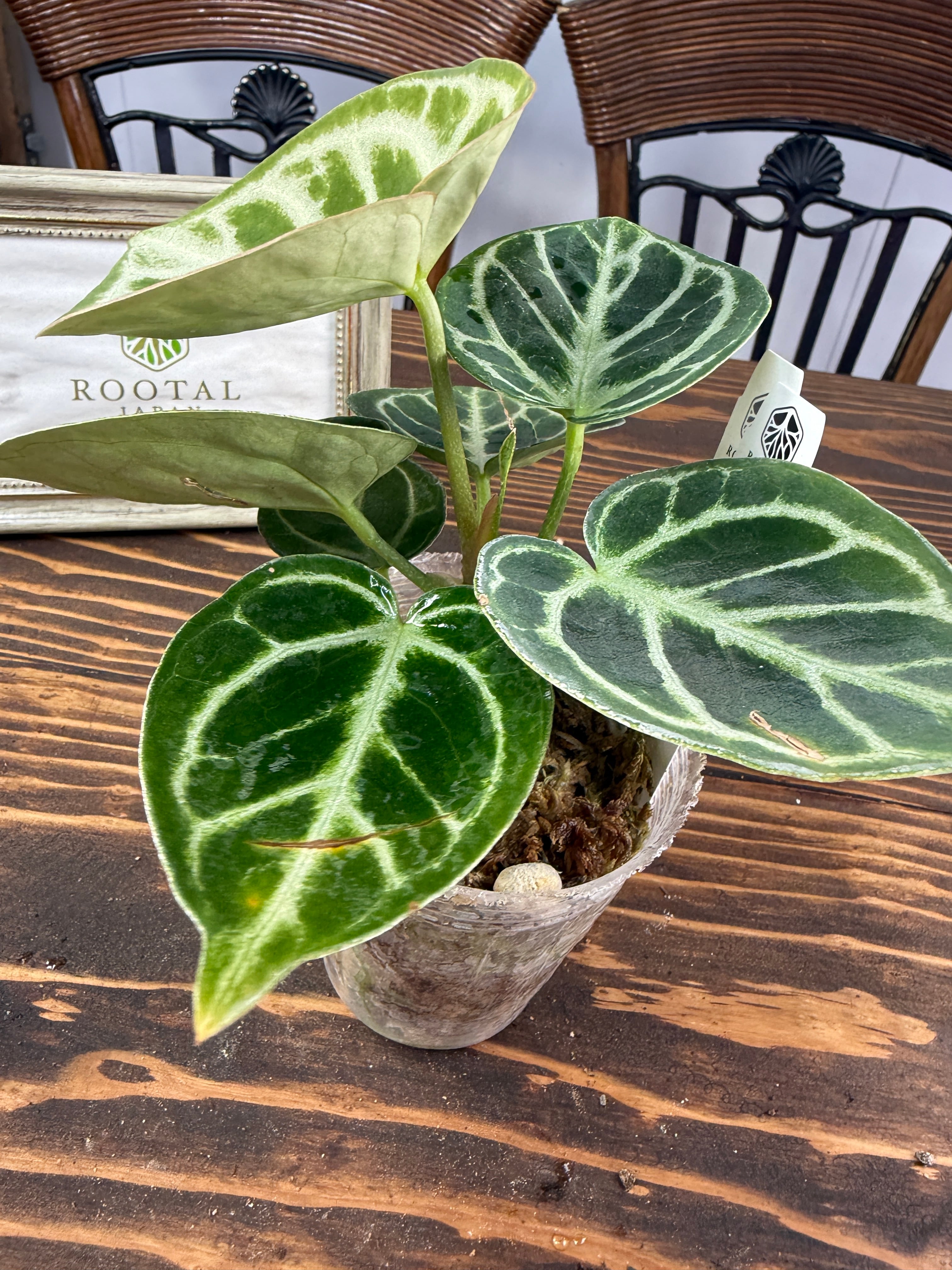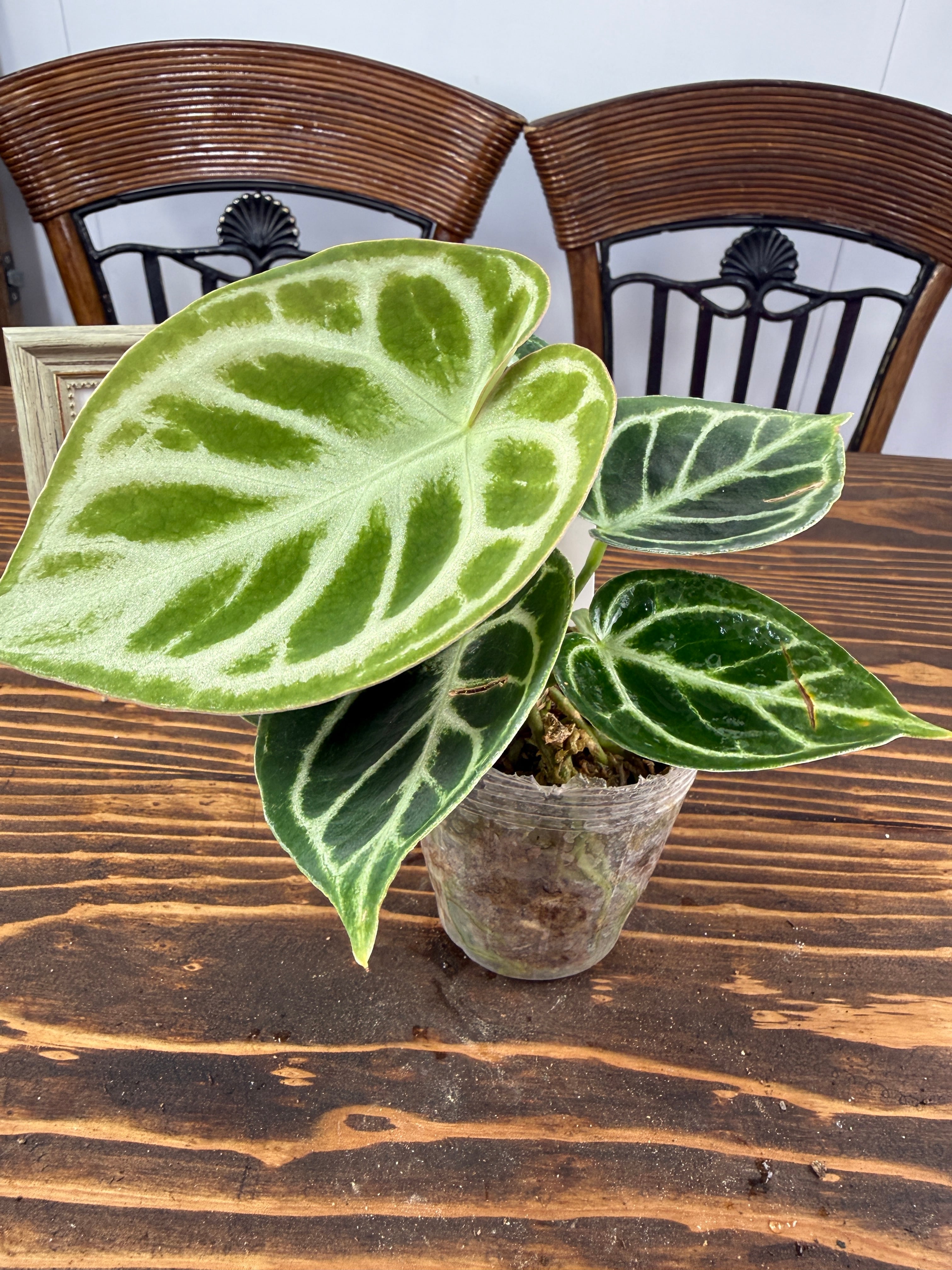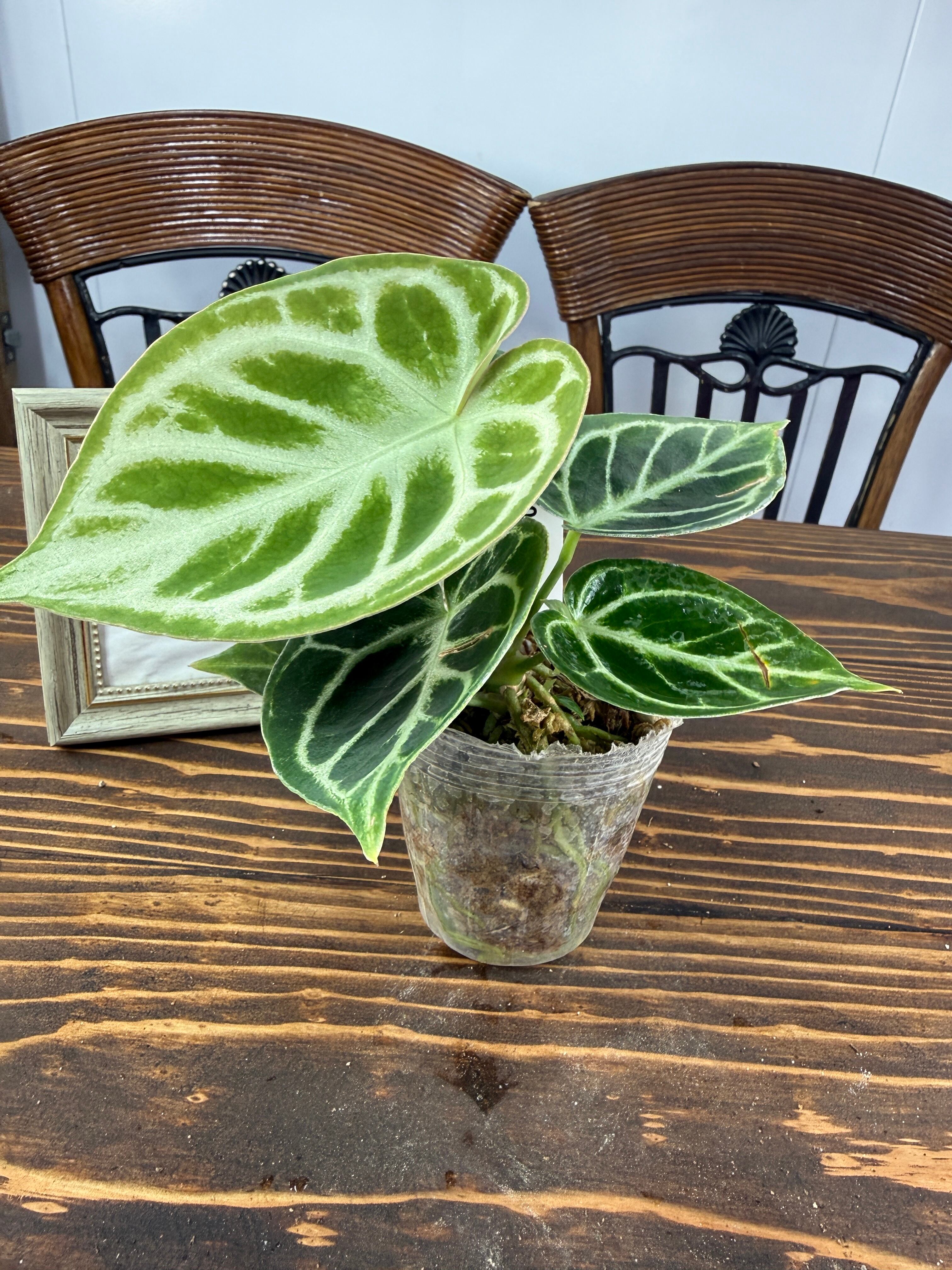 アンスリウム ドラヤキは、美しいキラキラとした葉と葉脈が特徴の観葉植物です。この素晴らしい一品は、インテリアに華やかさを添え、心を癒すリラックス空間を創出します!観葉植物を育てるのが初めての方にも手軽に楽しんでいただけます。