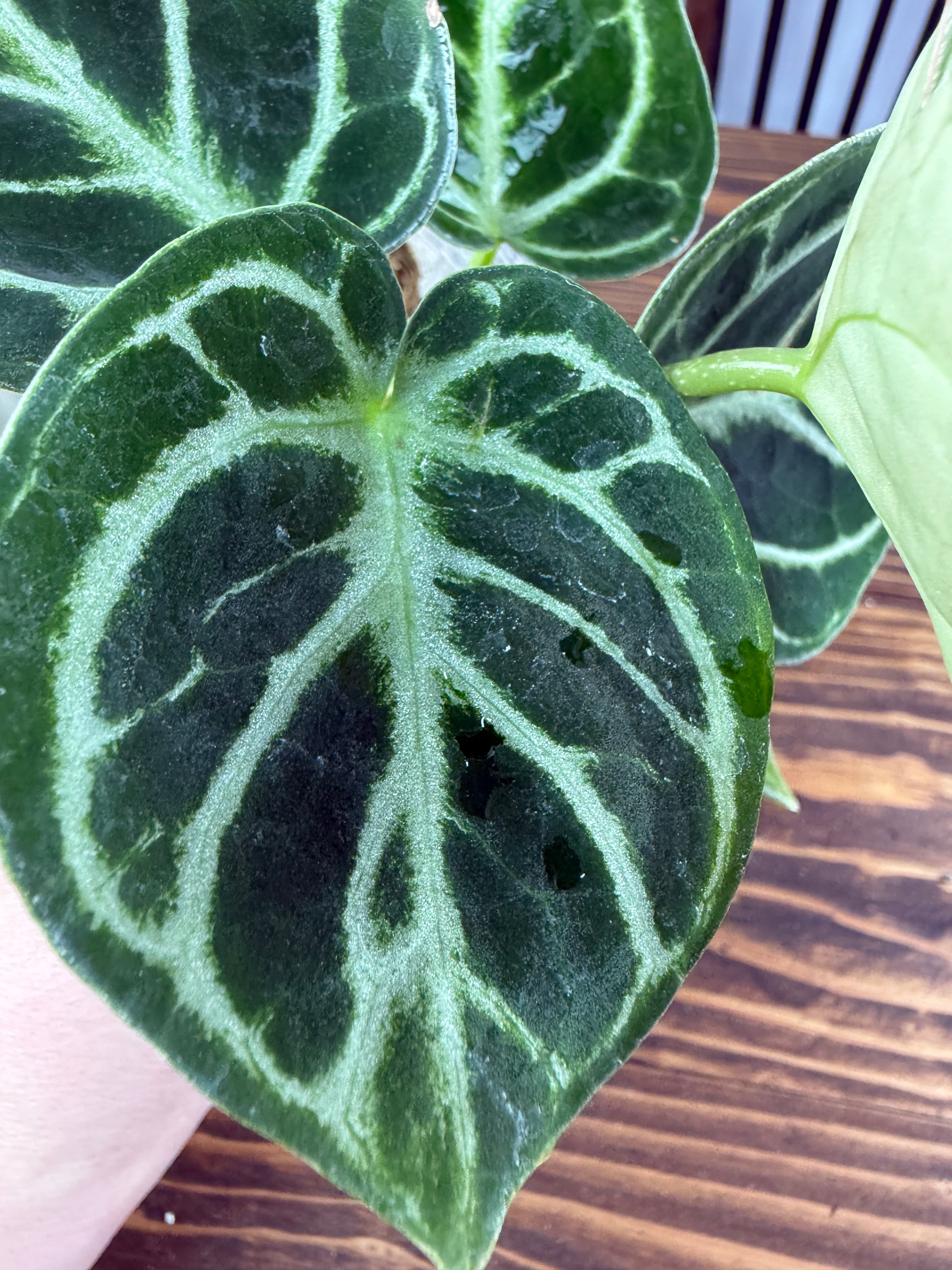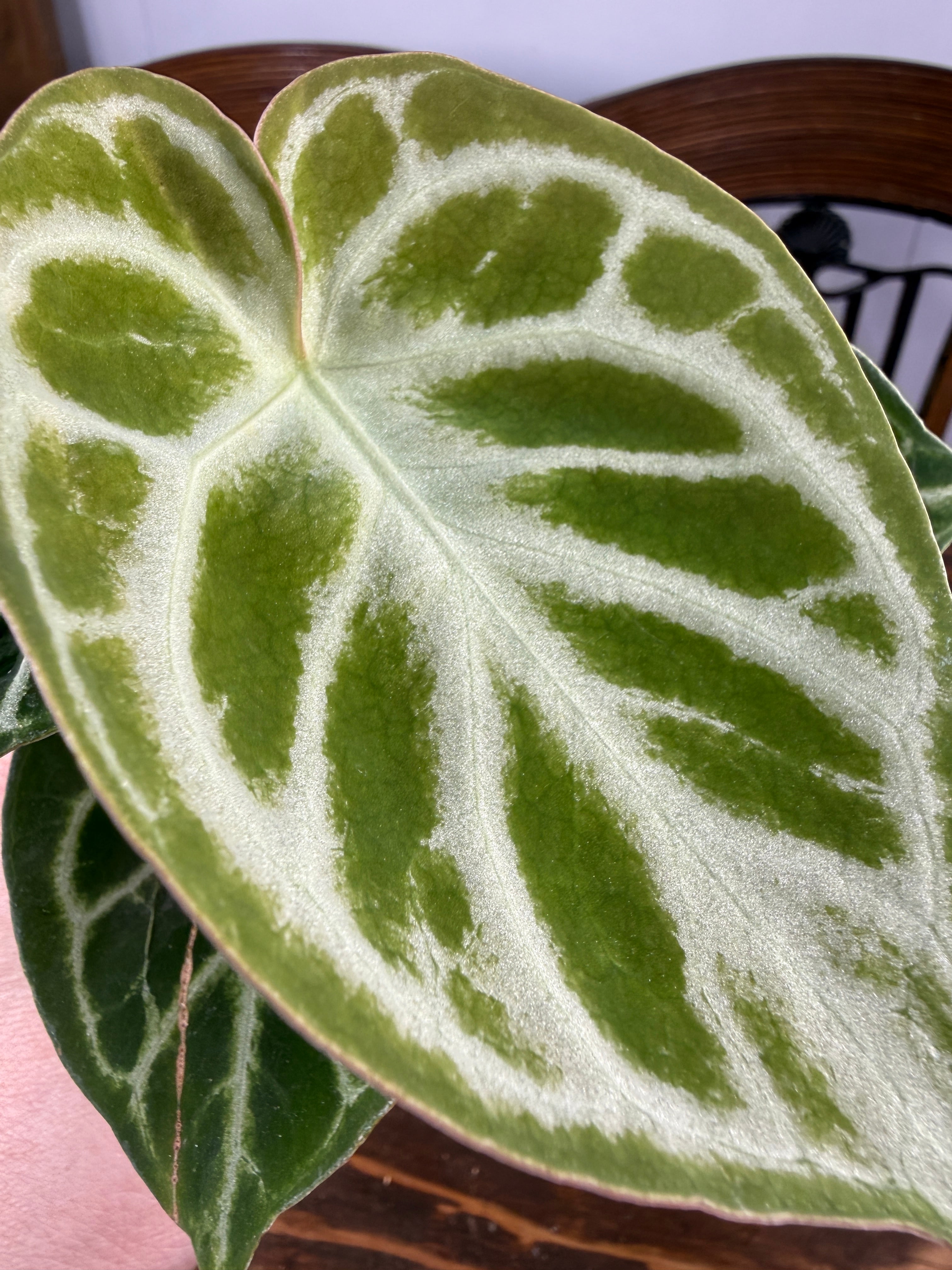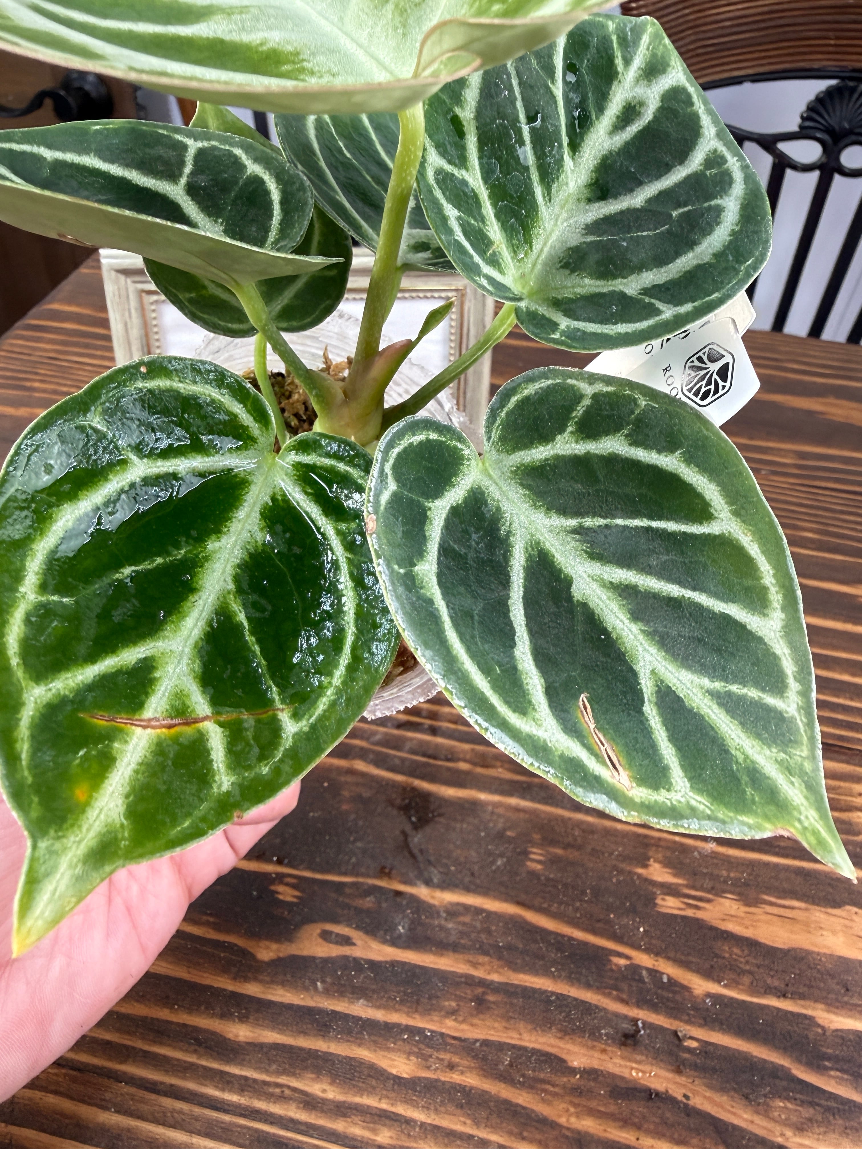 アンスリウム ドラヤキは、美しいキラキラとした葉と葉脈が特徴の観葉植物です。この素晴らしい一品は、インテリアに華やかさを添え、心を癒すリラックス空間を創出します!観葉植物を育てるのが初めての方にも手軽に楽しんでいただけます。