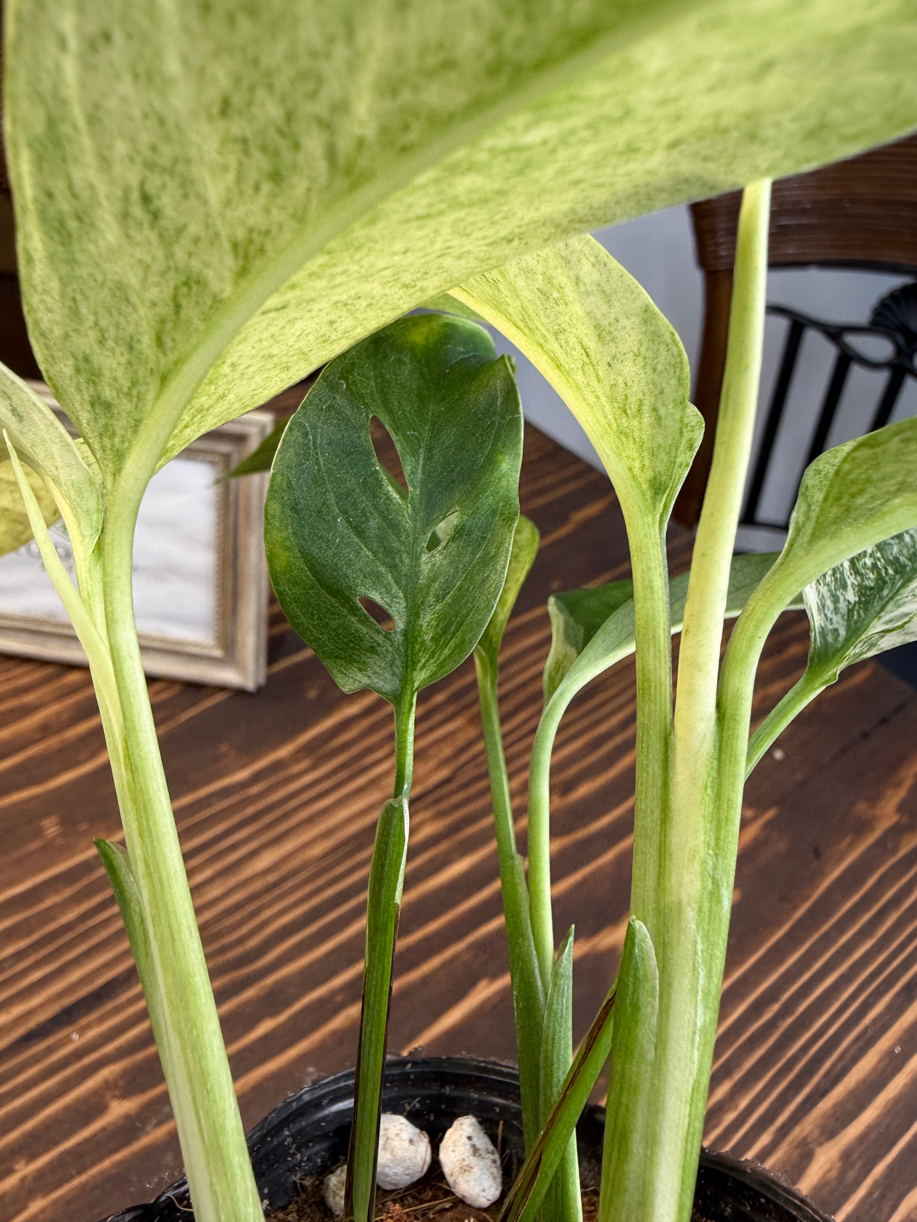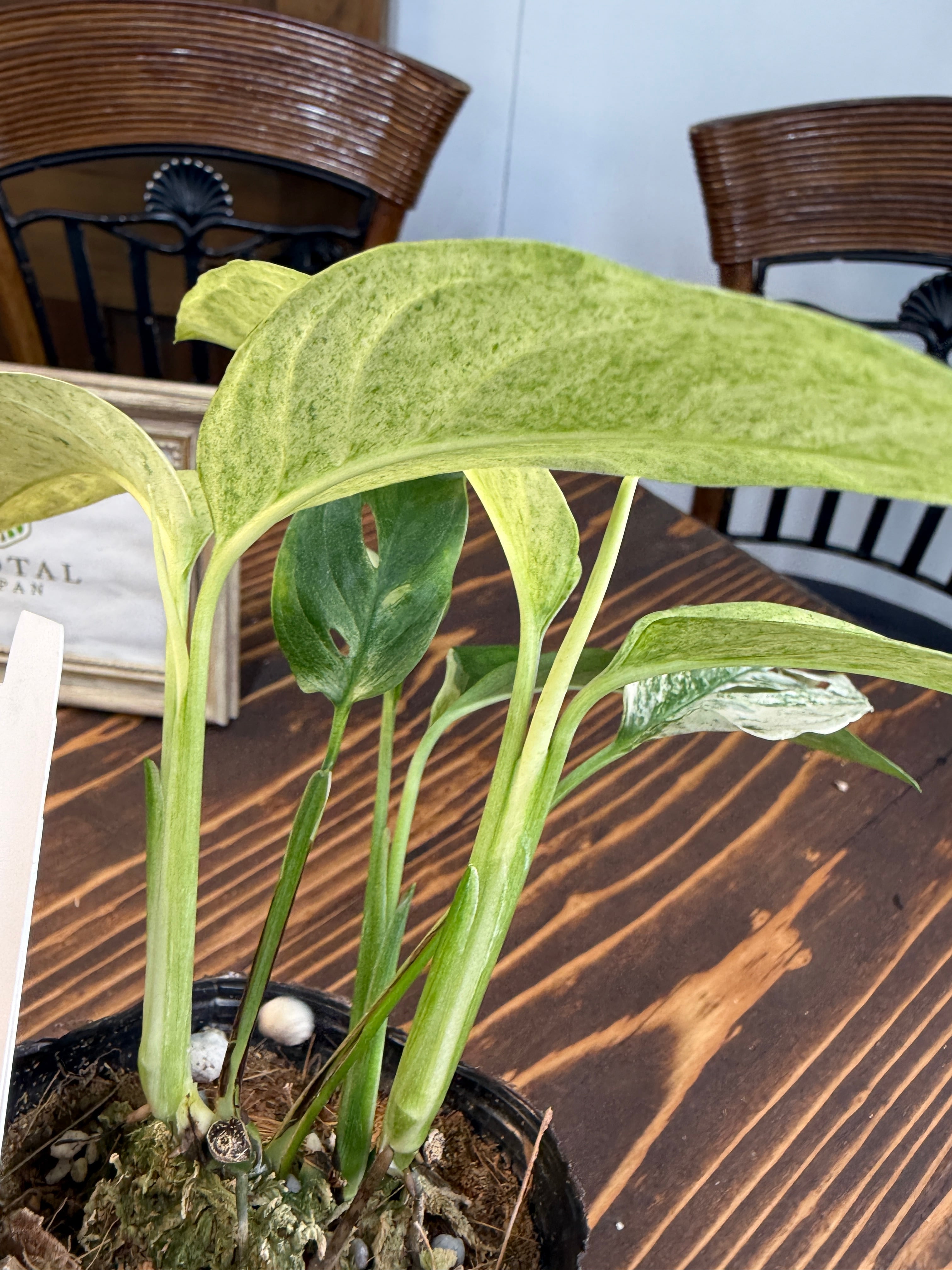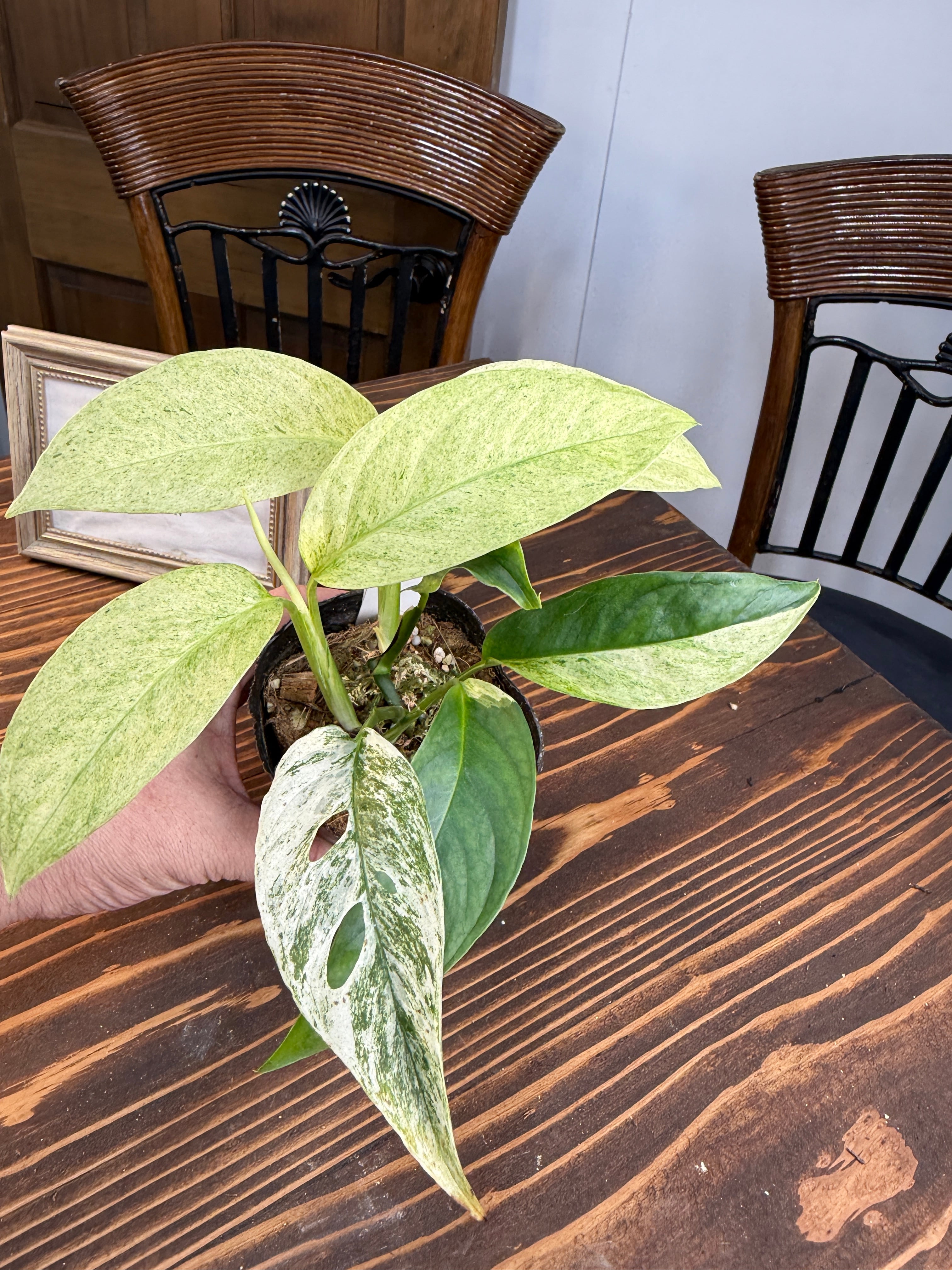 【モンステラ】ラニアータ バリエガータ その美しい斑入りの葉が特徴の観葉植物です!お部屋にトロピカルな雰囲気を与え、心地よくリラックスできる空間を演出します。観葉植物初心者の方にも育てやすい特性を持っていますので、ぜひこの機会にお迎えください。