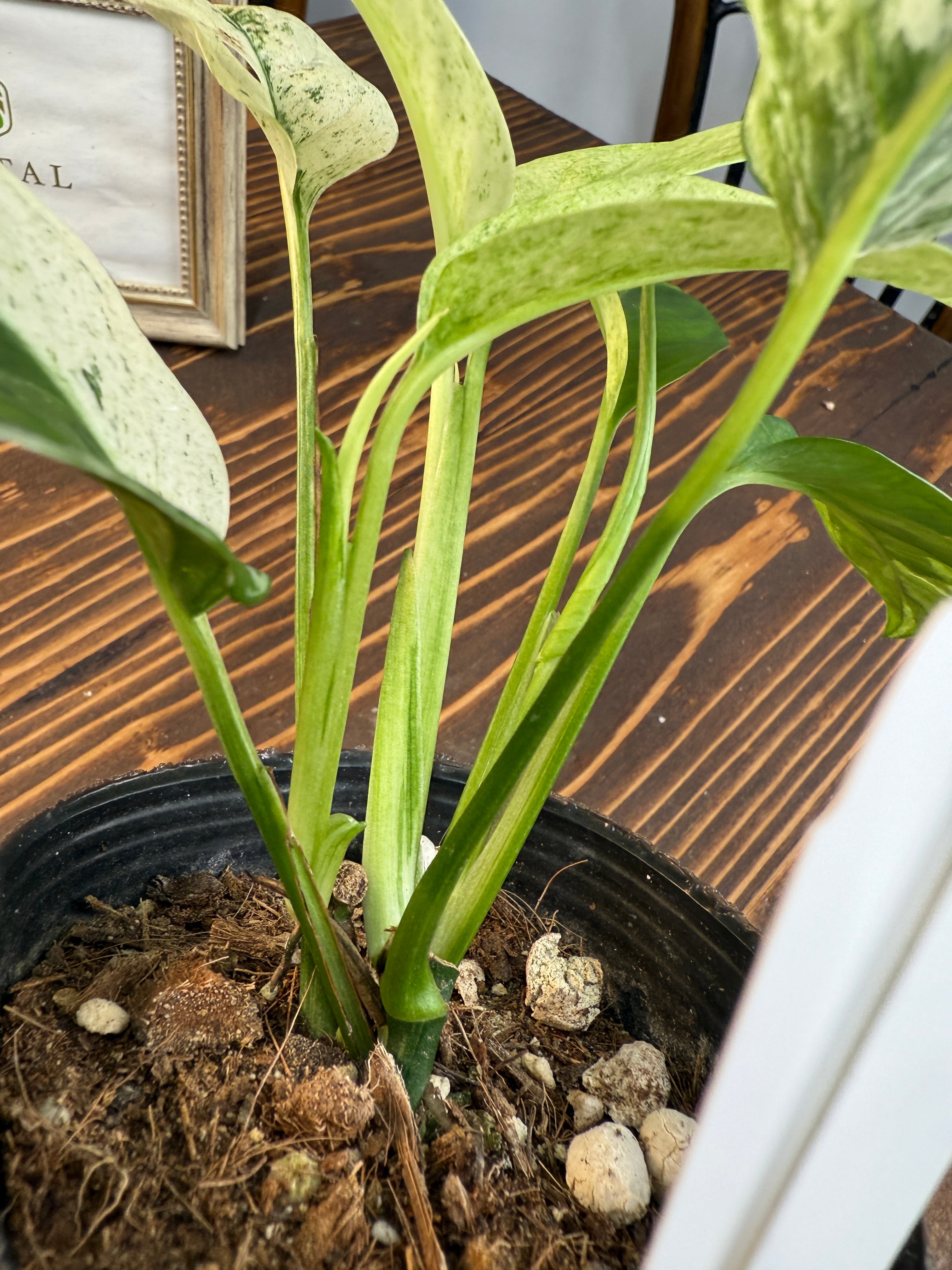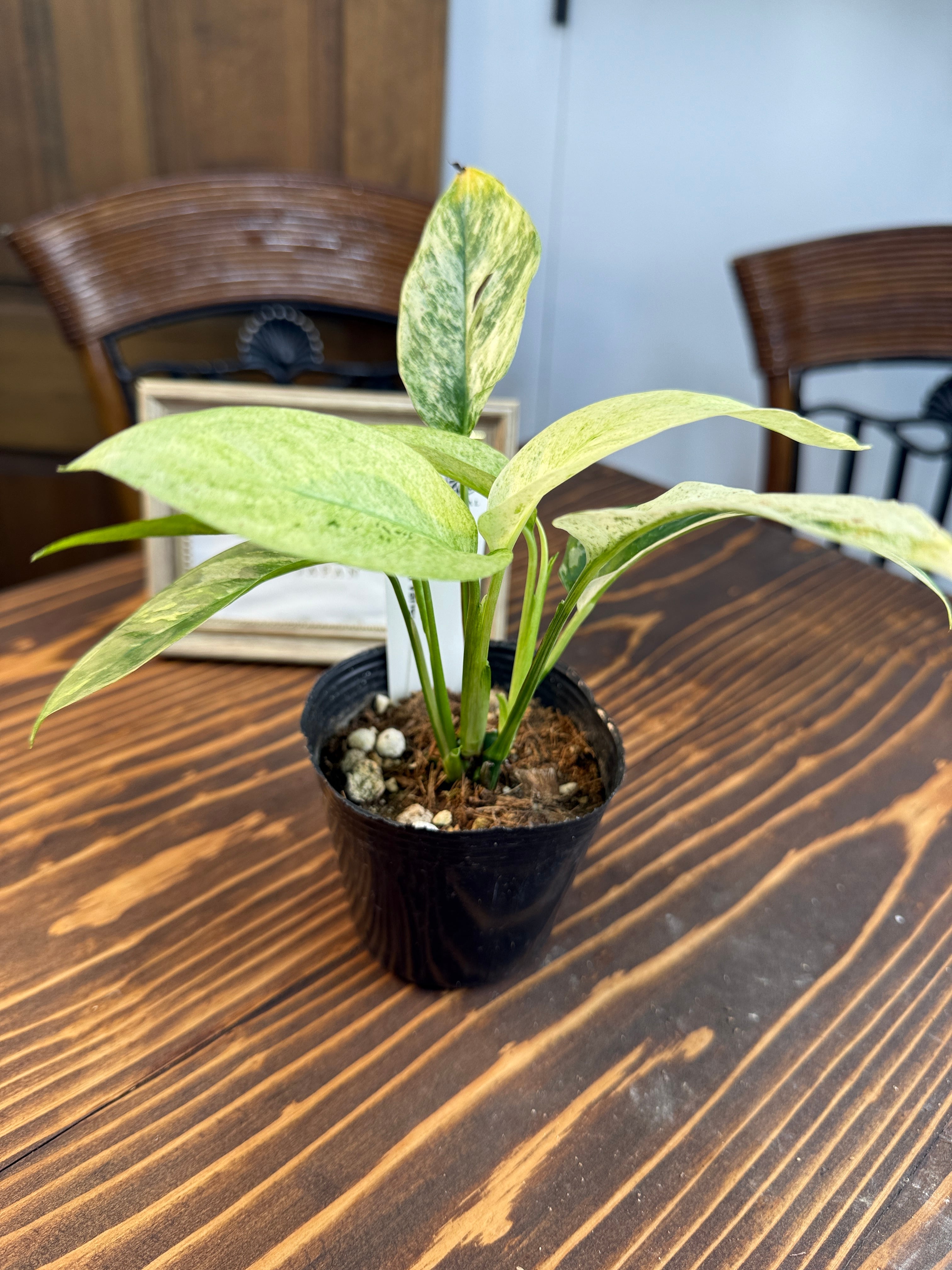 モンステラ ラニアータ バリエガータのサイズは、約15cm程度の健康的な苗を厳選してお届けいたします。この優雅な斑入りの葉は、どんなインテリアにも重厚感を添え、個性的な存在感を演出します!