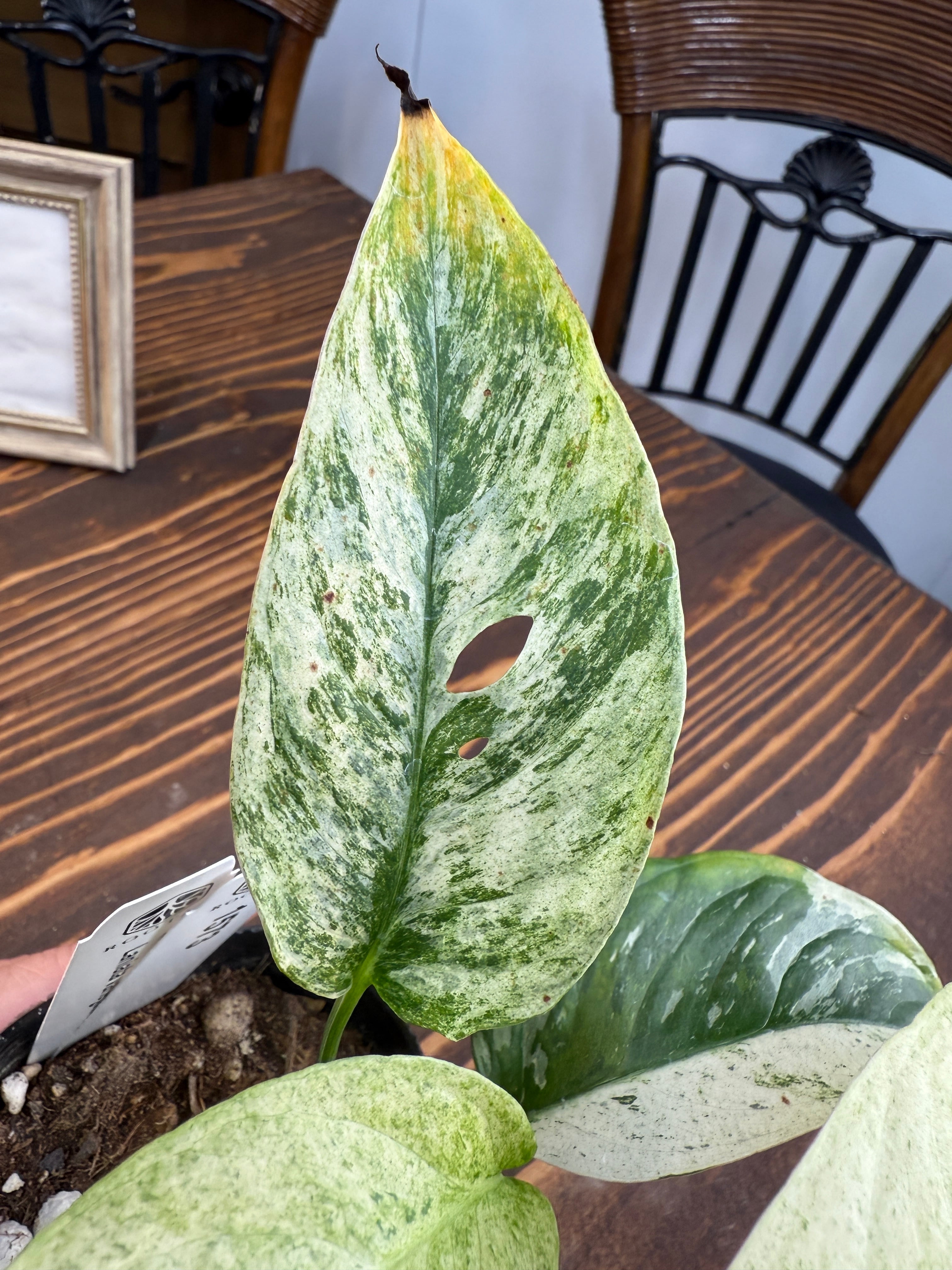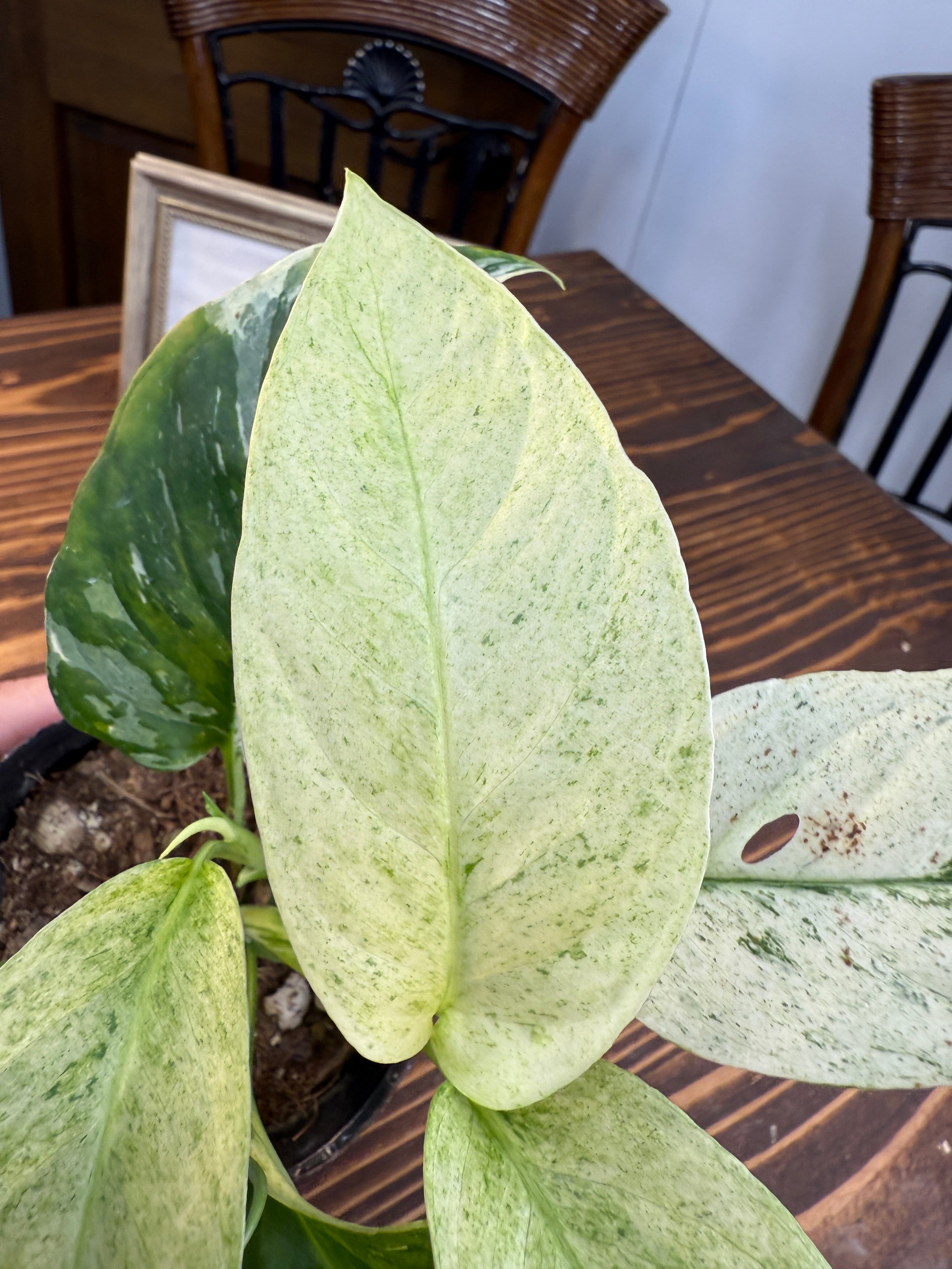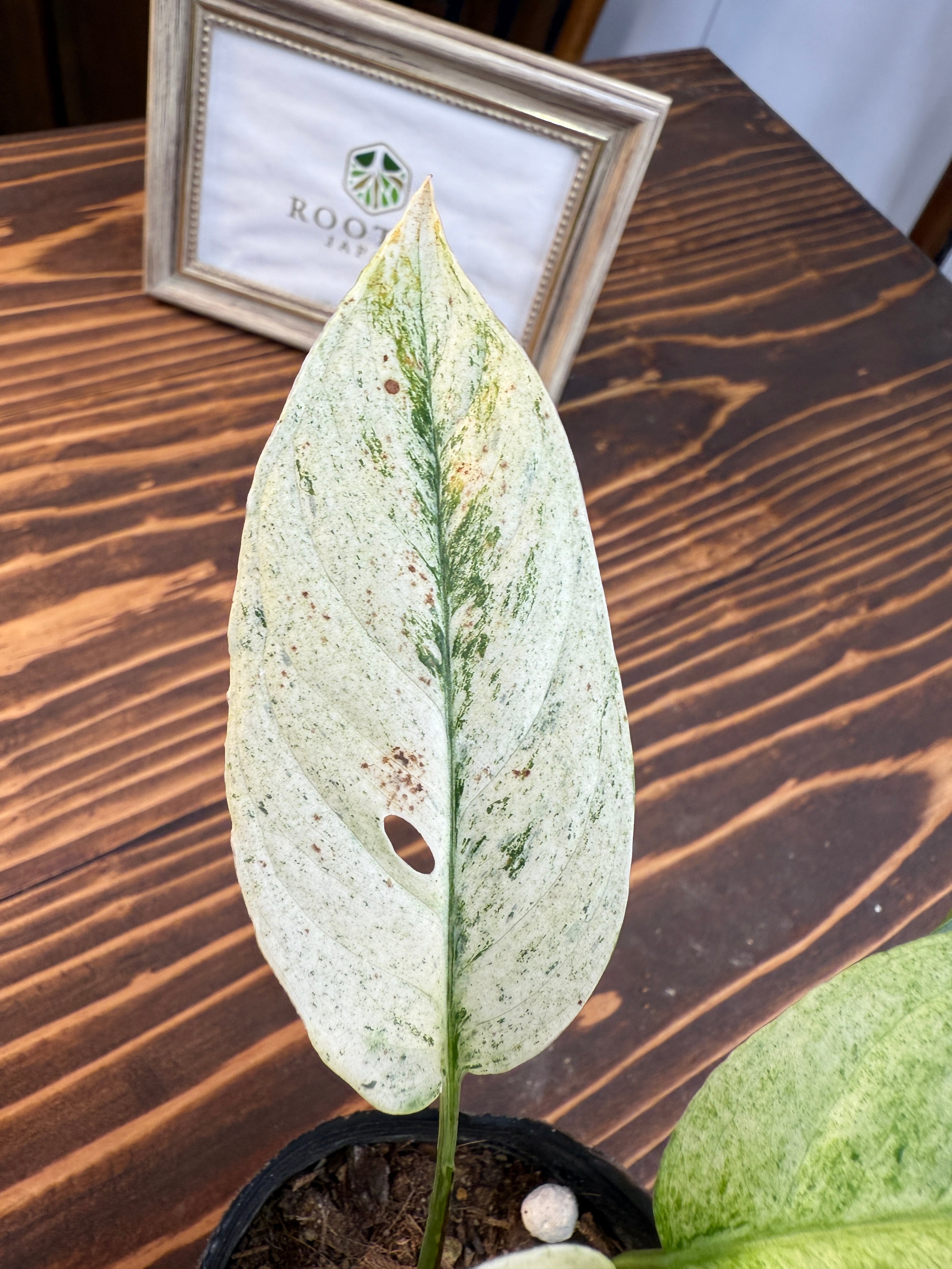【モンステラ】ラニアータ バリエガータ その美しい斑入りの葉が特徴の観葉植物です!お部屋にトロピカルな雰囲気を与え、心地よくリラックスできる空間を演出します。観葉植物初心者の方にも育てやすい特性を持っていますので、ぜひこの機会にお迎えください。