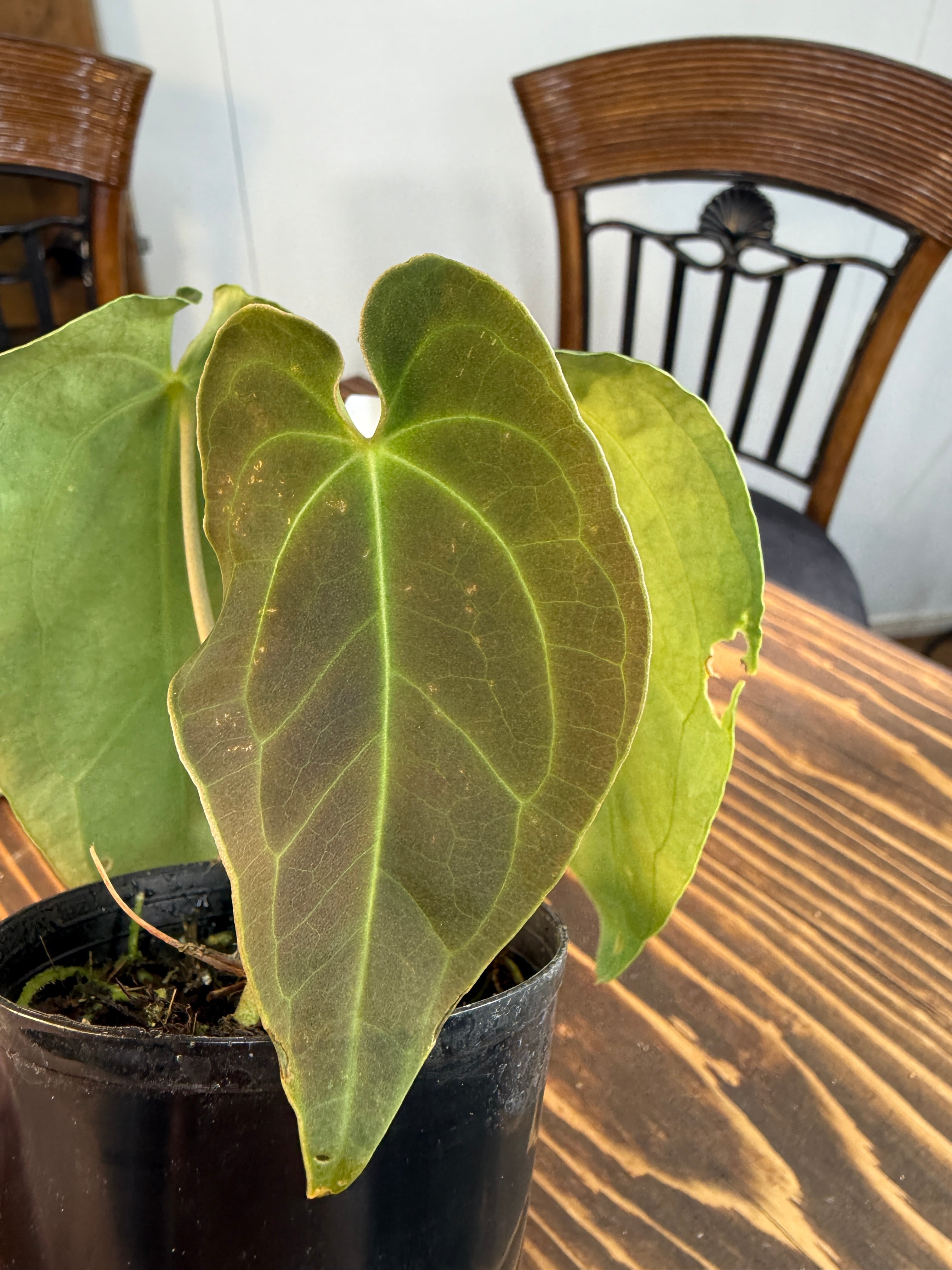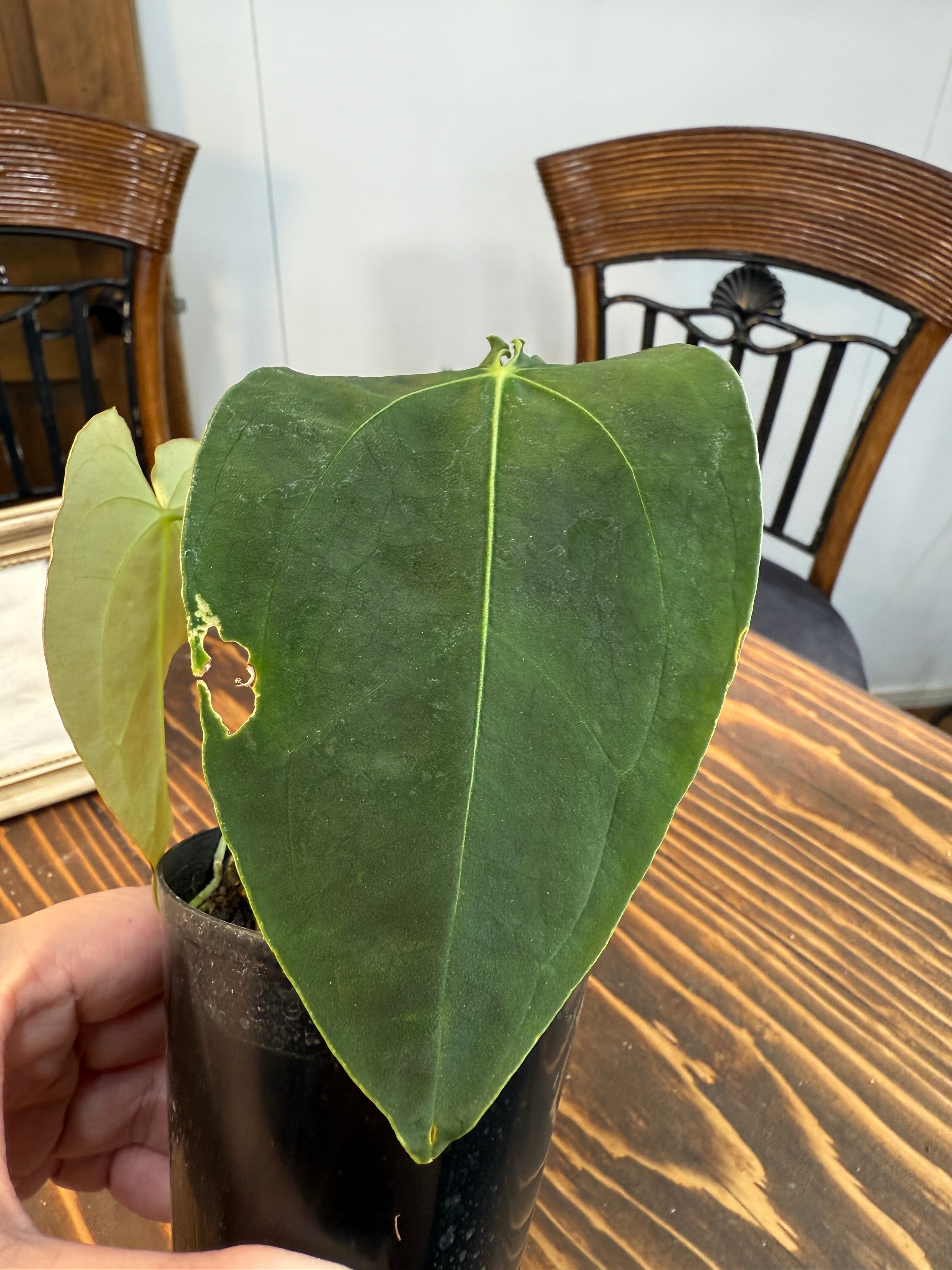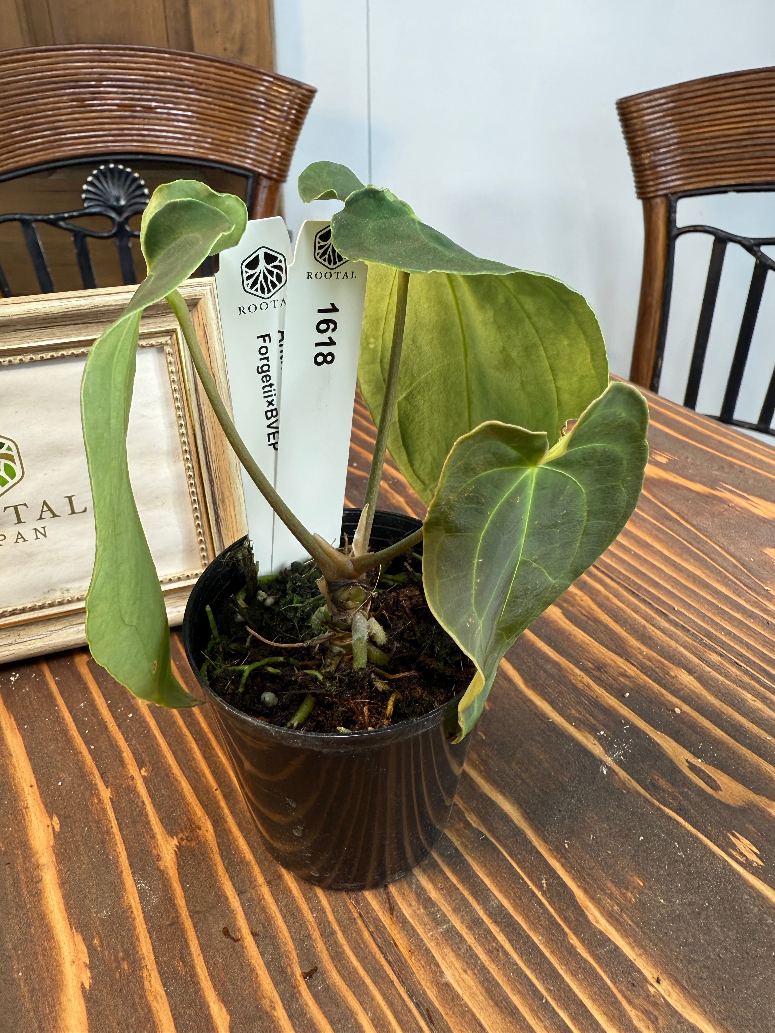 ★1618 アンスリウム フォルゲッティ×BVEP (2.5号プラ鉢)※葉破れあり