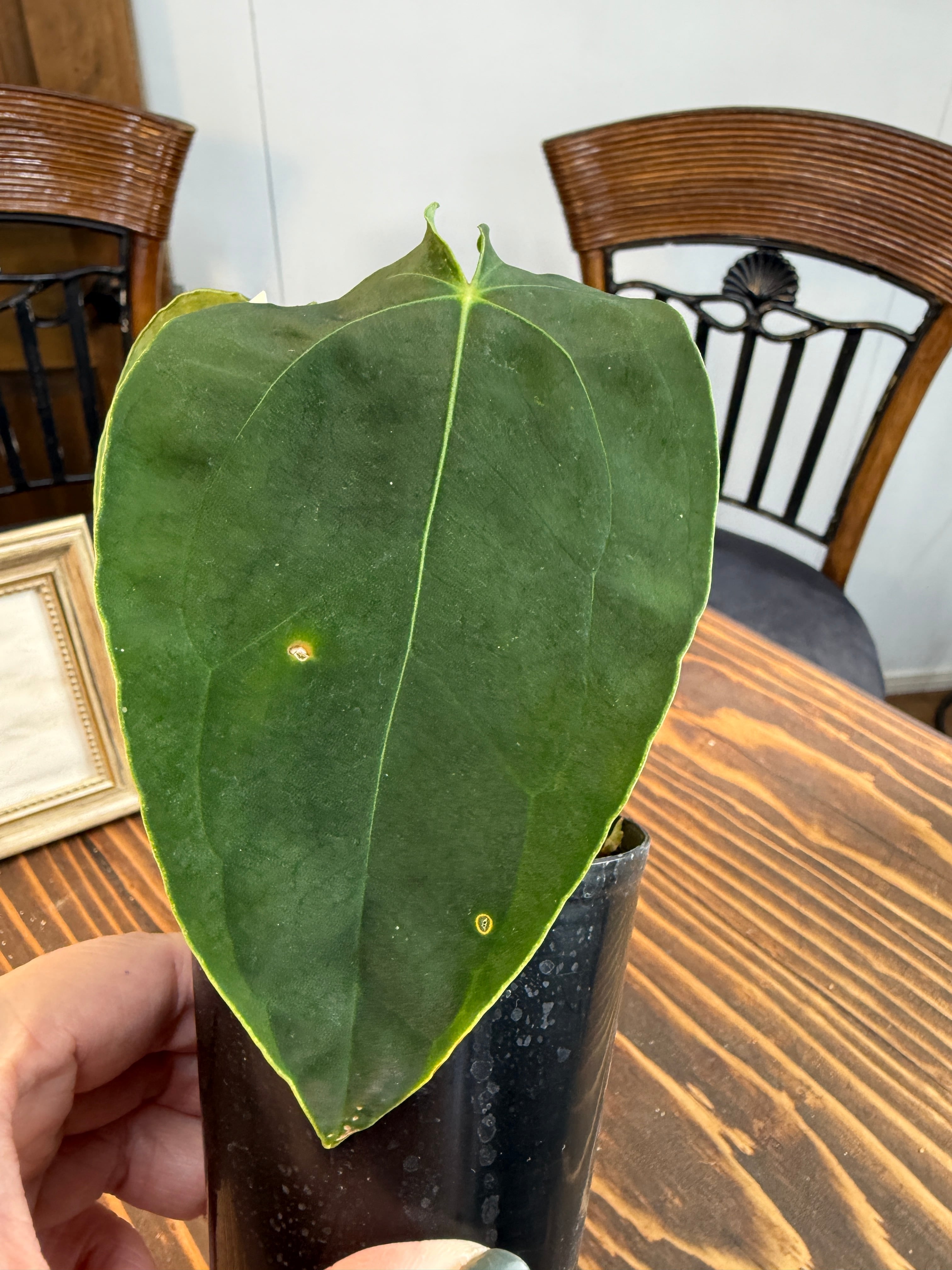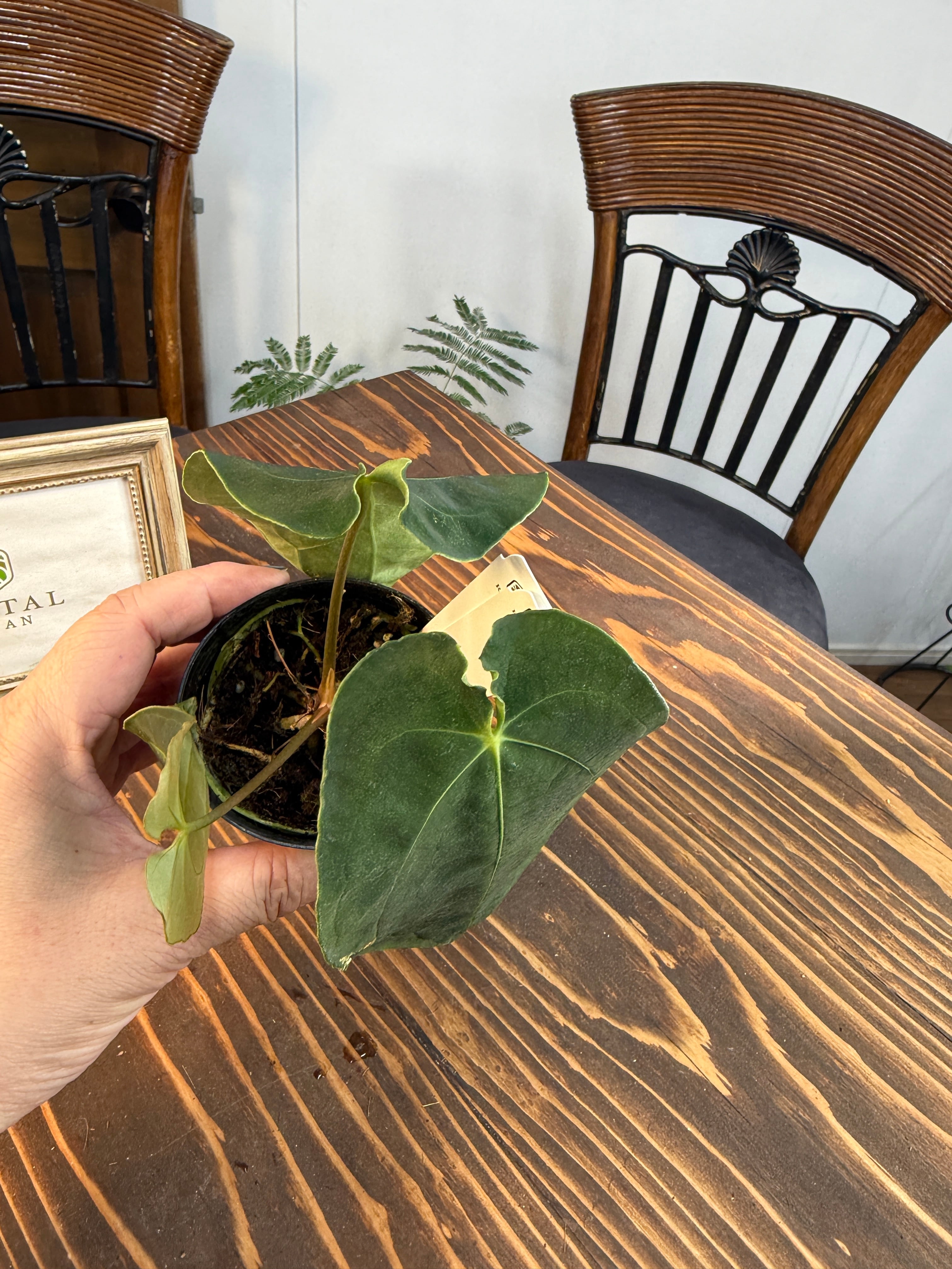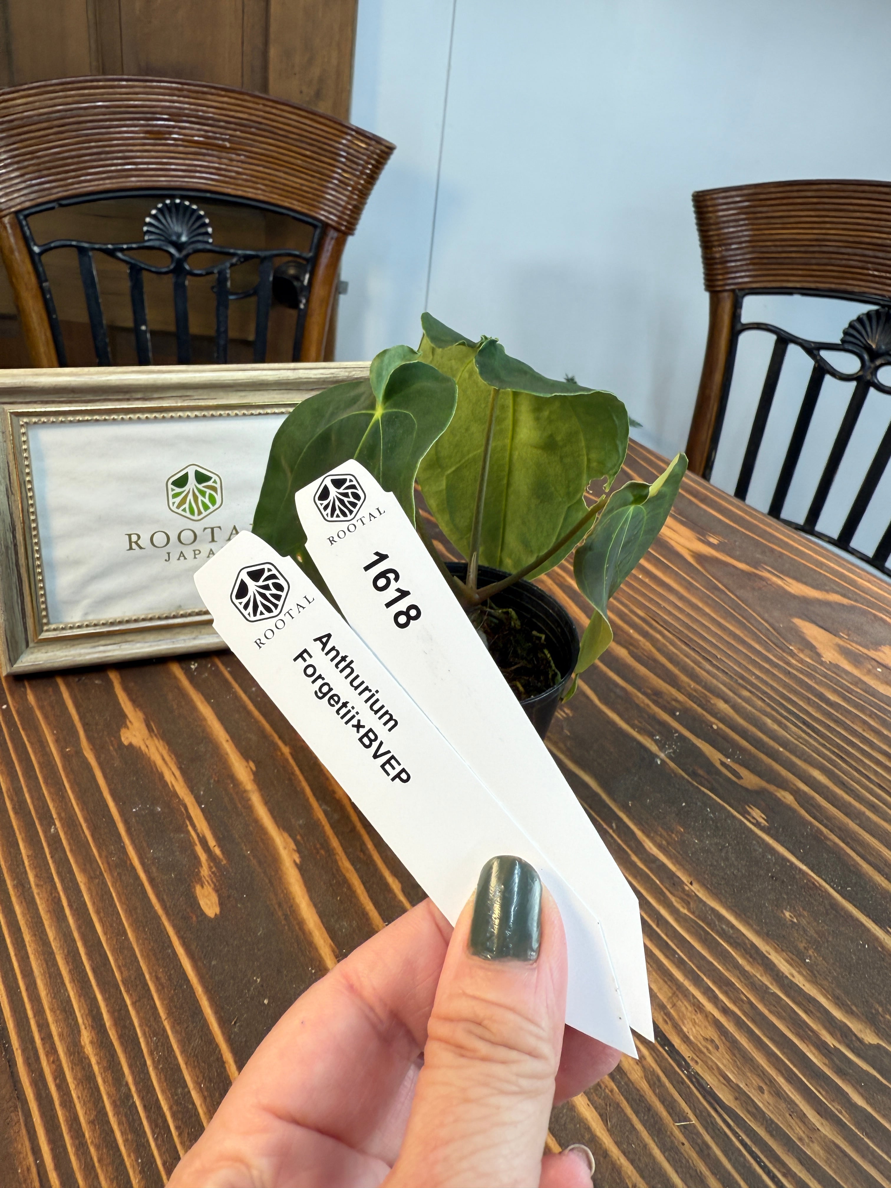 ★1618 アンスリウム フォルゲッティ×BVEP (2.5号プラ鉢)※葉破れあり