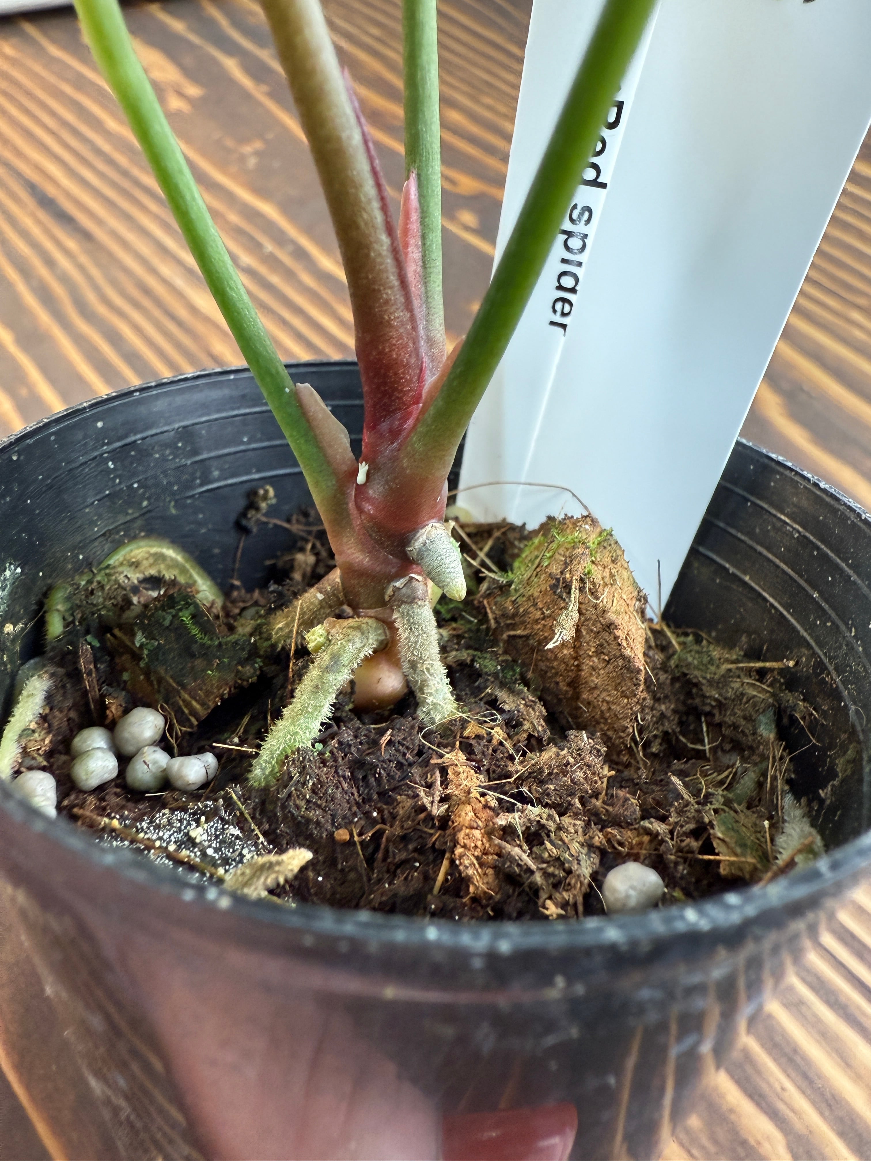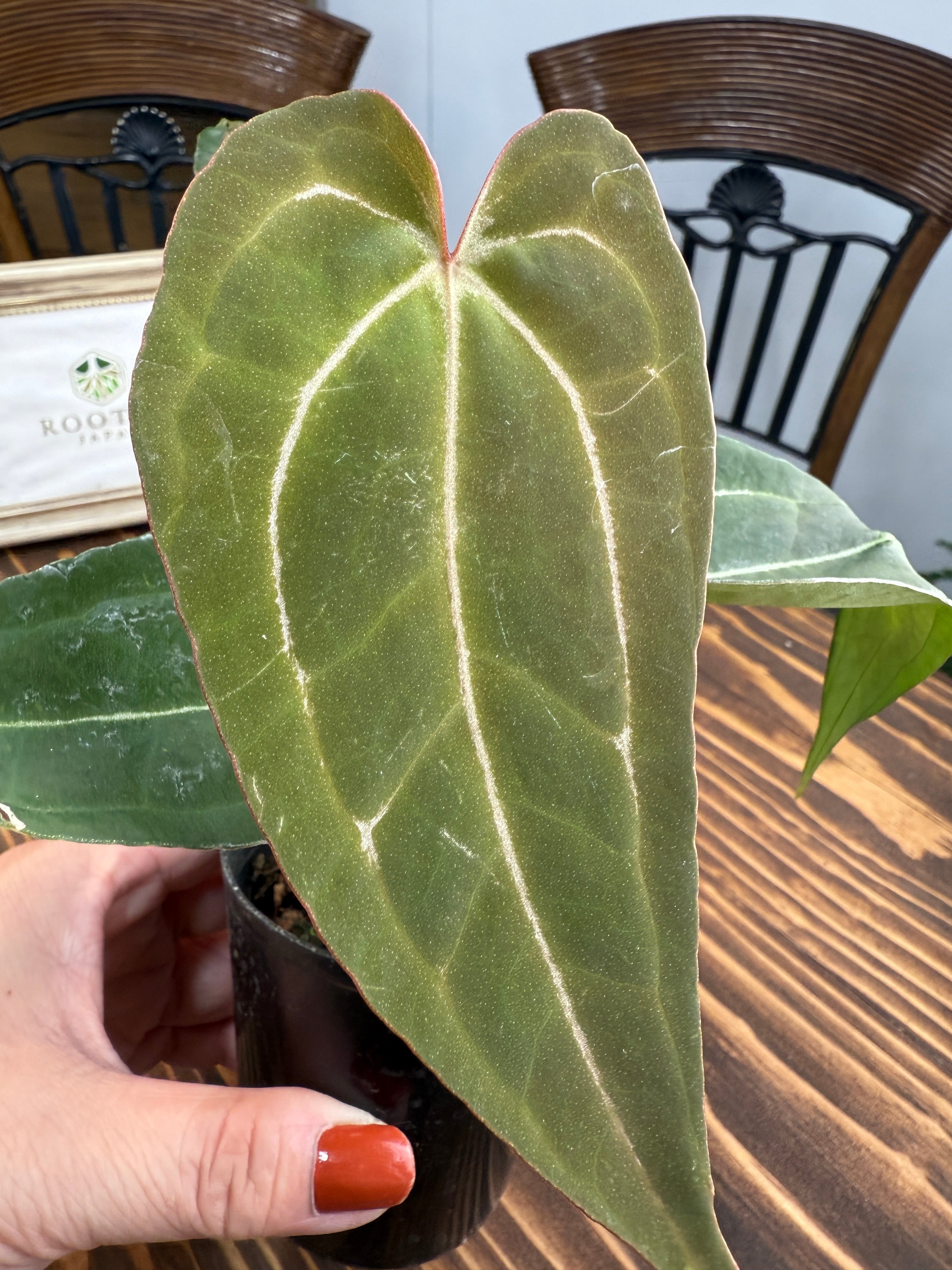 ★1586【赤緑×光脈】アンスリウム エンジェルスD×レッドスパイダー(2.5号プラ鉢)