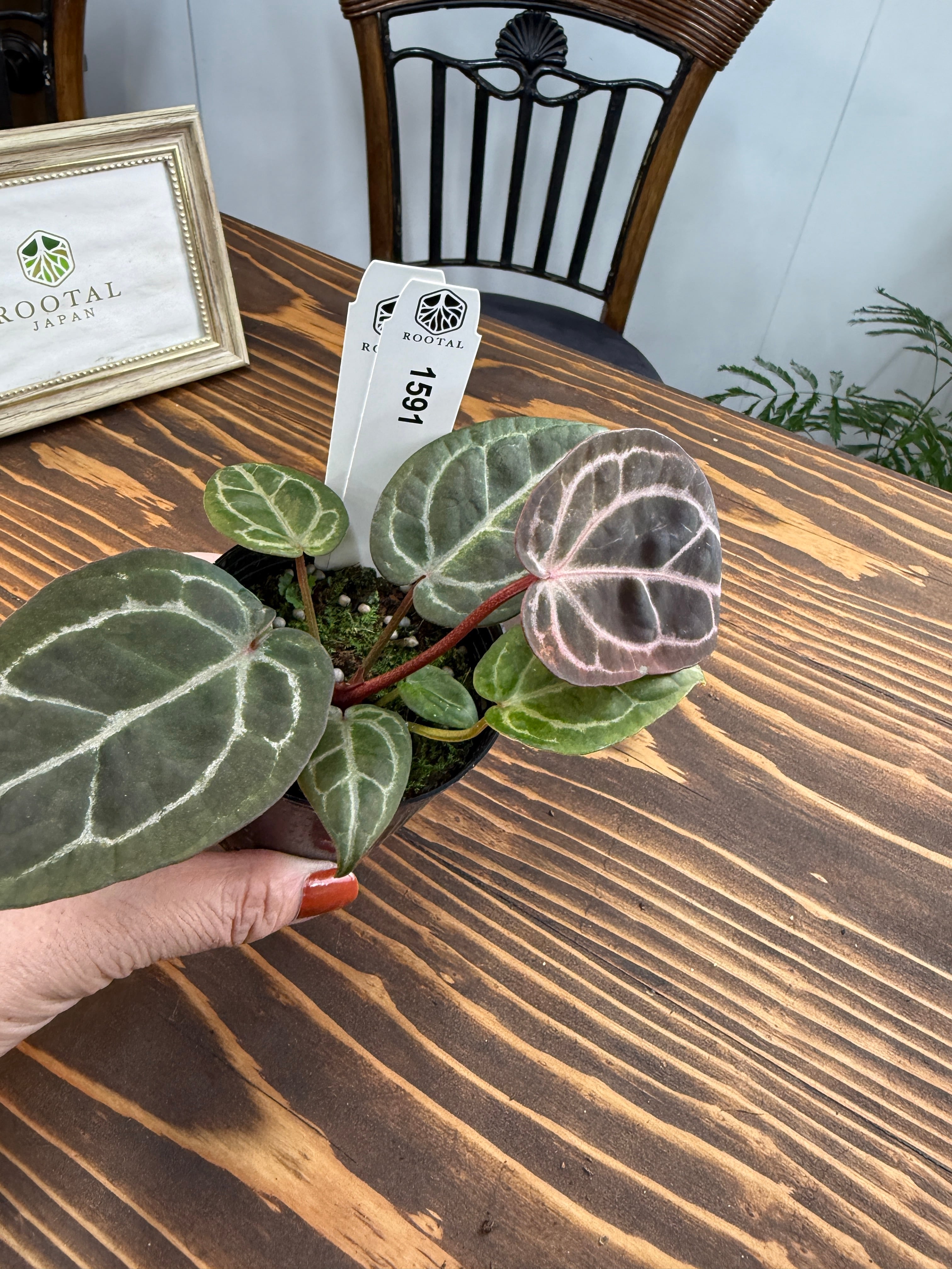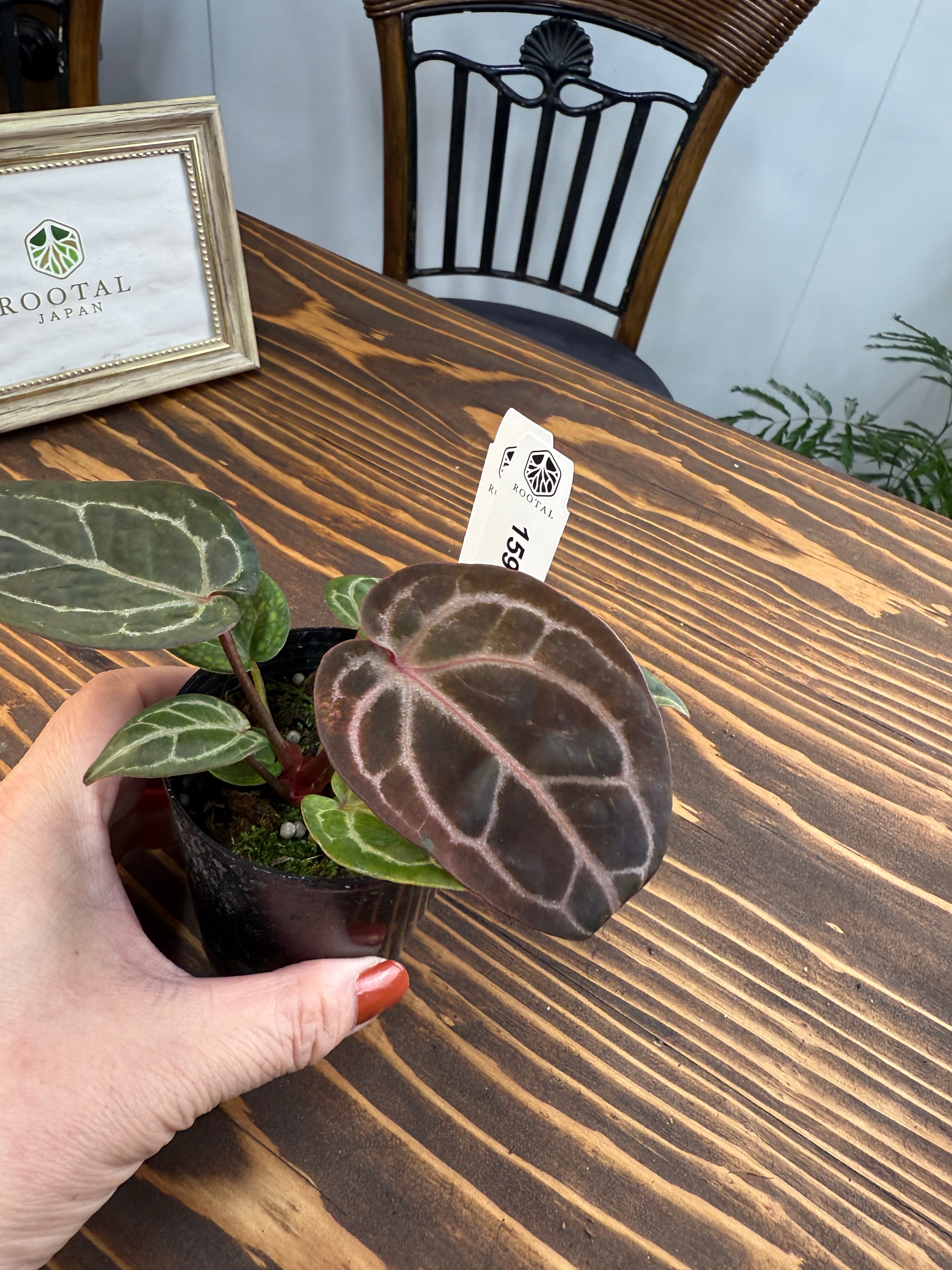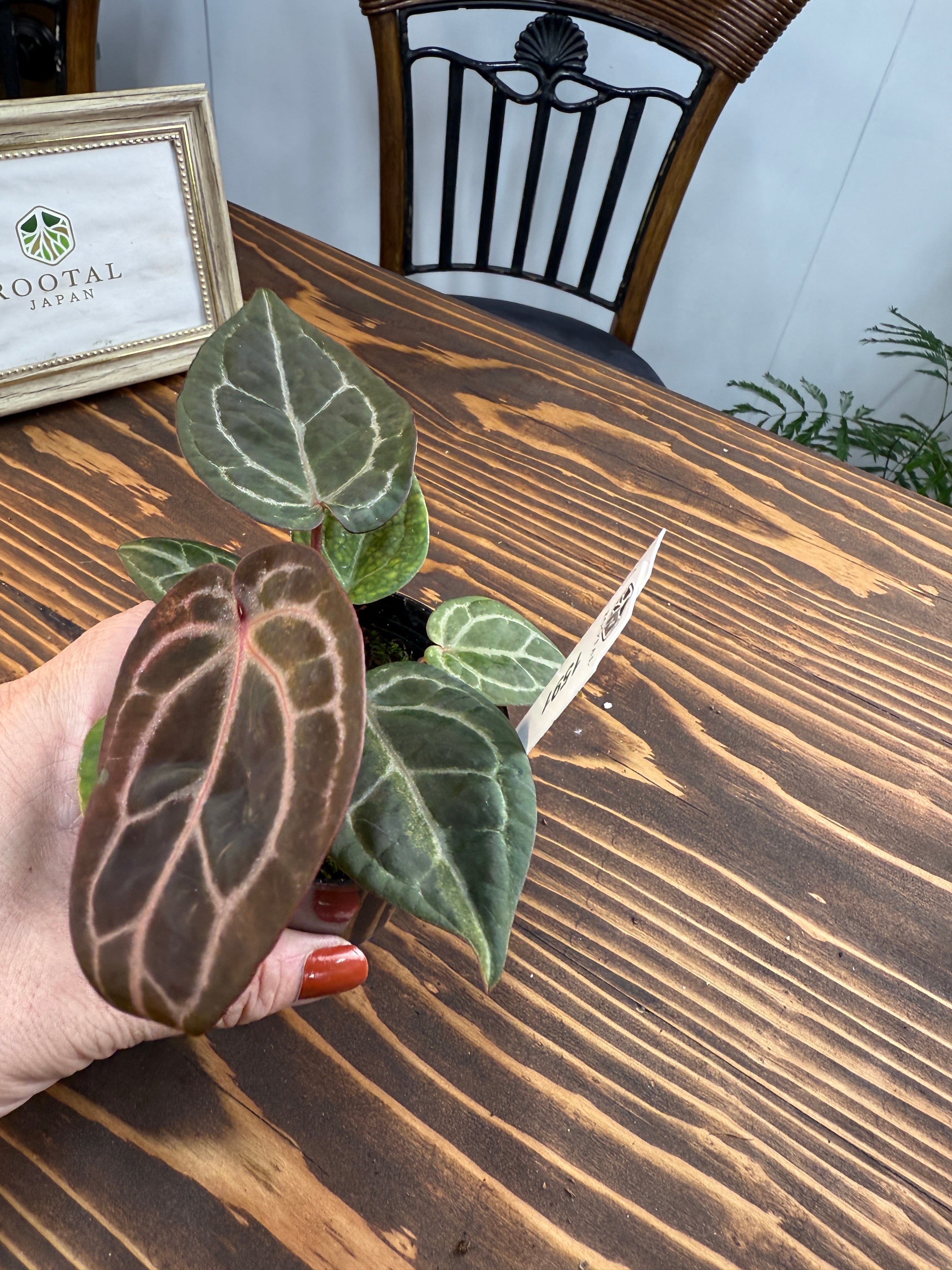 ★1591【高貴な深紅の輝き】アンスリウム レッドクリスタリナム♯1×♯2 (2.5号プラ鉢)
