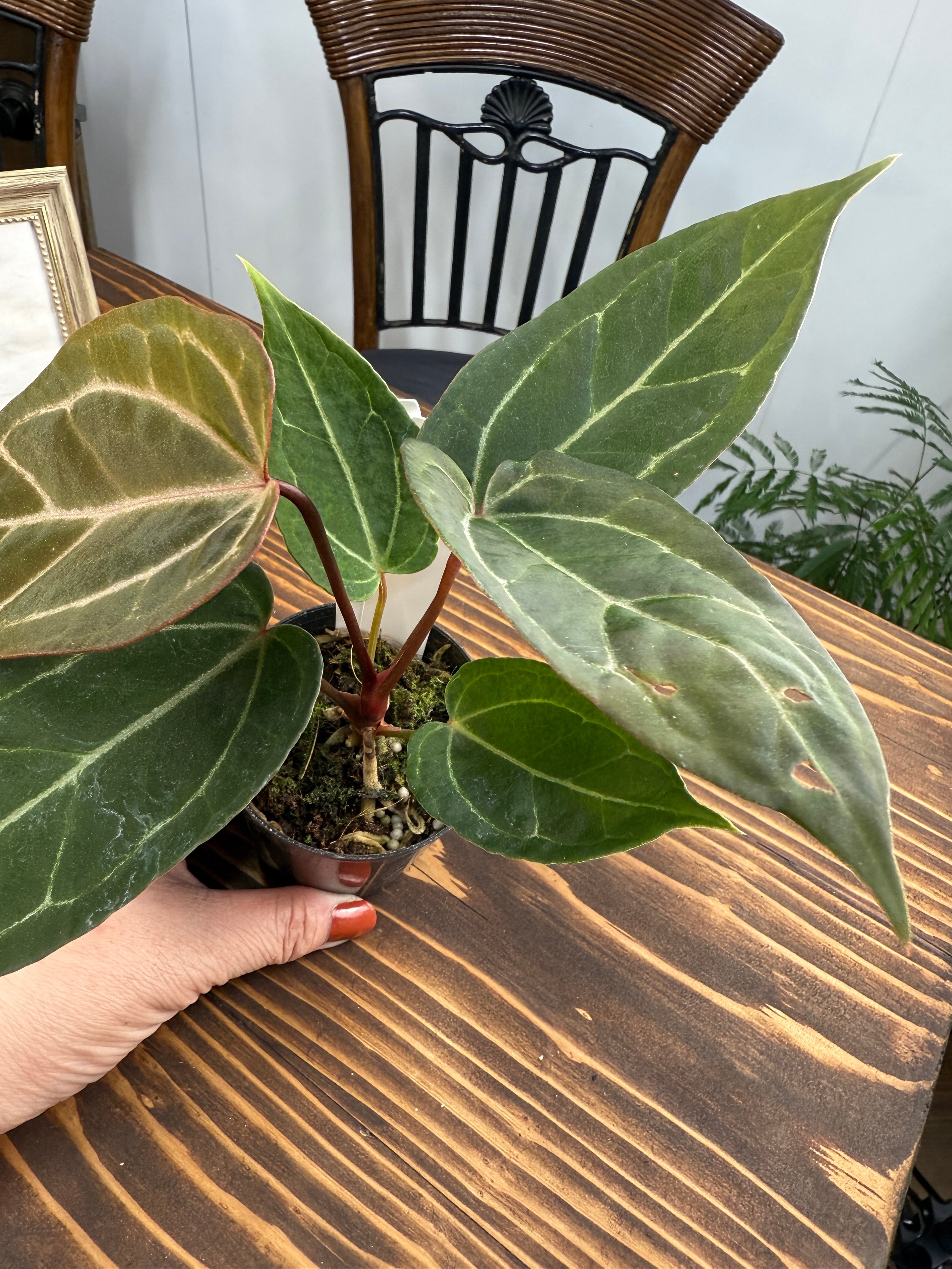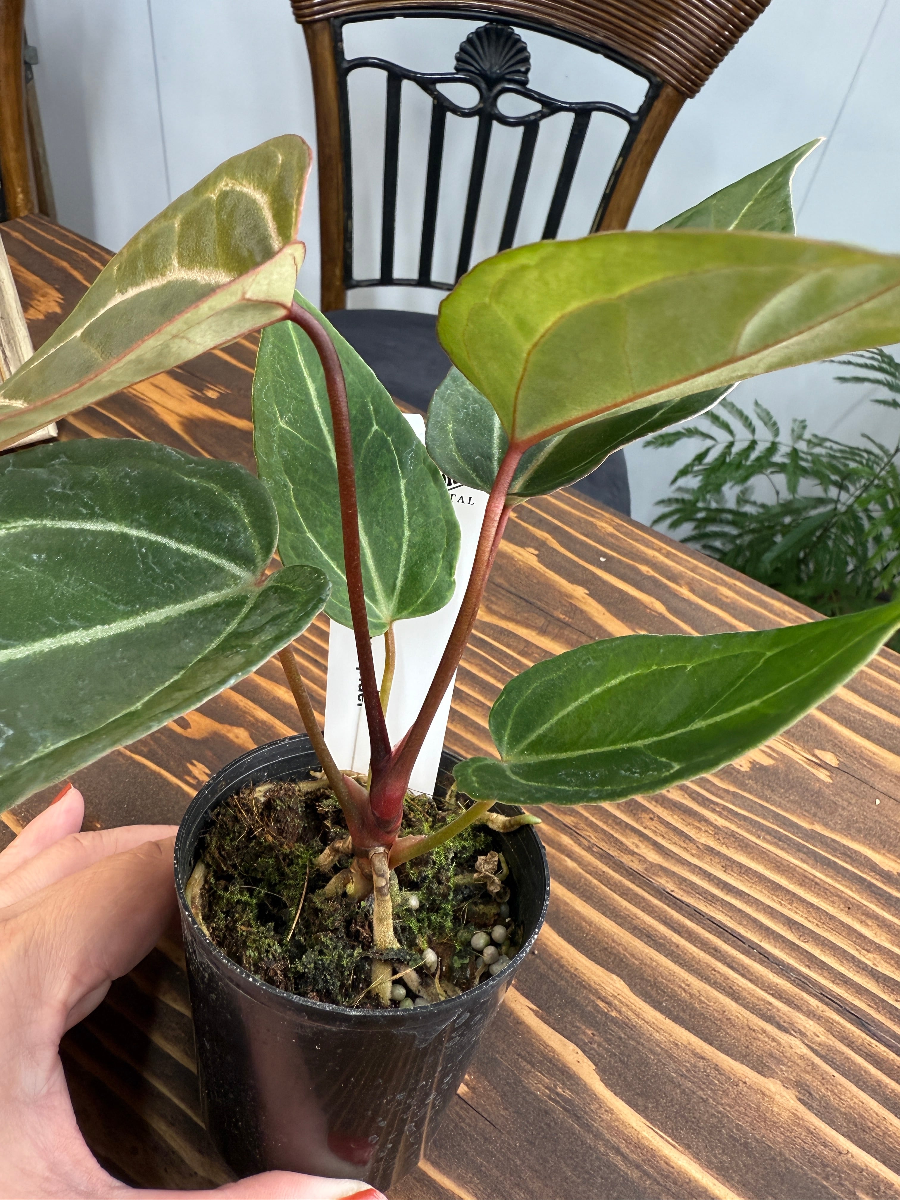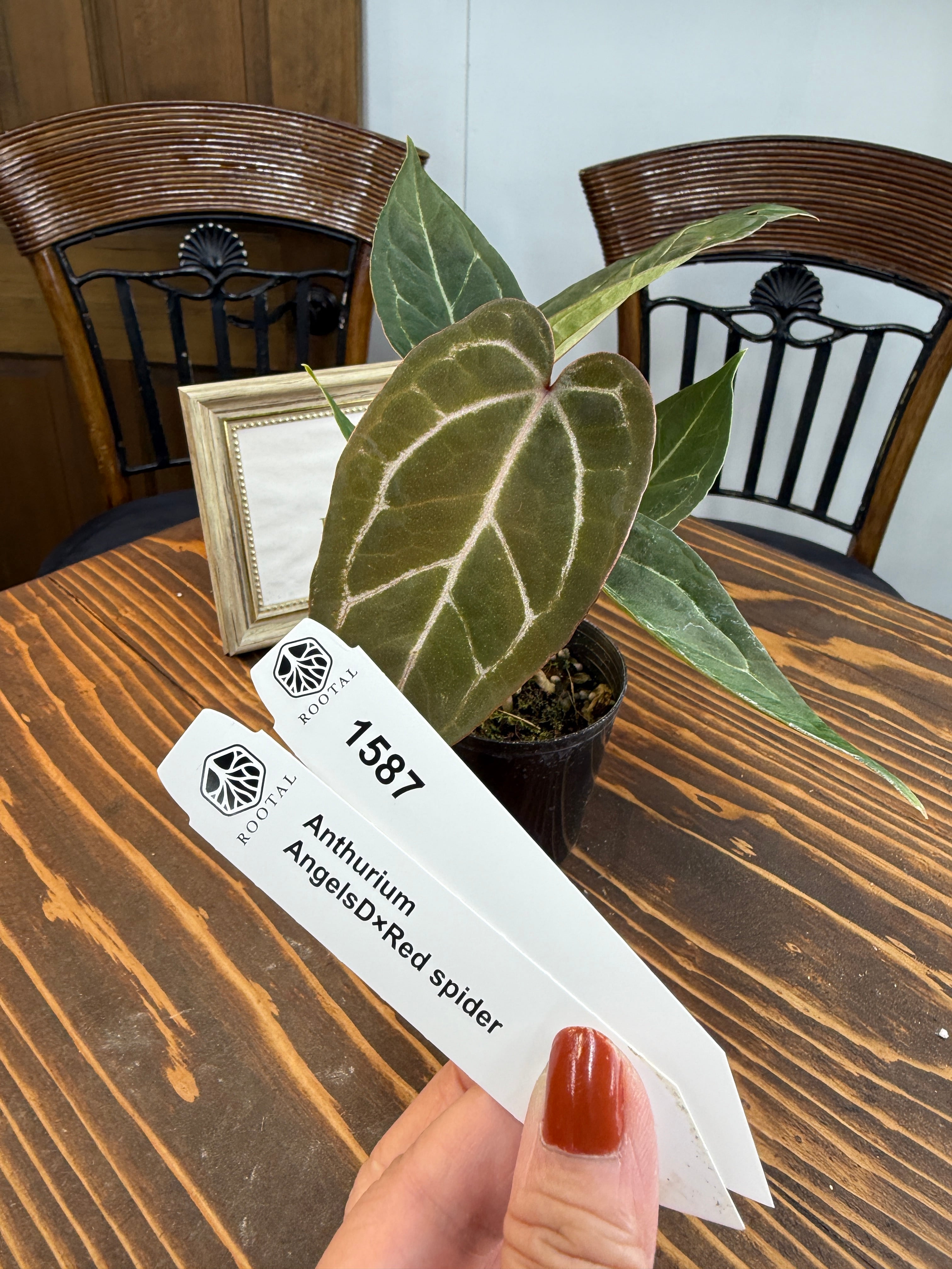 ★1587【赤緑×光脈】アンスリウム エンジェルスD×レッドスパイダー(2.5号プラ鉢)