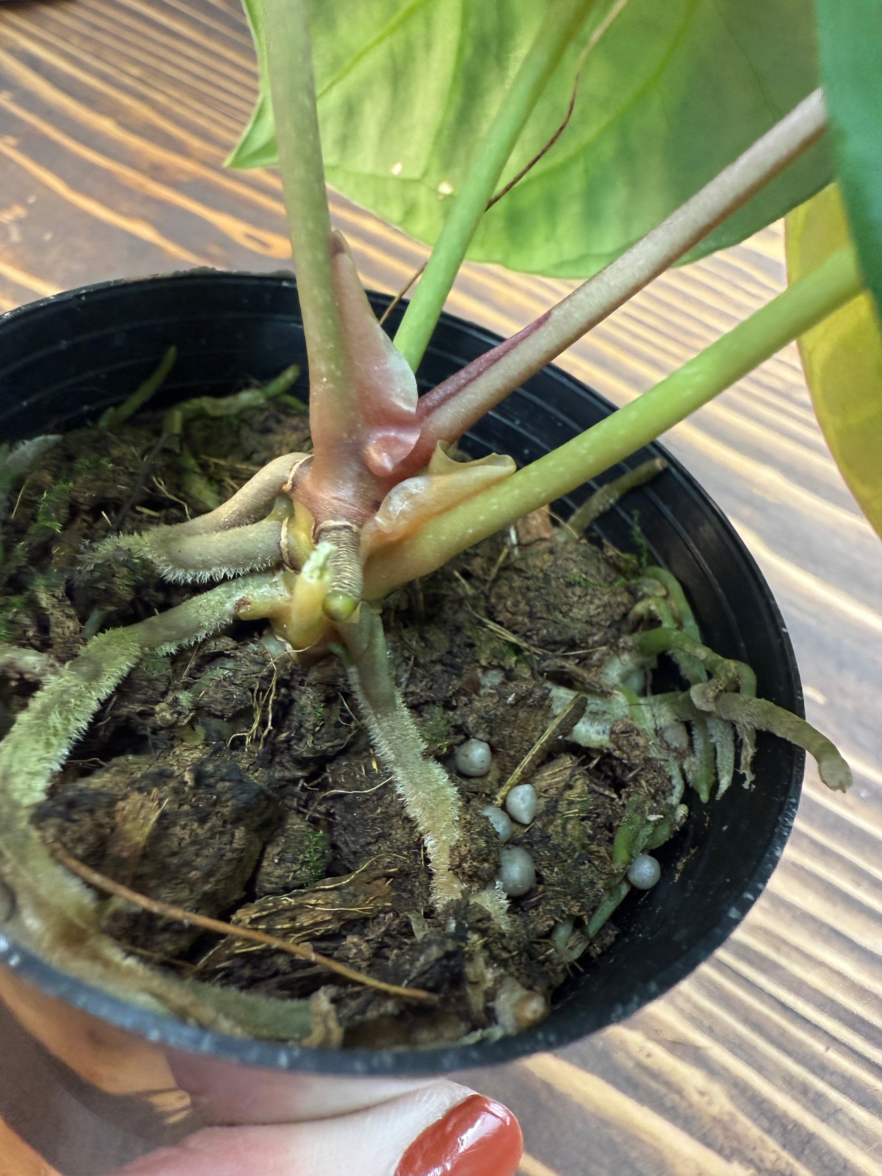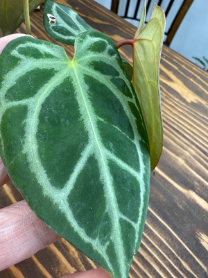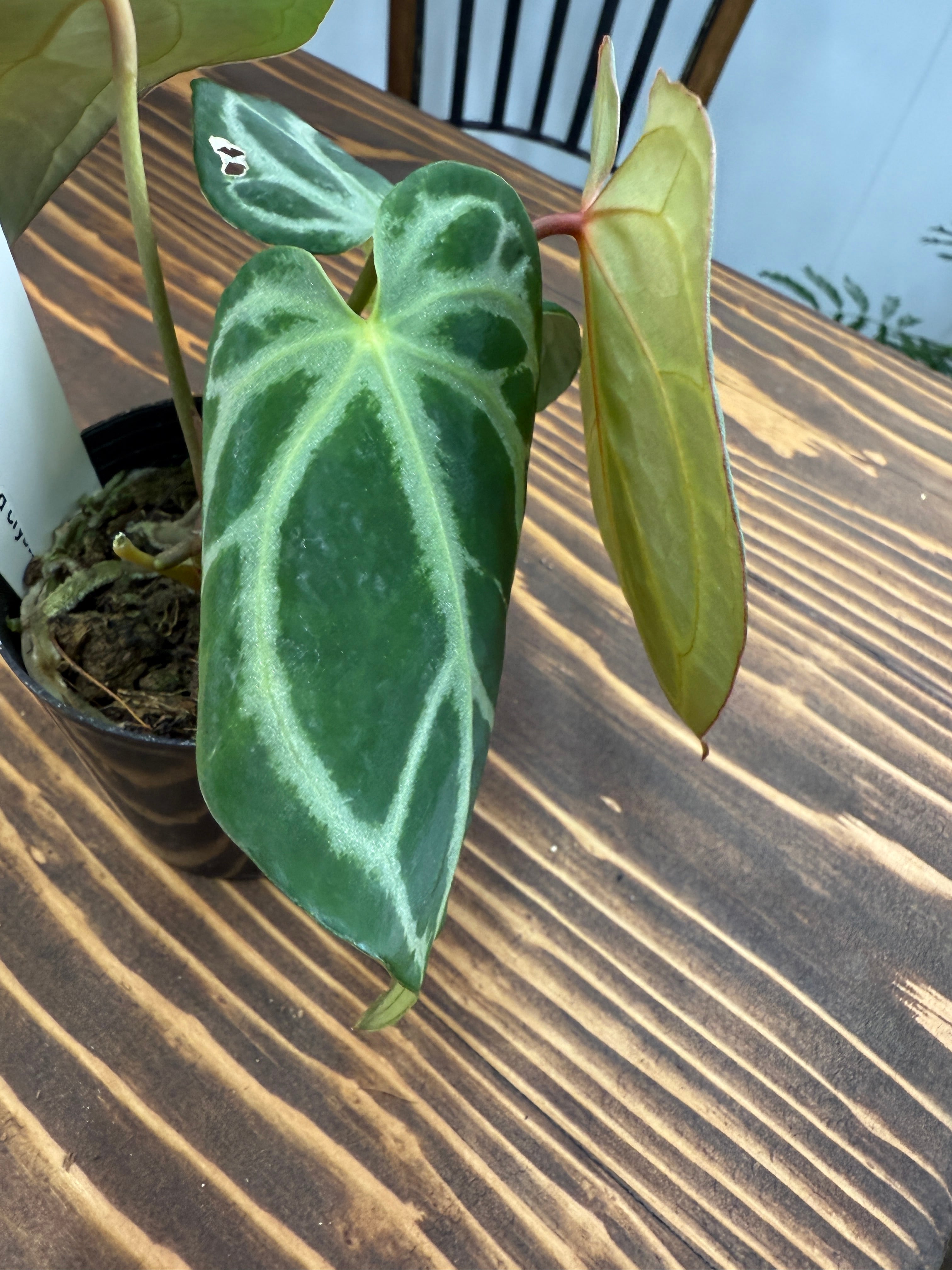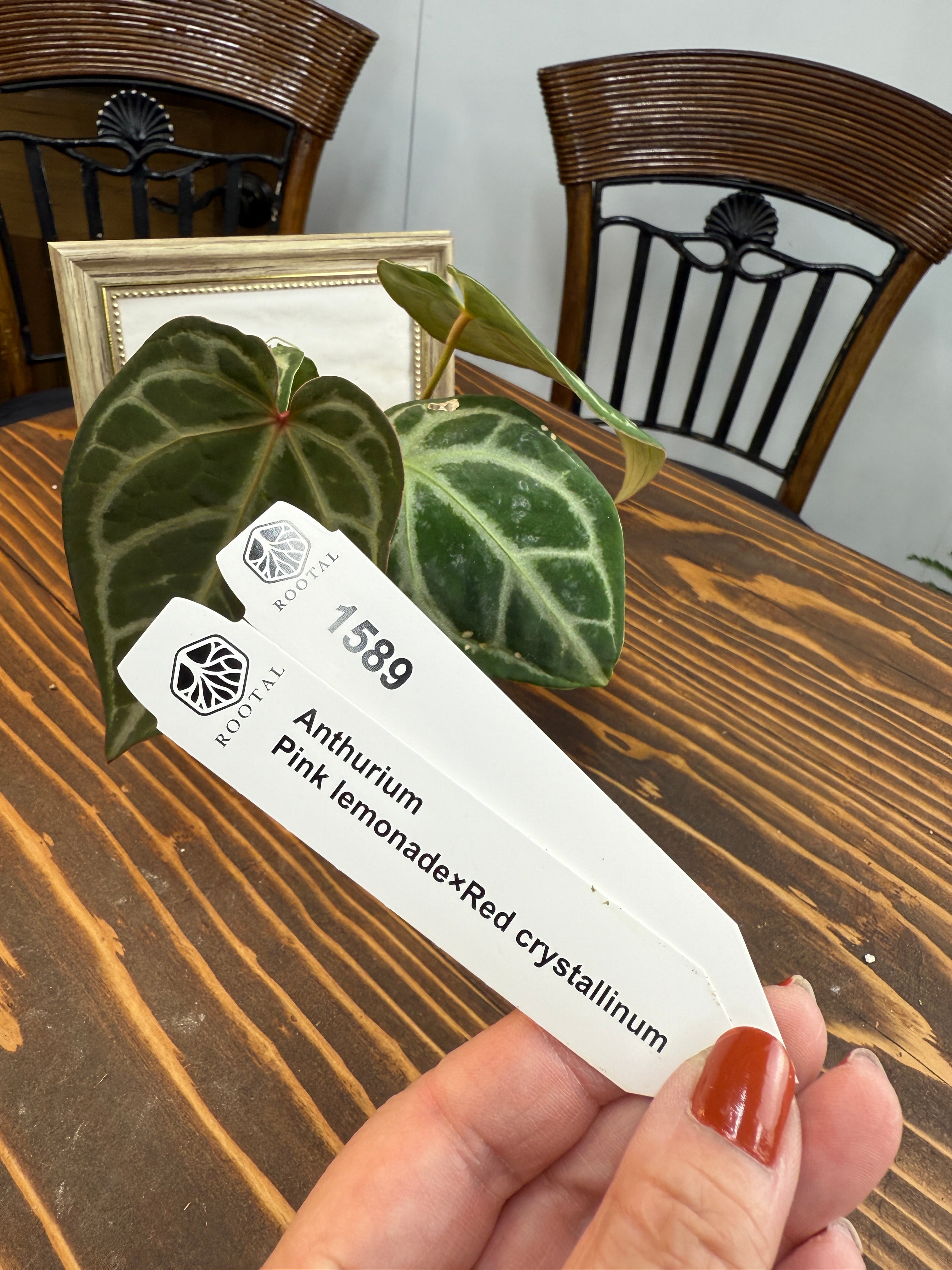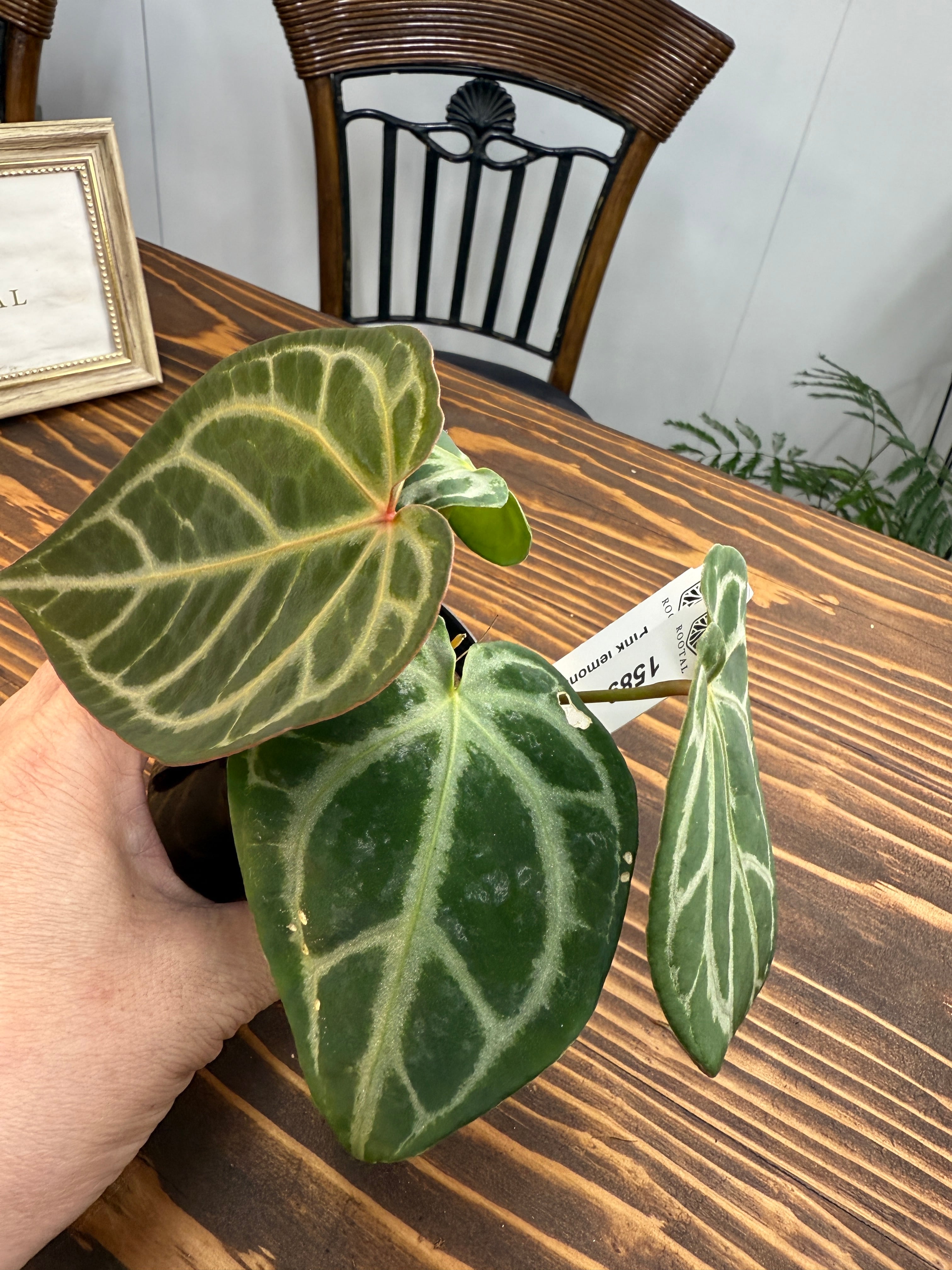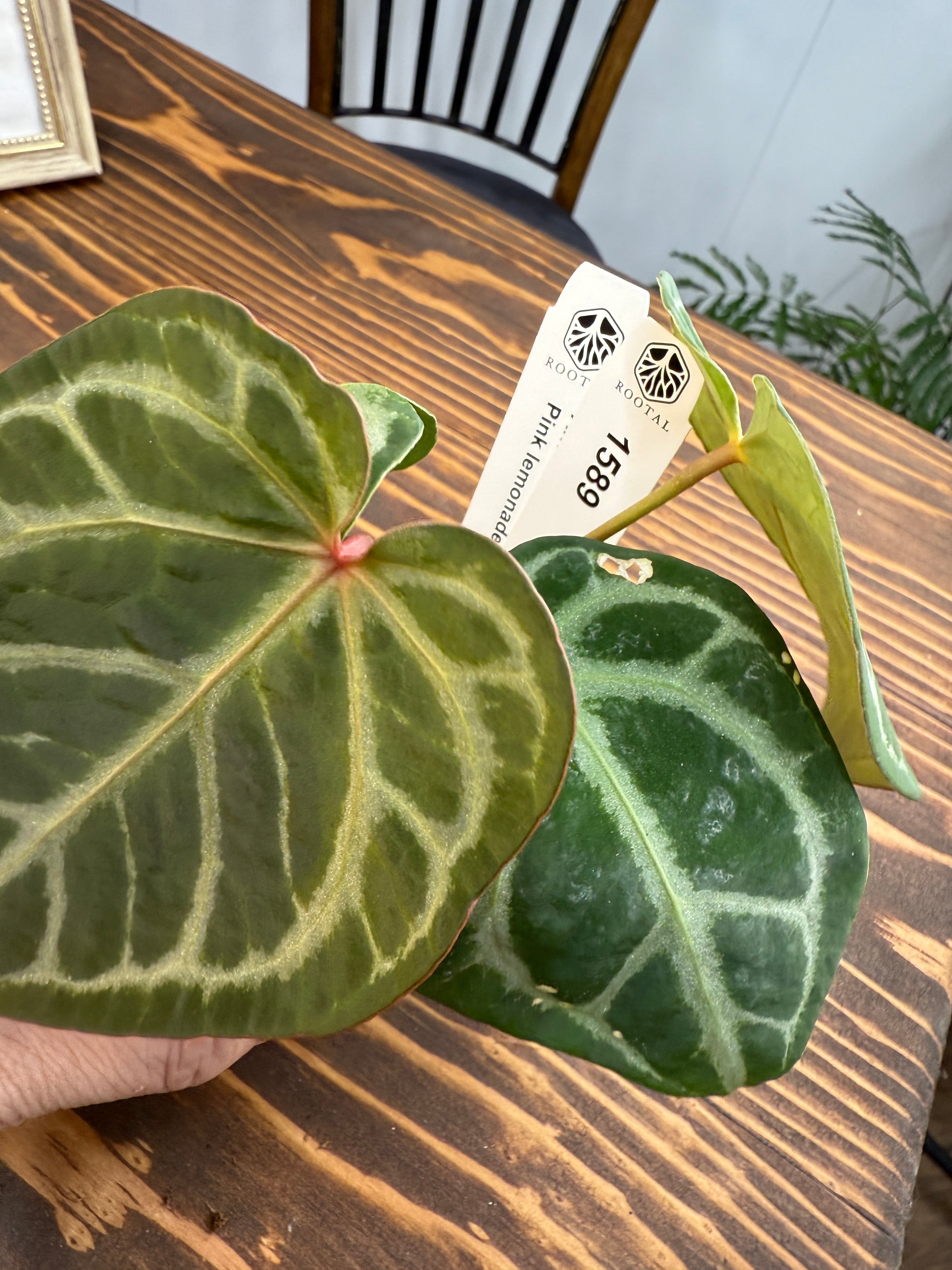 ★1589【赤脈ベルベット】アンスリウム ピンクレモネード×レッドクリスタリナム(2.5号プラ鉢)