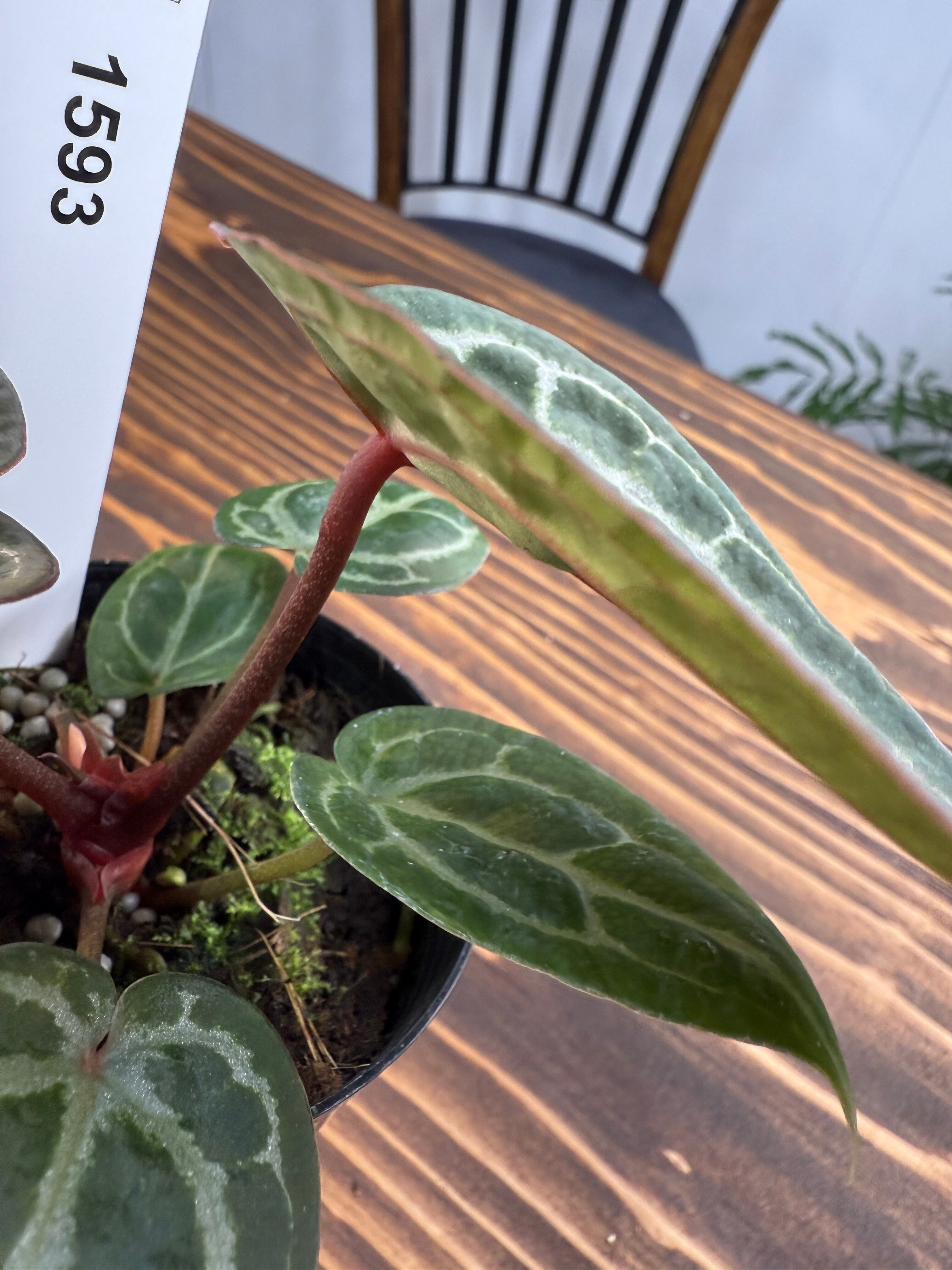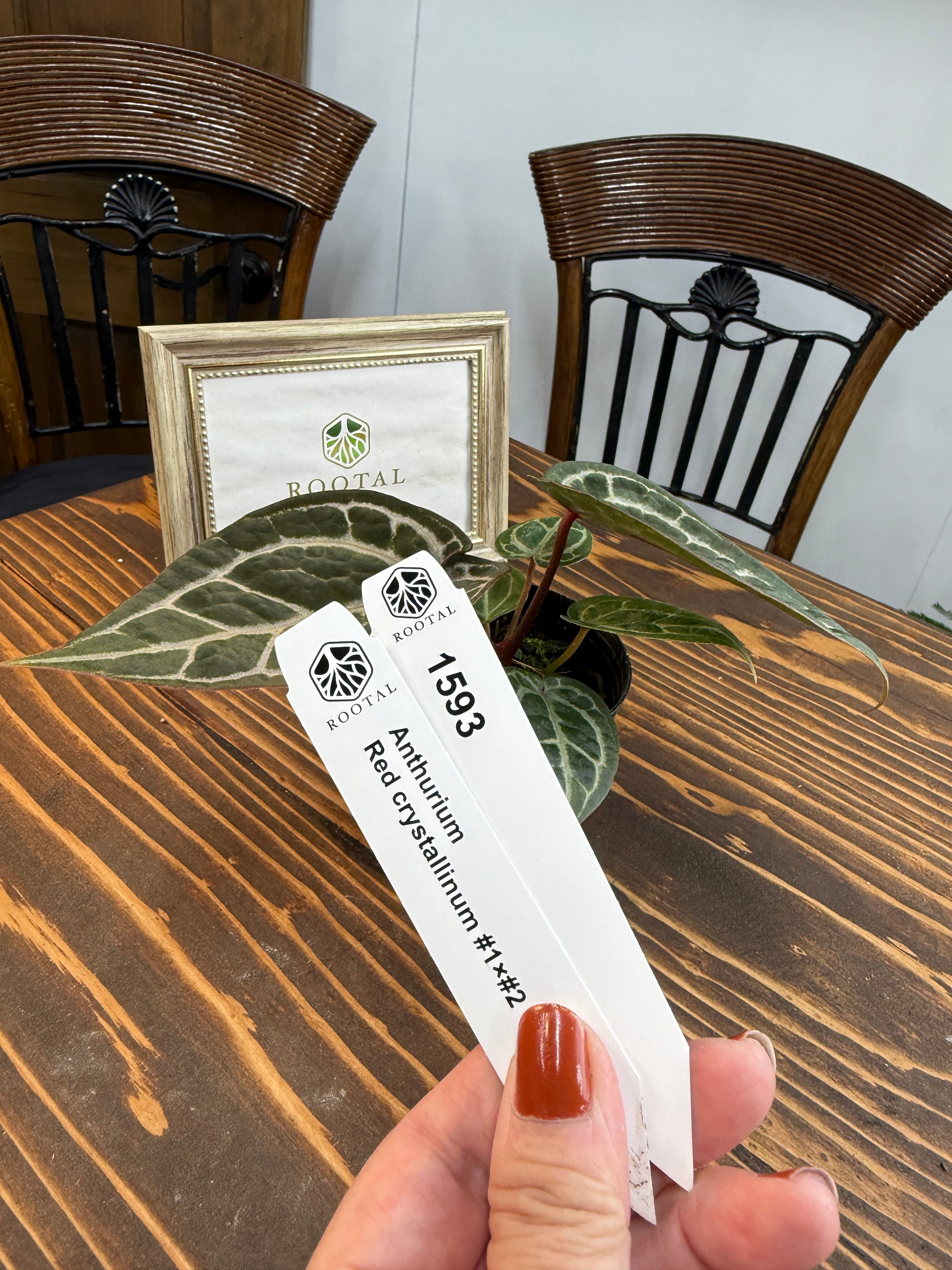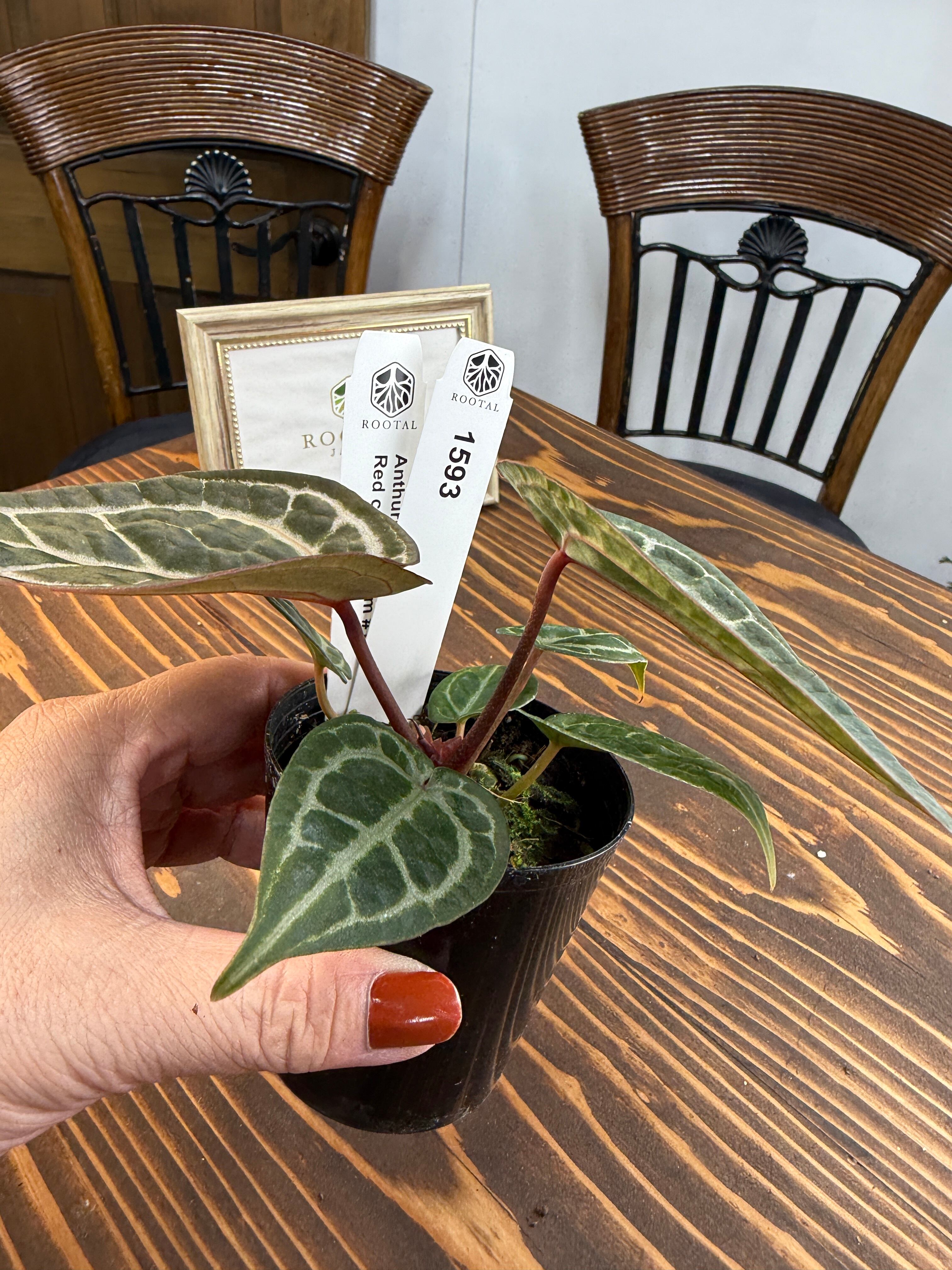 ★1593【高貴な深紅の輝き】アンスリウム レッドクリスタリナム♯1×♯2 (2.5号プラ鉢)
