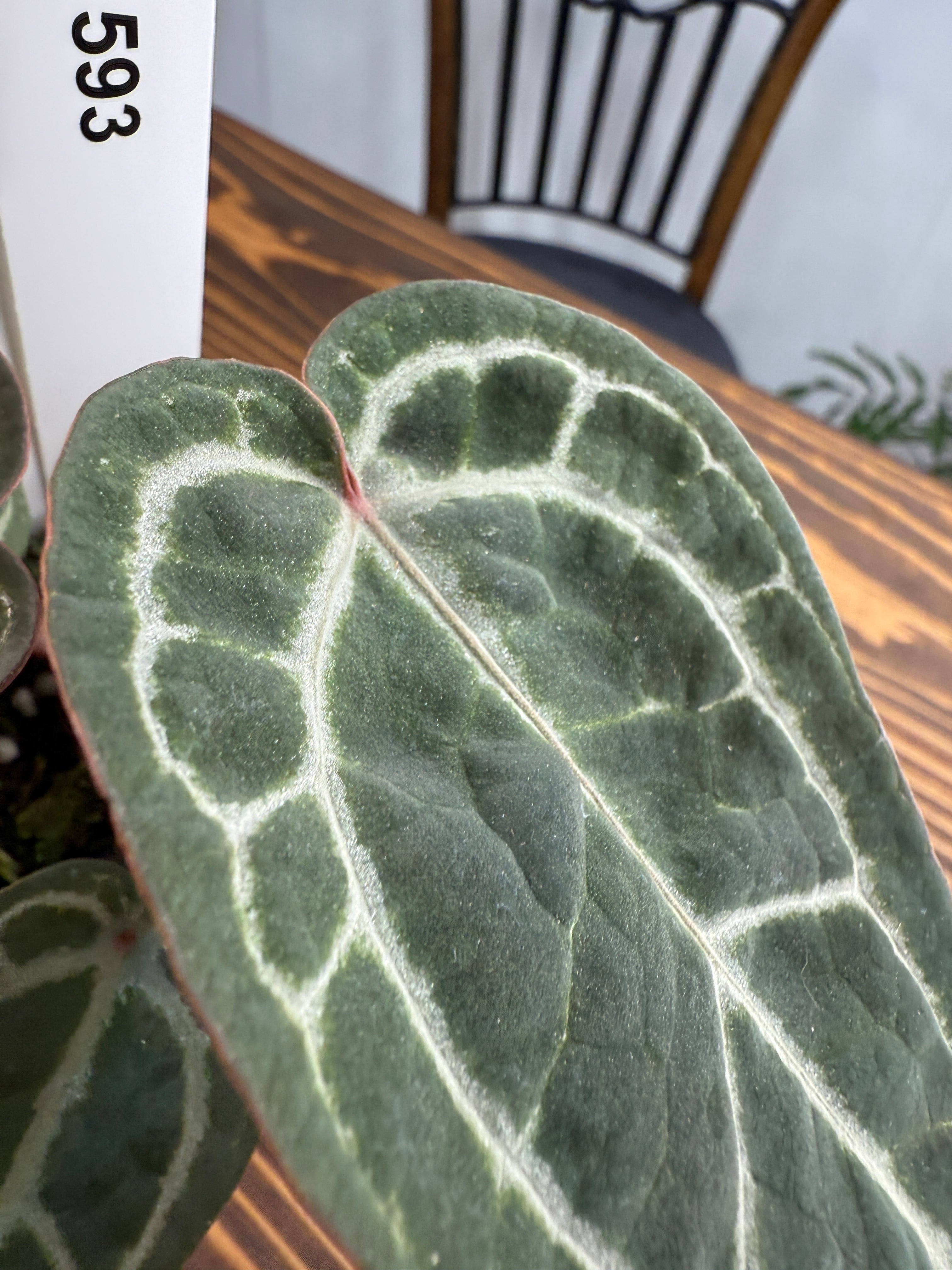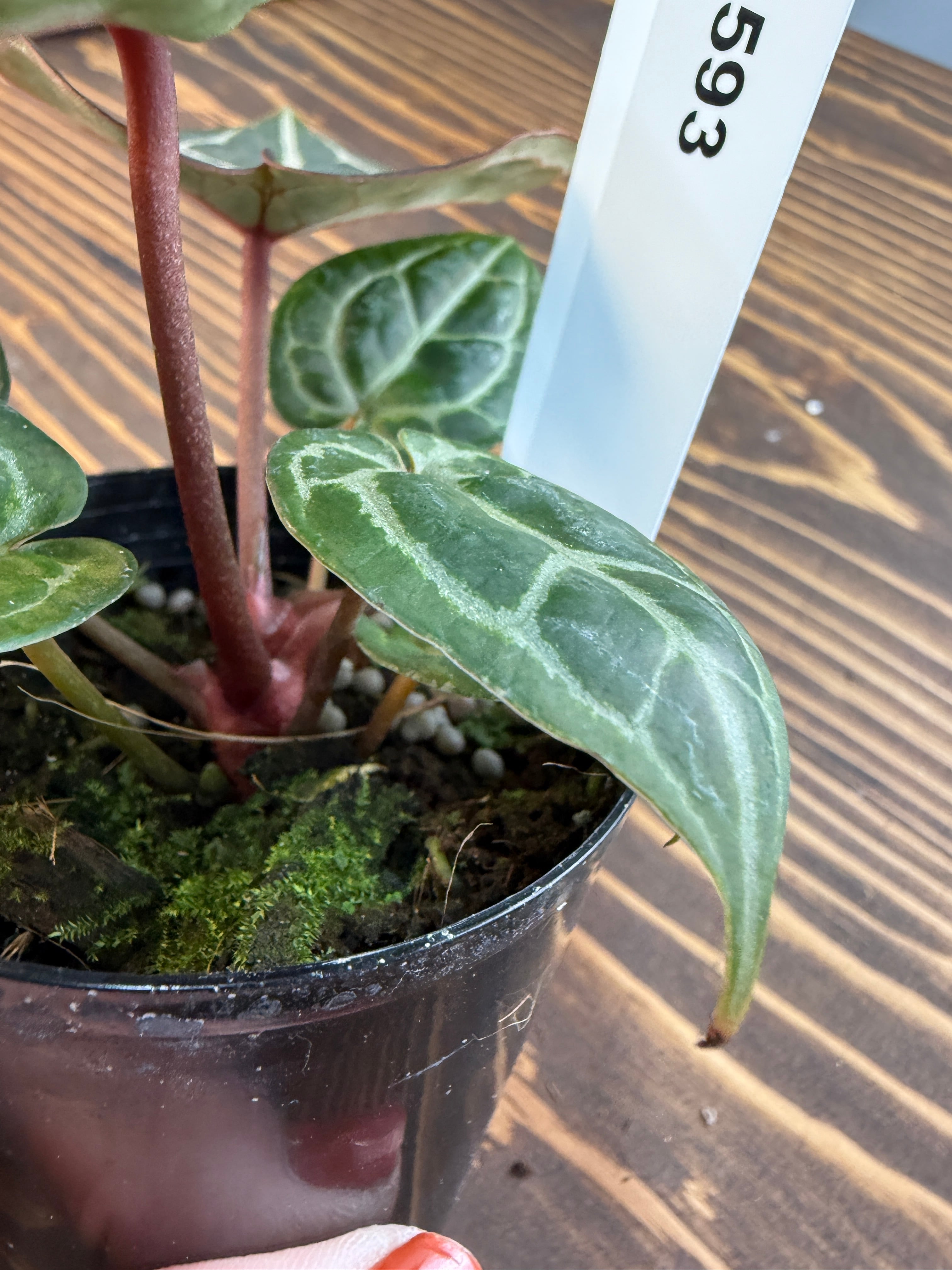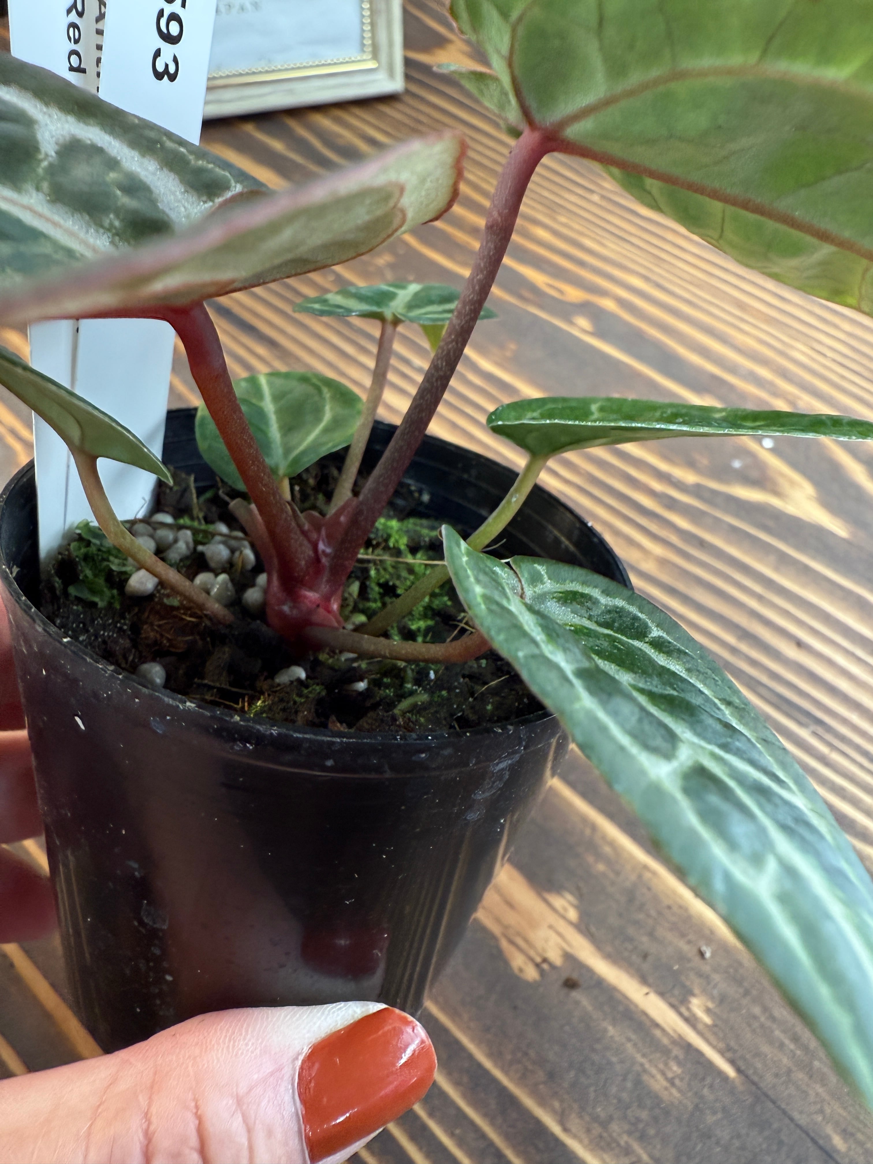 ★1593【高貴な深紅の輝き】アンスリウム レッドクリスタリナム♯1×♯2 (2.5号プラ鉢)