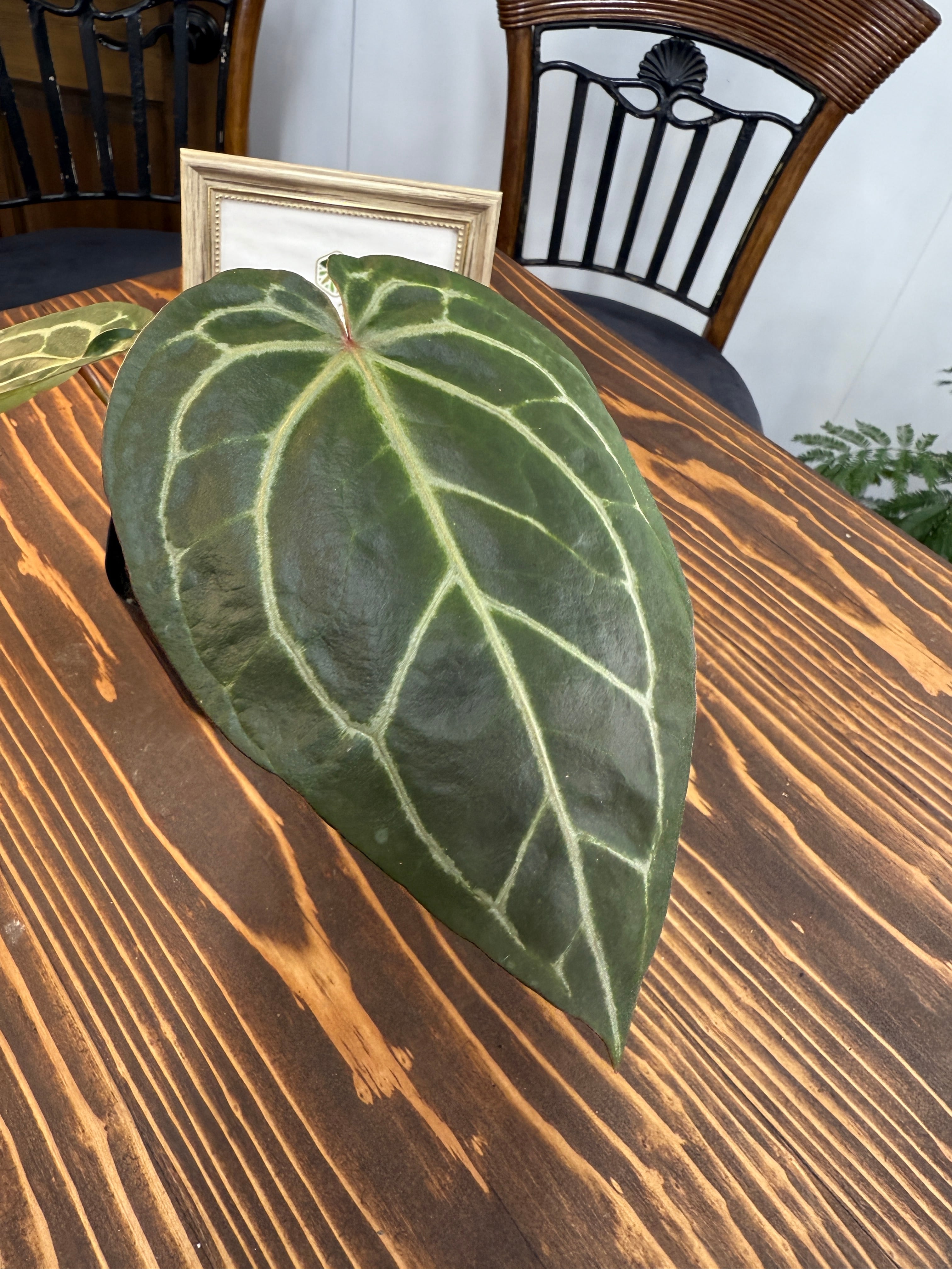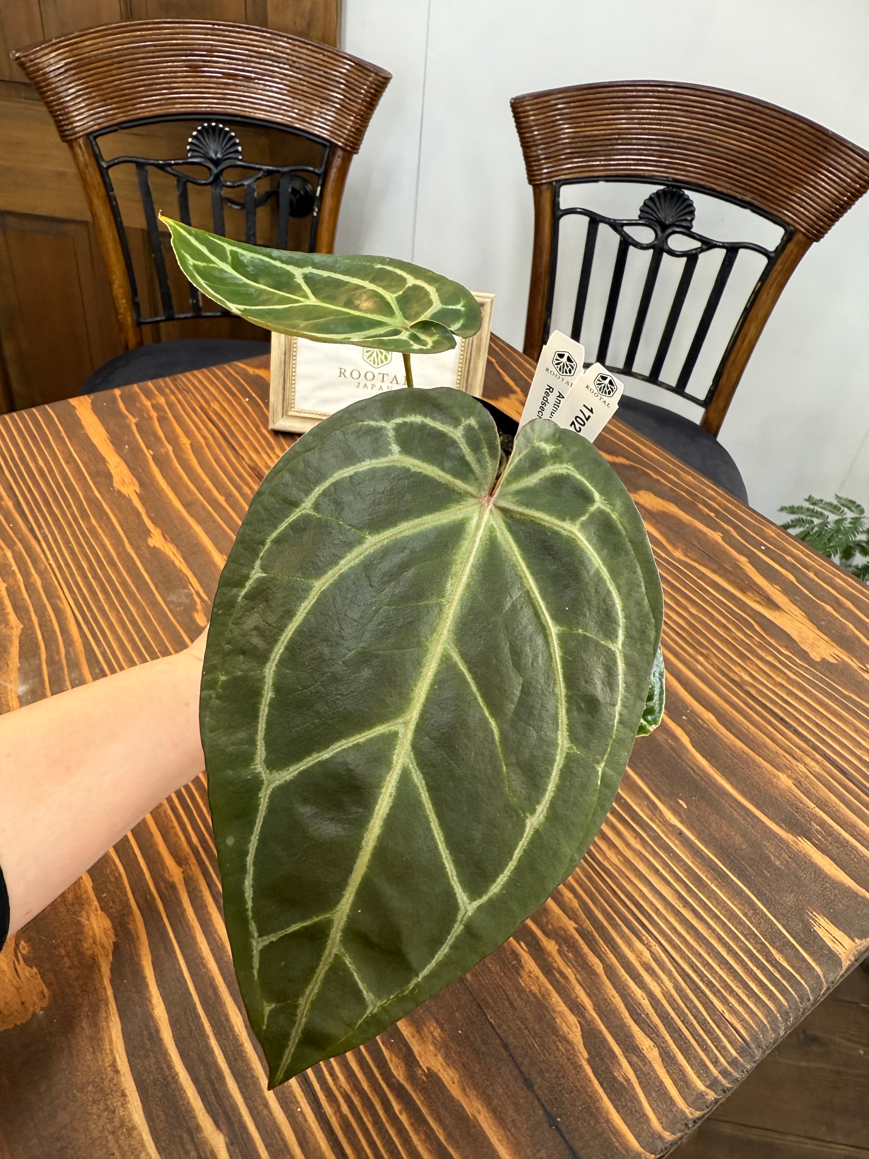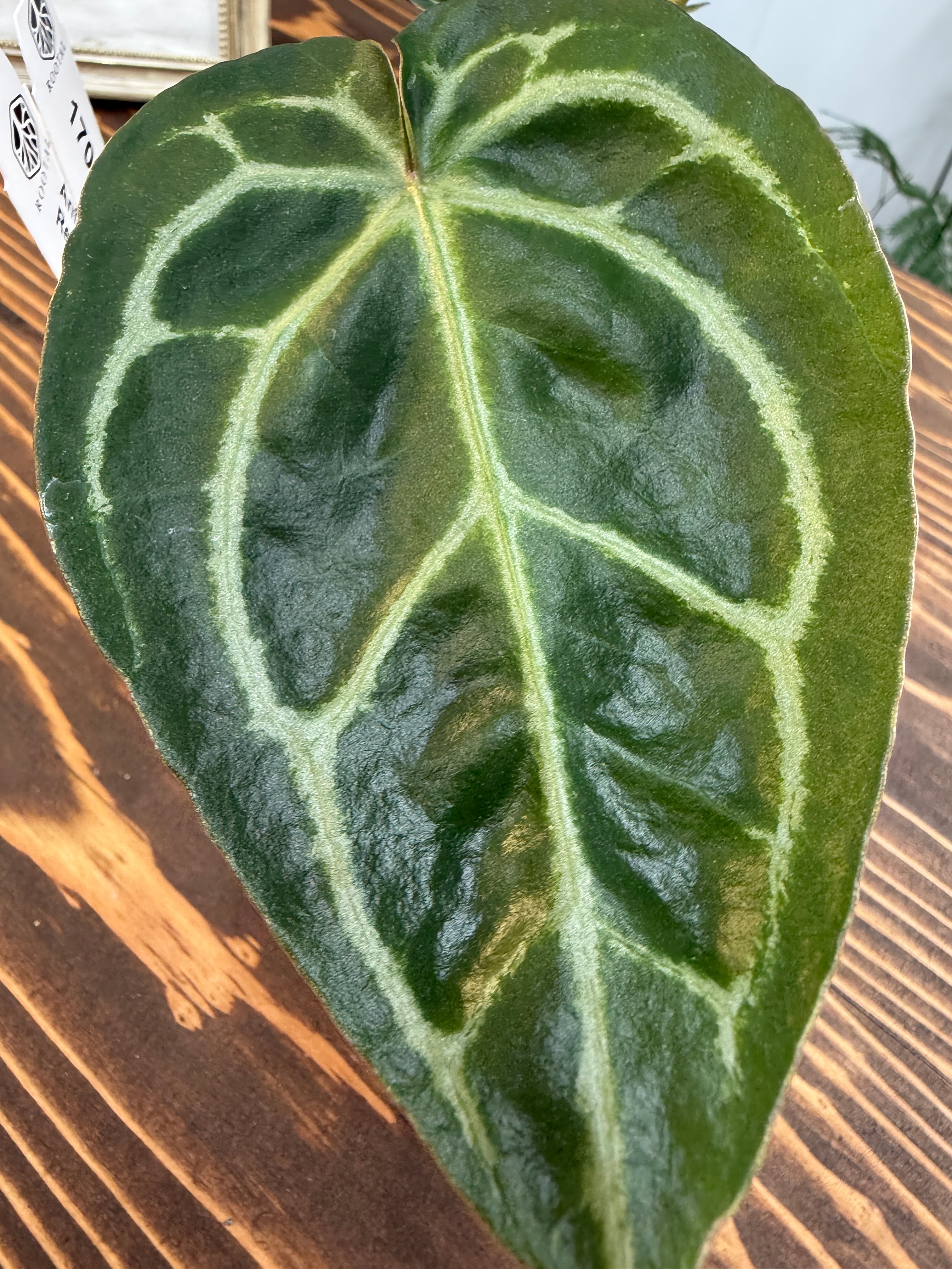 アンスリウム クリスタリナム レッドシークレットは、独特な葉脈が特徴の個体です。健康的に育った美しい植物をお届けいたします。