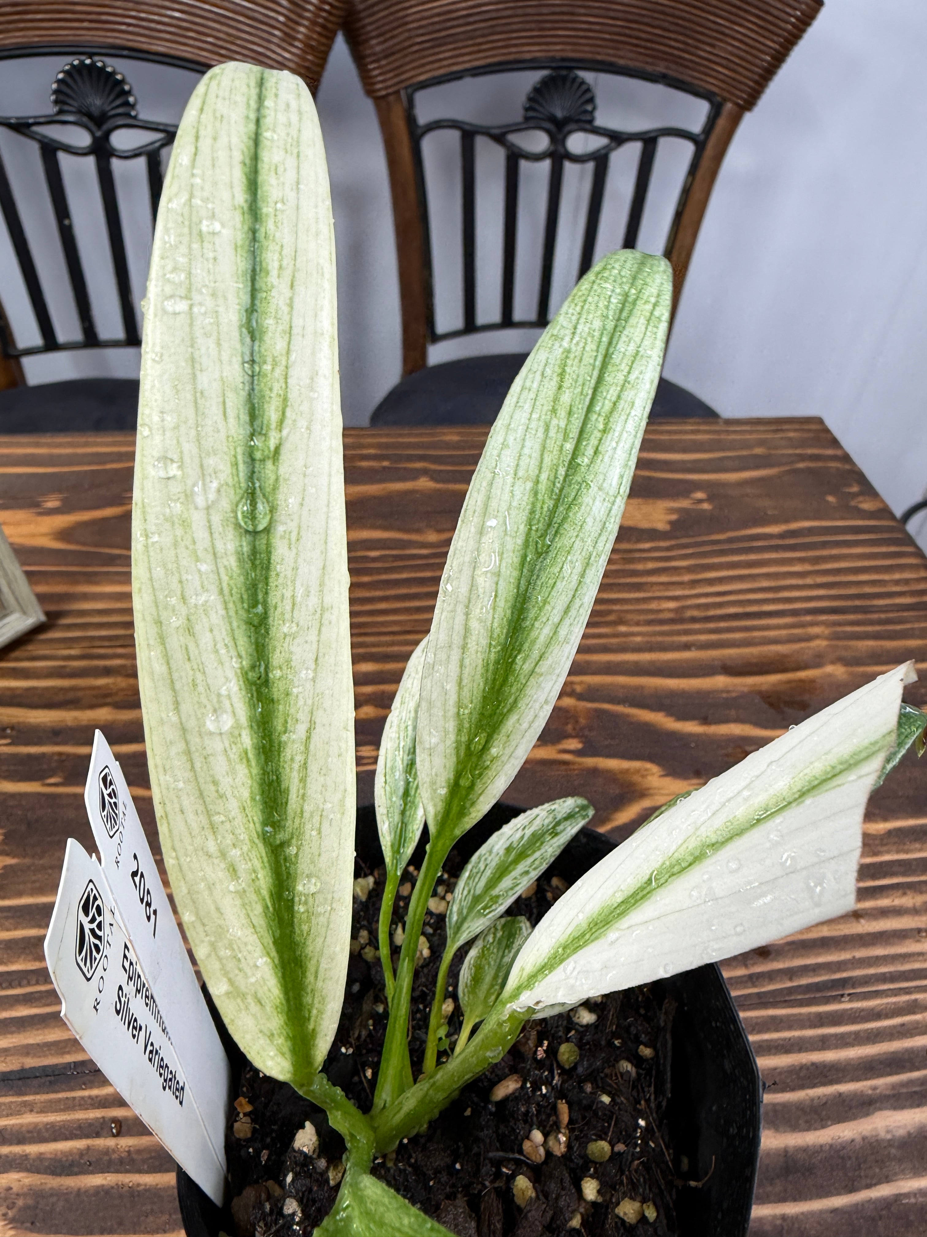エピプレムナム アンブリッシュマムシルバーバリエガータは、葉が美しいシルバーグレーの色合いを持ち、独自のバリエーションがあります。この絶妙なカラーは個体ごとに変わりますので、あなたに最適な一株を見つける楽しみがあります。