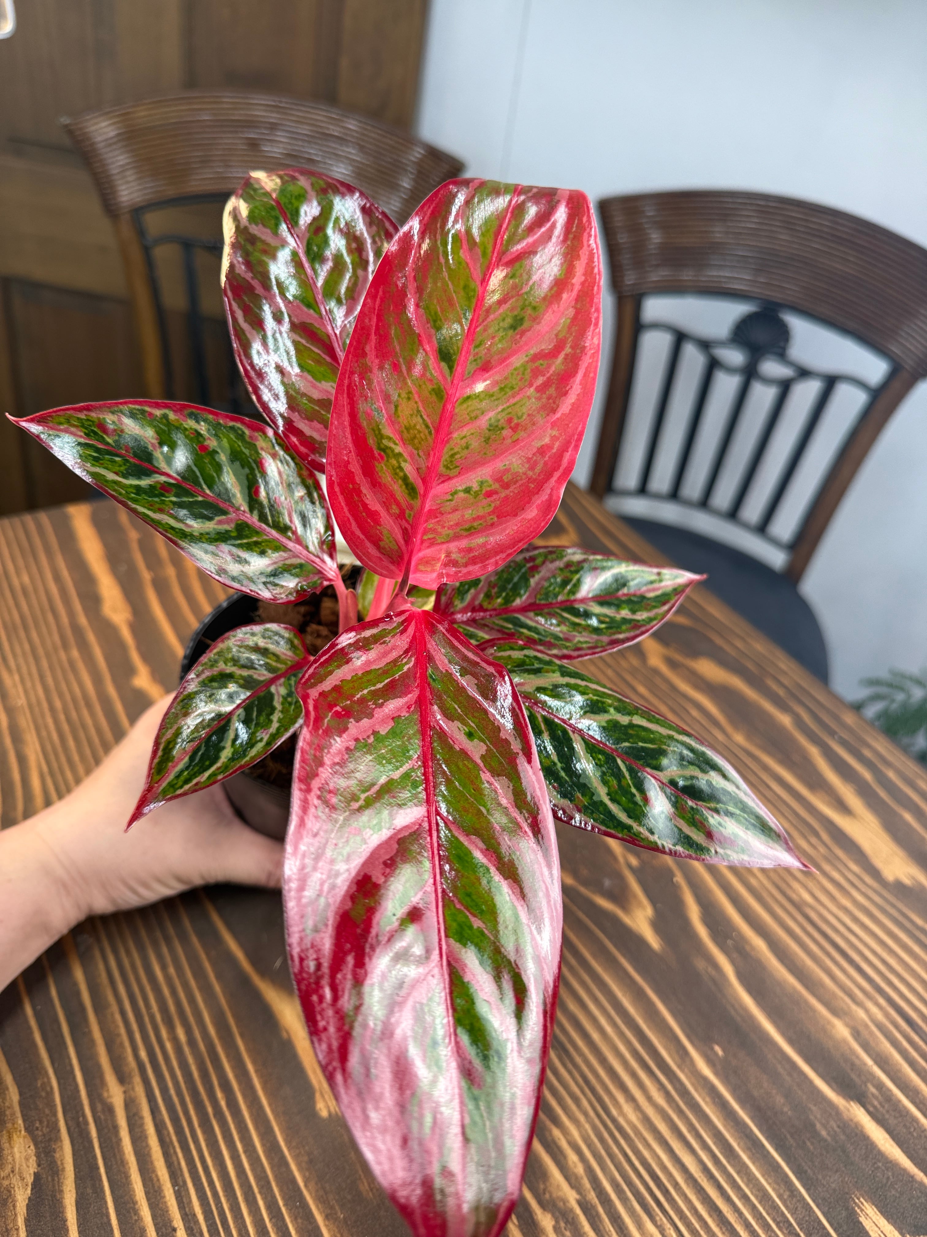 アグラオネマ レッドエメラルドドラゴンは、その美しい赤と緑のコントラストが魅力の観葉植物です。この若苗は、お部屋に華やかなアクセントを加え、心地よい雰囲気を演出します!丈夫な性質を持っているため、観葉植物初心者にもオススメです。