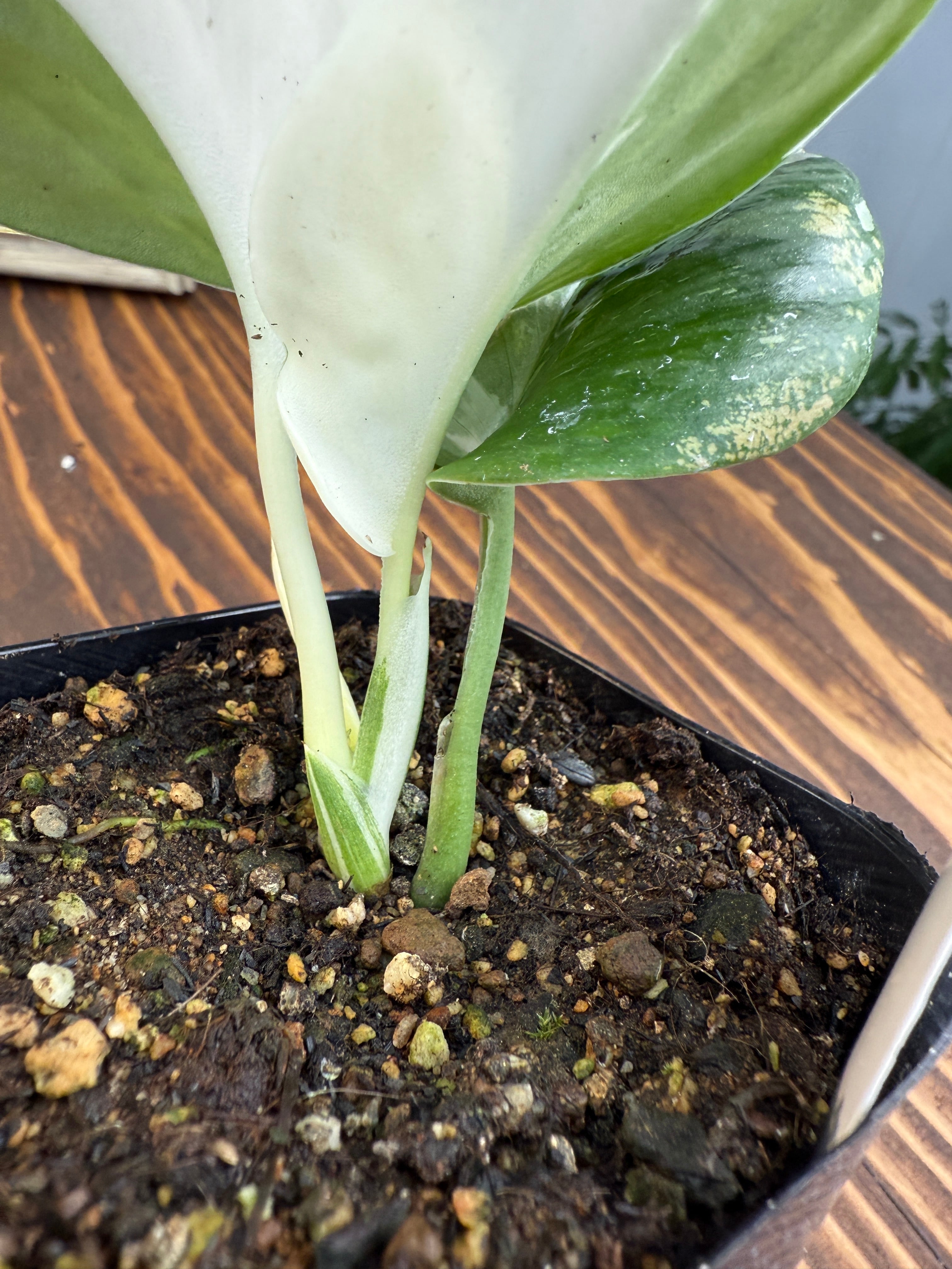 スキンダプサス トレビームーンライトは、月光のように美しく輝く葉が特徴の観葉植物です。この若苗は、お部屋のインテリアにナチュラルでエレガントな雰囲気を演出し、心地よい空間作りに貢献します!育てやすい性質を持っていますので、観葉植物初心者にも最適です。