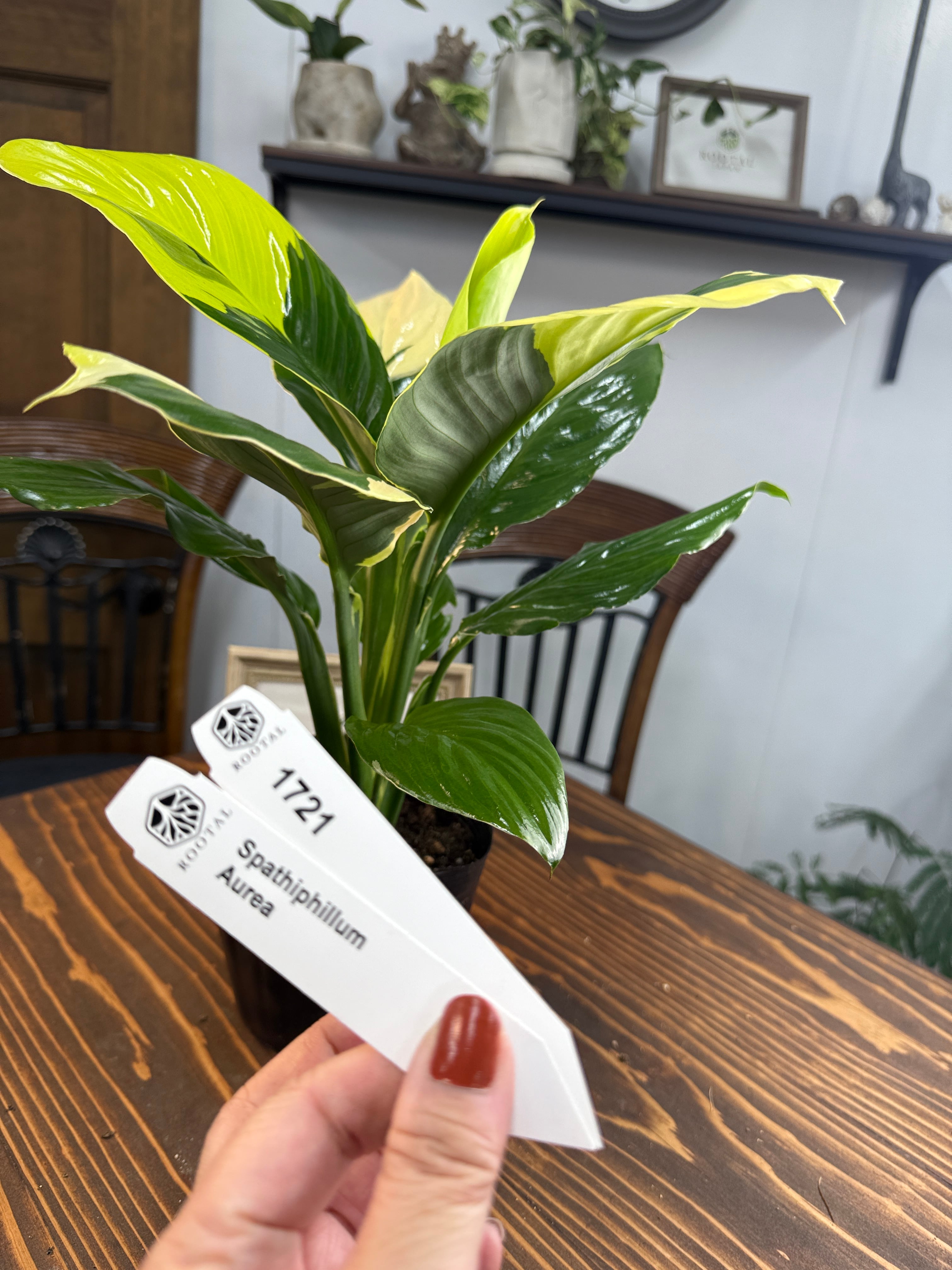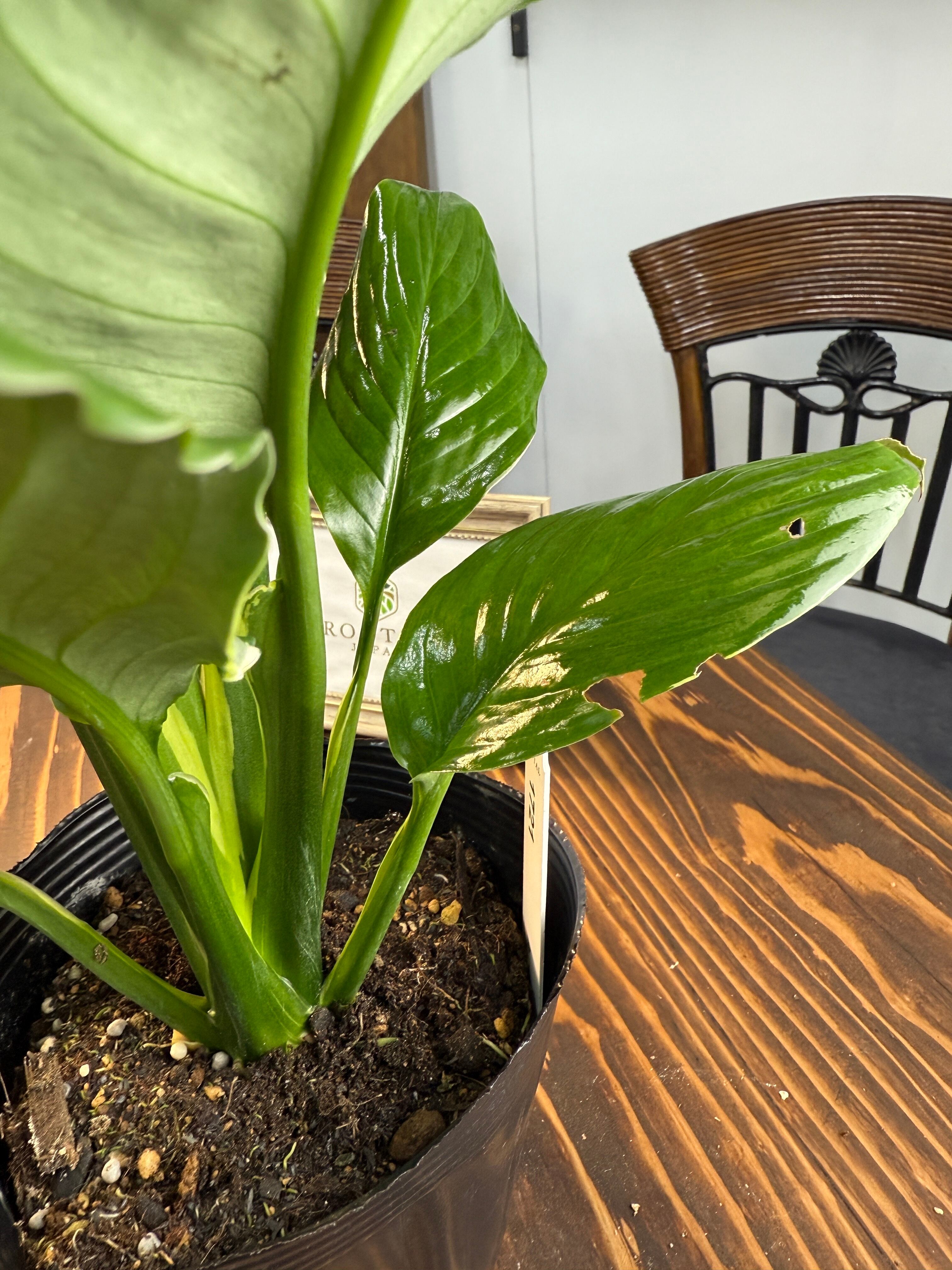 スパティーフィラム オーレアは、精緻な葉と美しい花が特徴の観葉植物です。この若苗は、お部屋のインテリアに華やかな雰囲気を加え、リラックスした空間作りに貢献します!育てやすい性質を持っているため、観葉植物初心者にもぴったりです。
