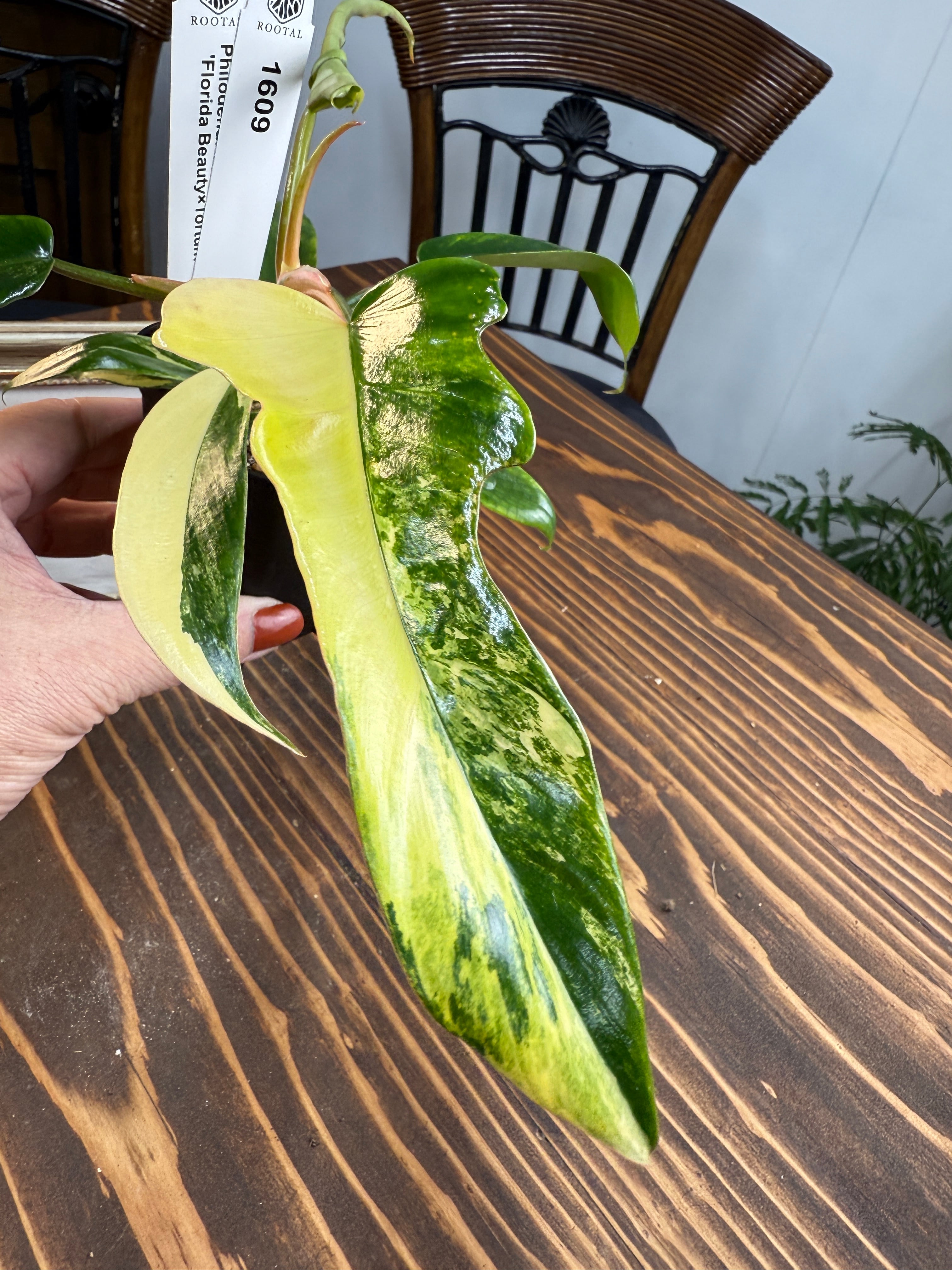 ★1609【淡黄斑の美彩葉】フィロデンドロン フロリダビューティー×トータム(2.5号ロング硬質ポット)