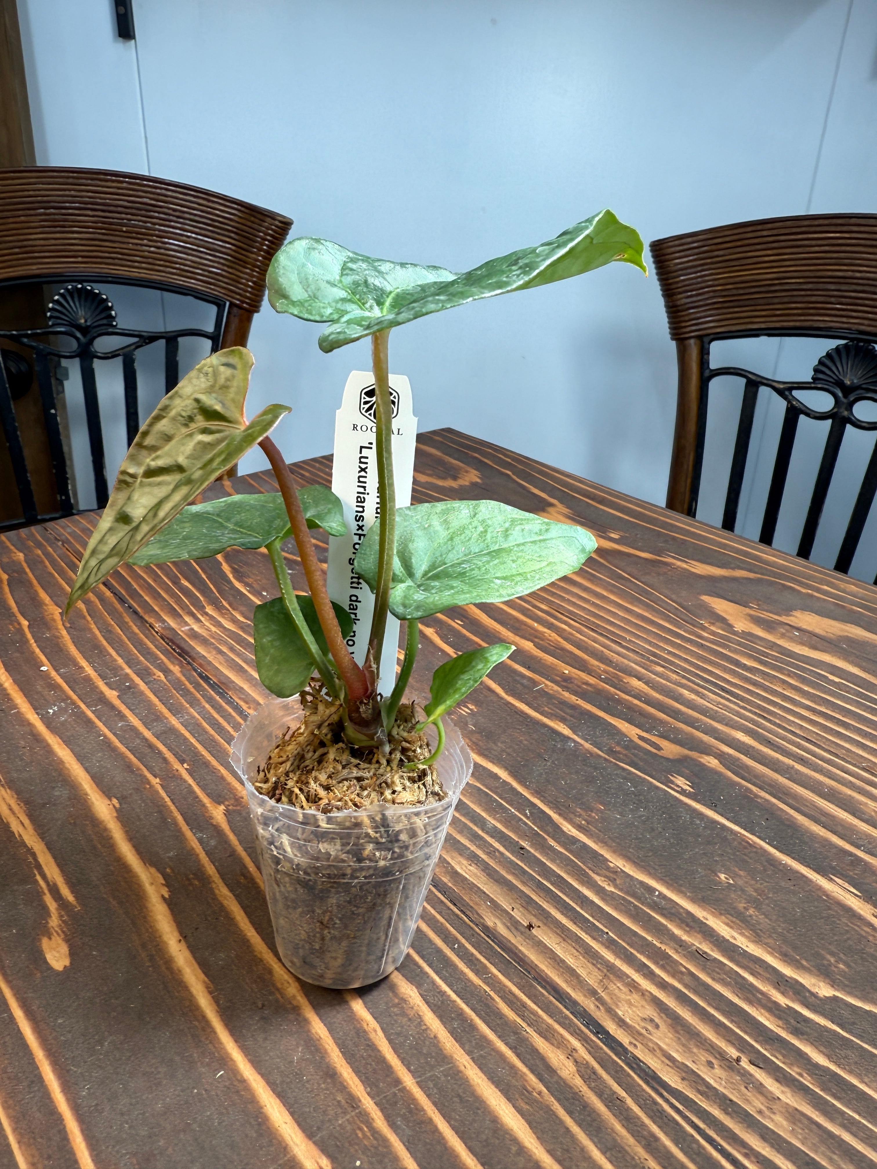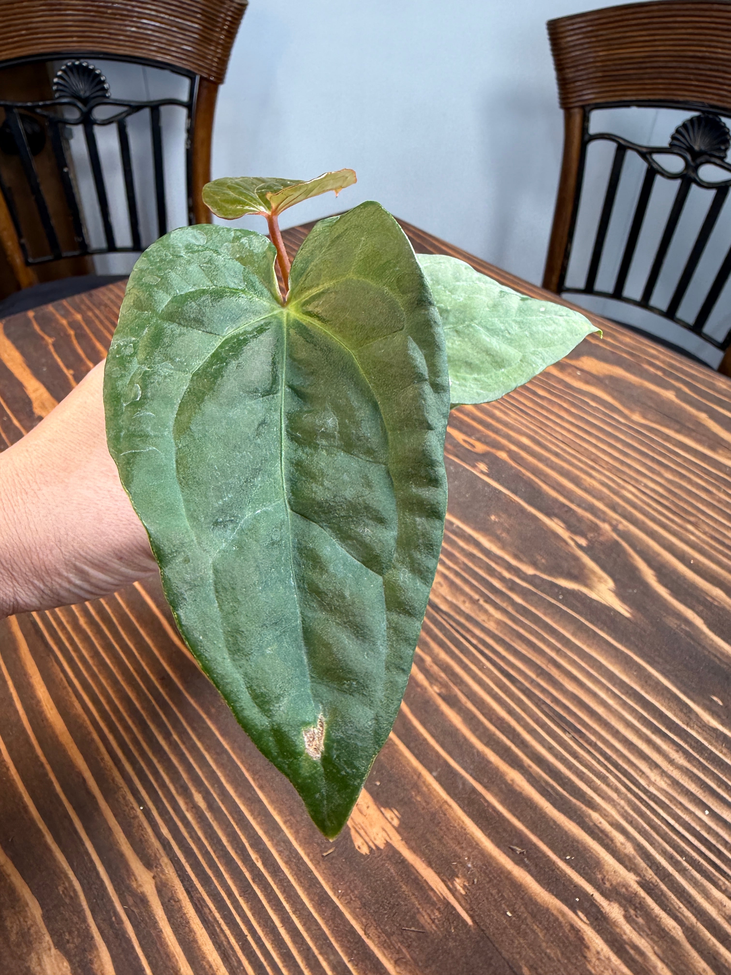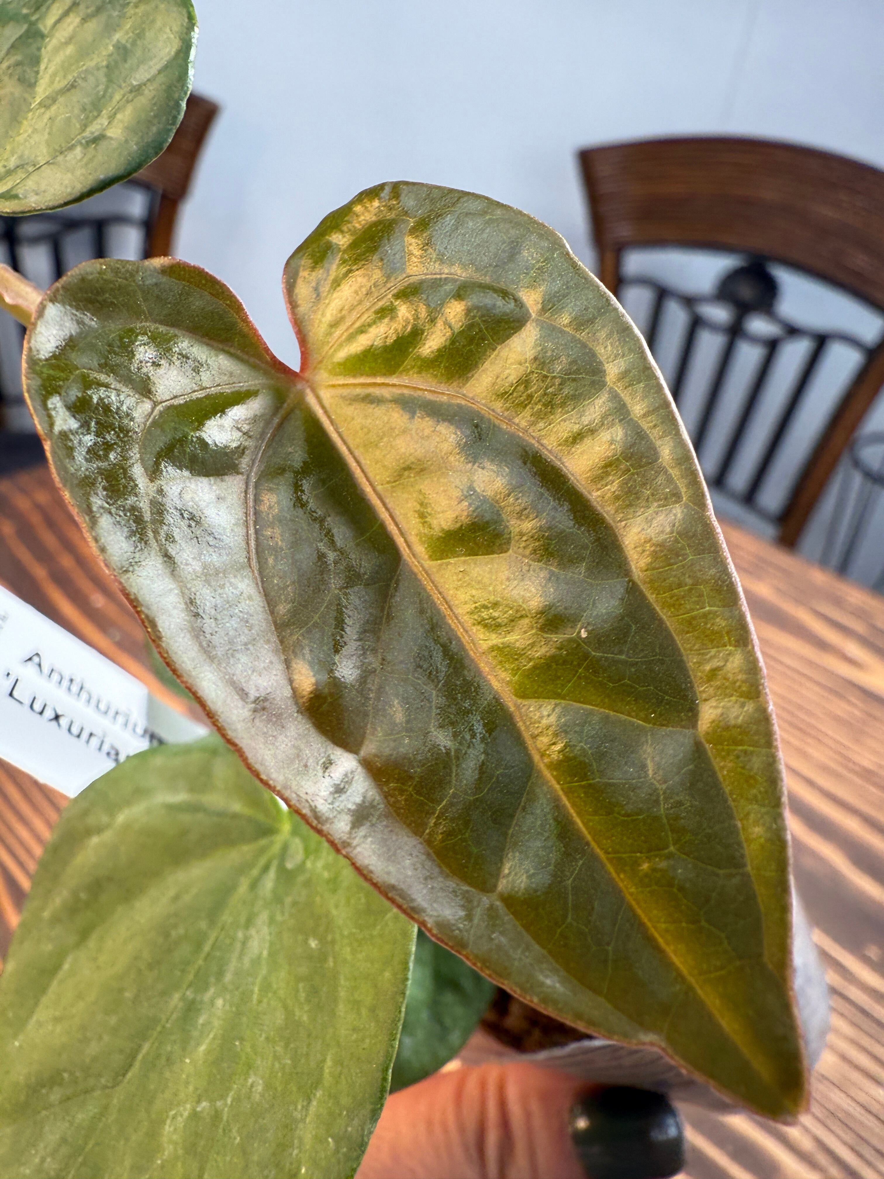 アンスリウム ルクスリアンス×フォルゲッティダークノーベインは、深みのある色合いと独特な葉の形状が特徴の観葉植物です。この希少なコンビネーションは、お部屋に特別なアクセントを加え、見る人を魅了します!明るい間接光で育てることで、その美しさが一層引き立ち、優雅な空間を演出します。