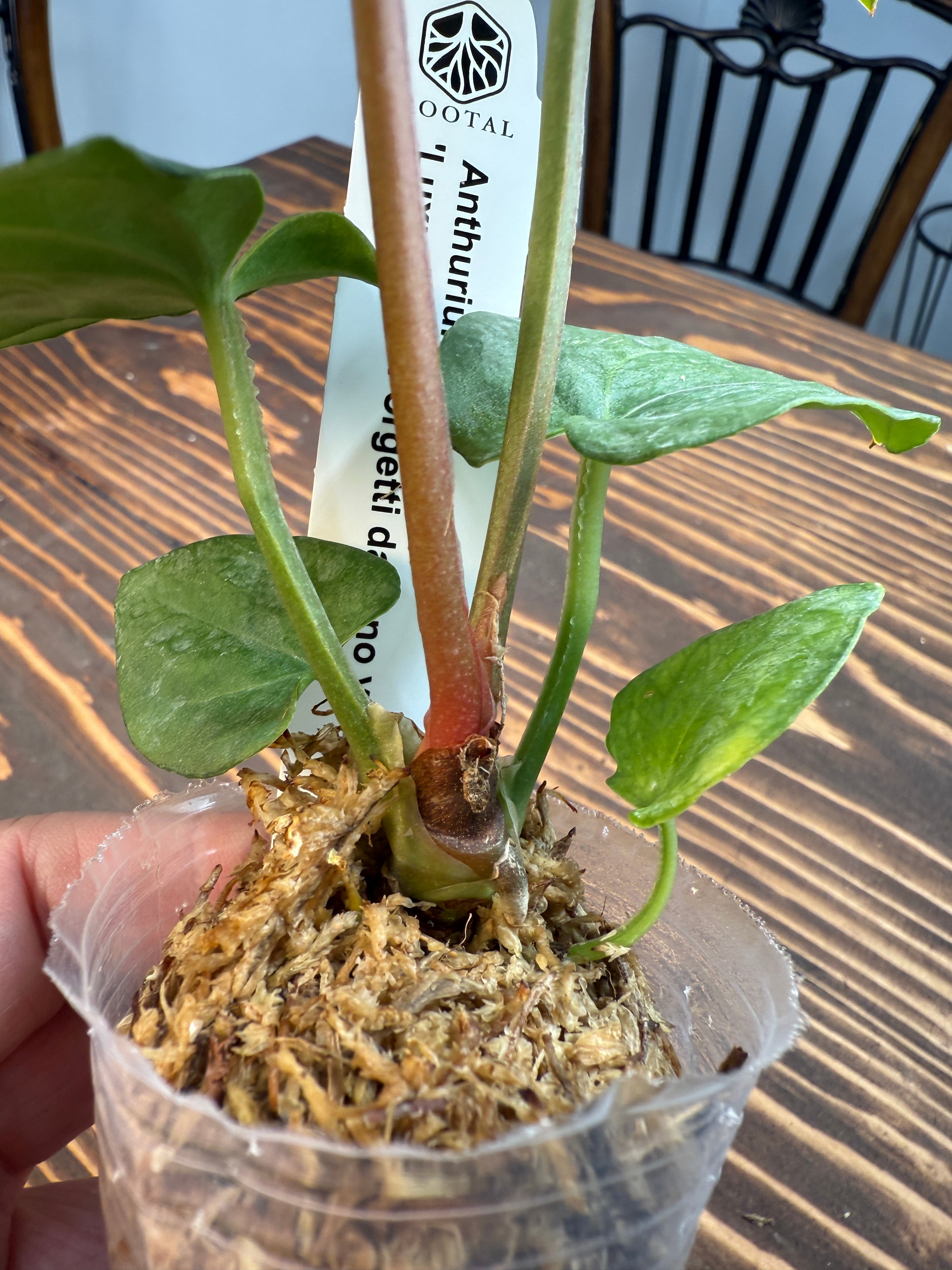 アンスリウム ルクスリアンス×フォルゲッティダークノーベイン、口径5㎝の健康的なポットでお届けします。各株に独自の個性があり、成長するにつれてその魅力が増し、あなたのお部屋に特有の存在感をもたらします。