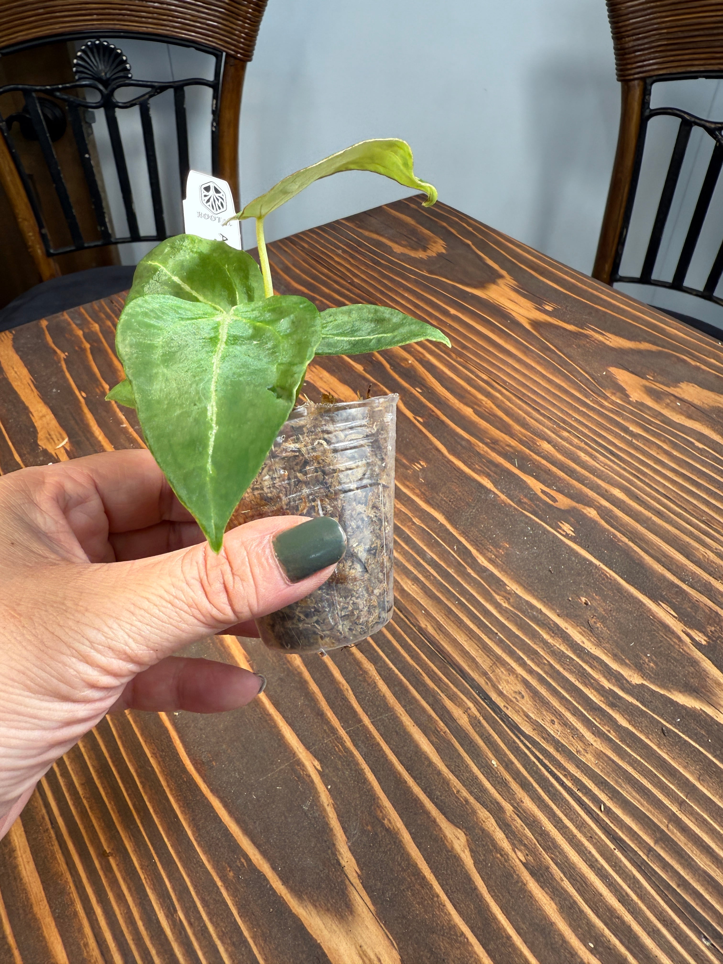 アンスリウム フォルゲッティー、口径5㎝の健康的なポットでお届けします。各株に独自の個性があり、成長するにつれてその魅力が増し、あなたのお部屋に特有の存在感をもたらします。
