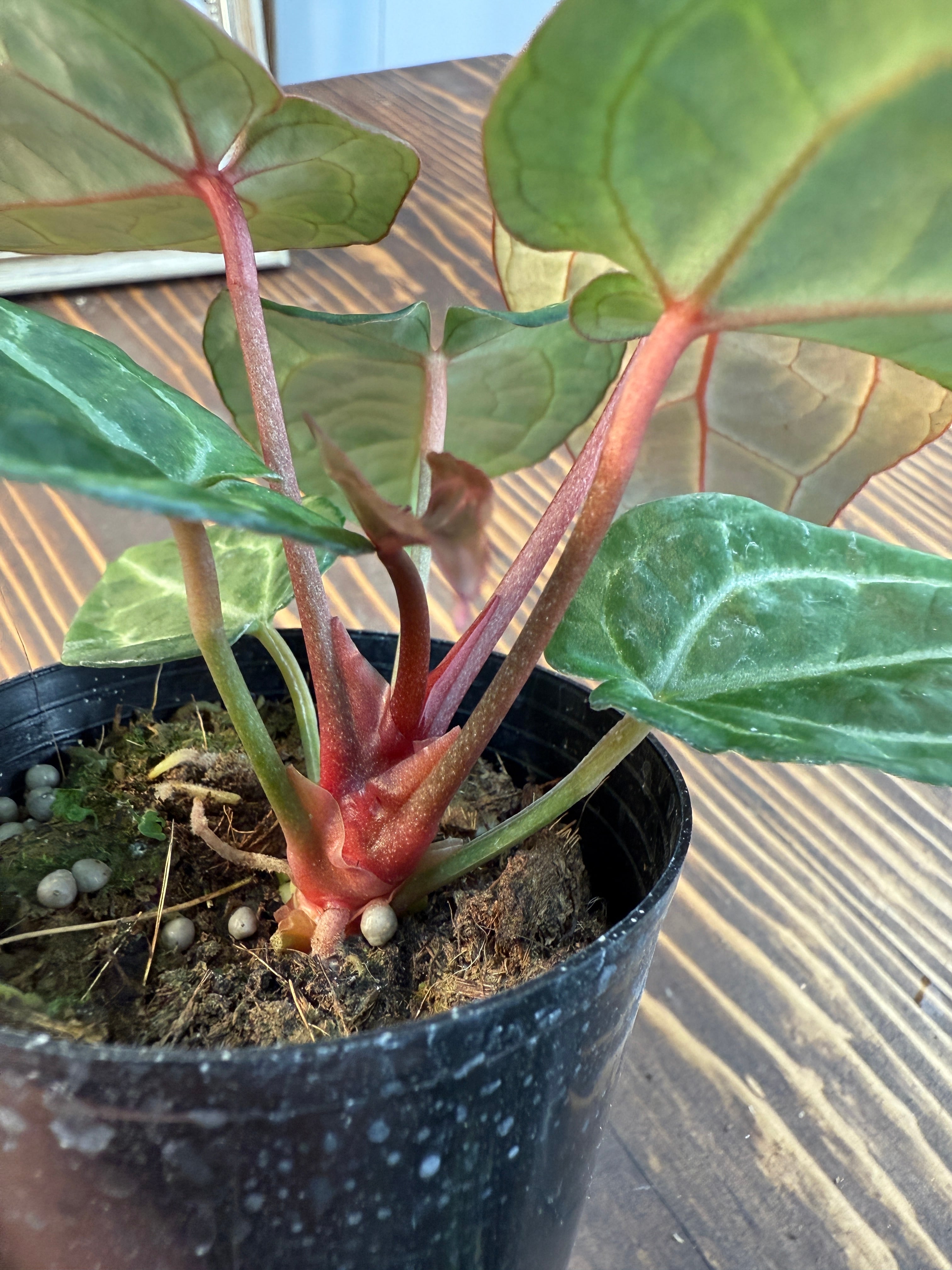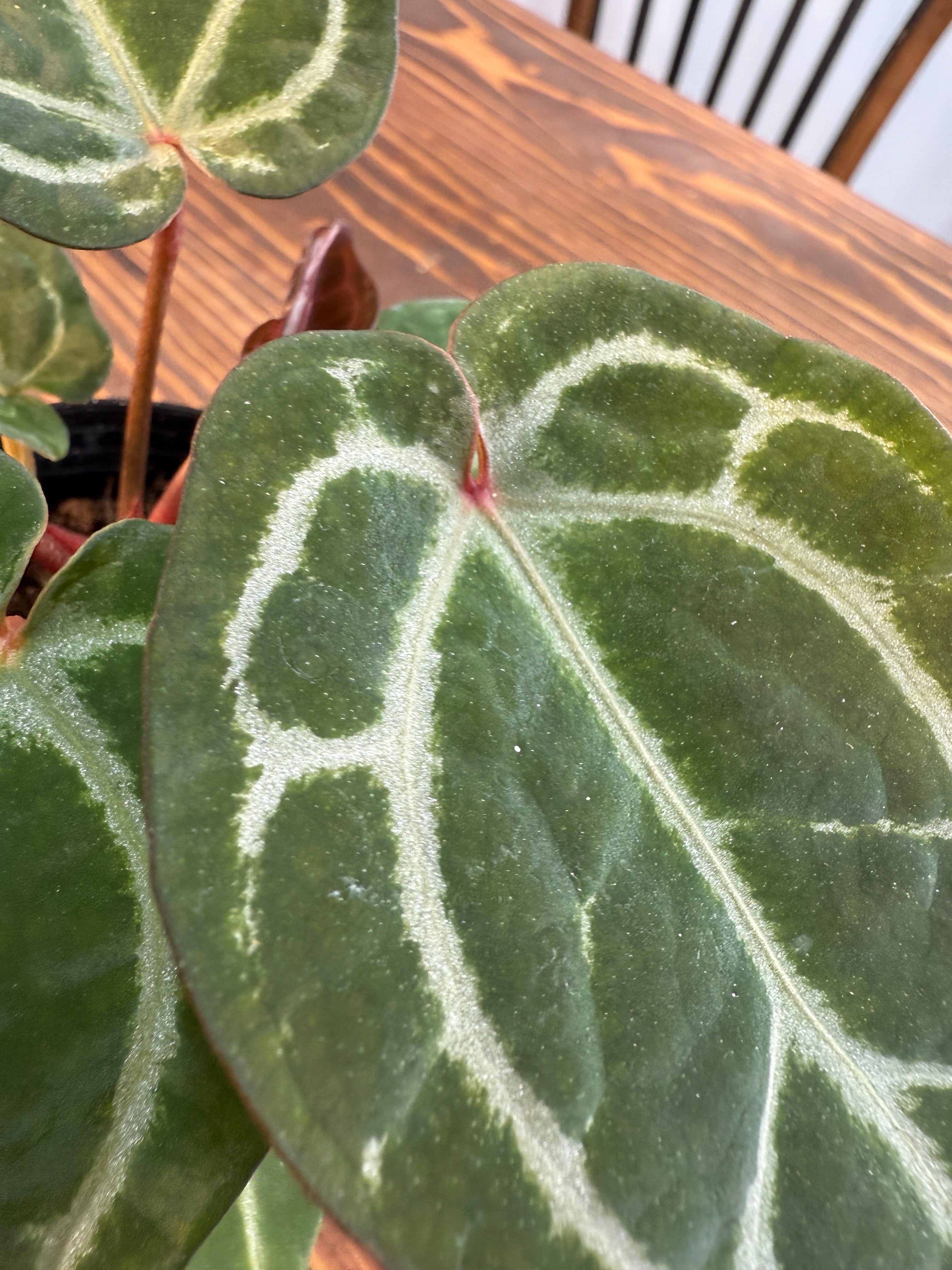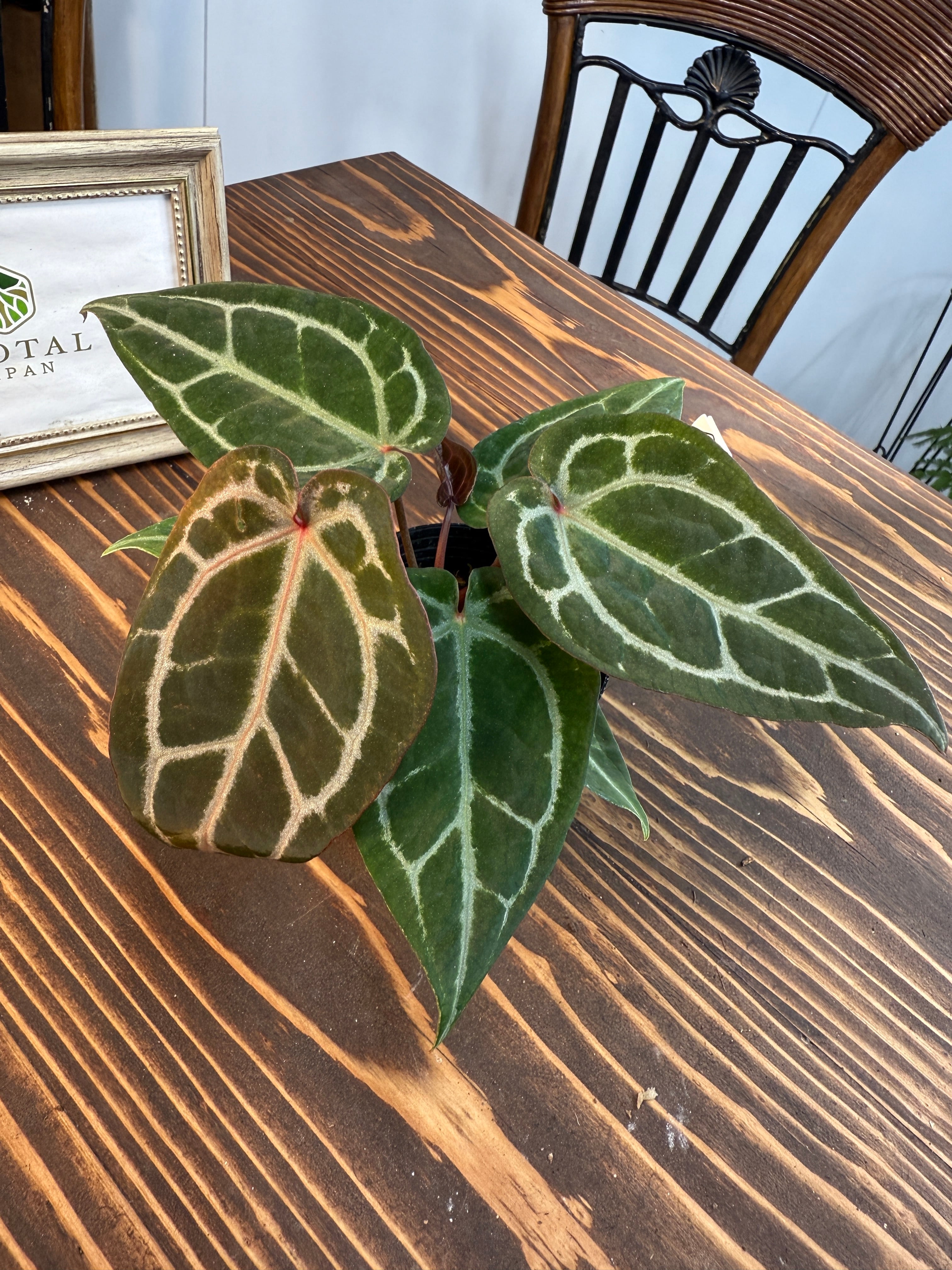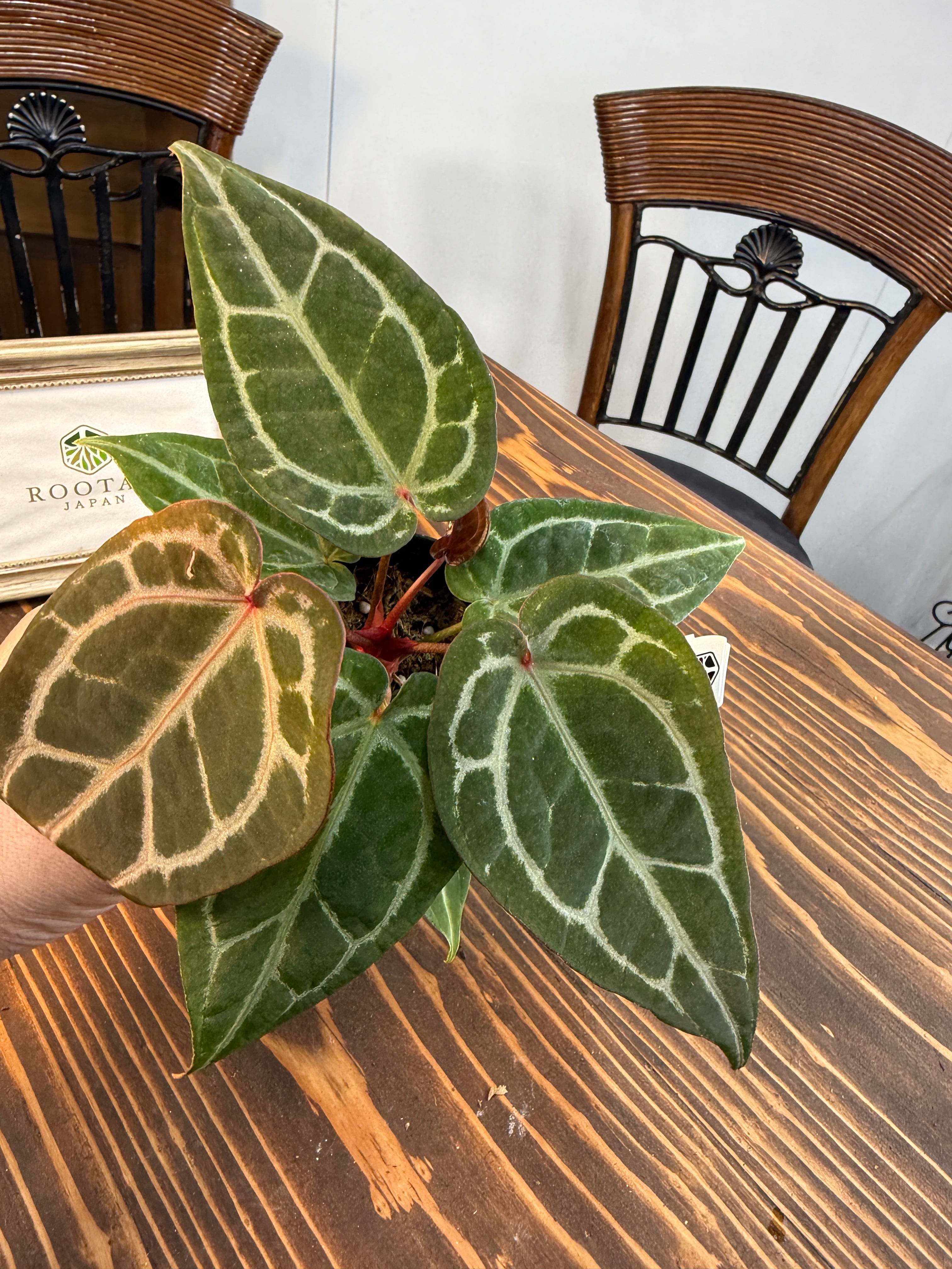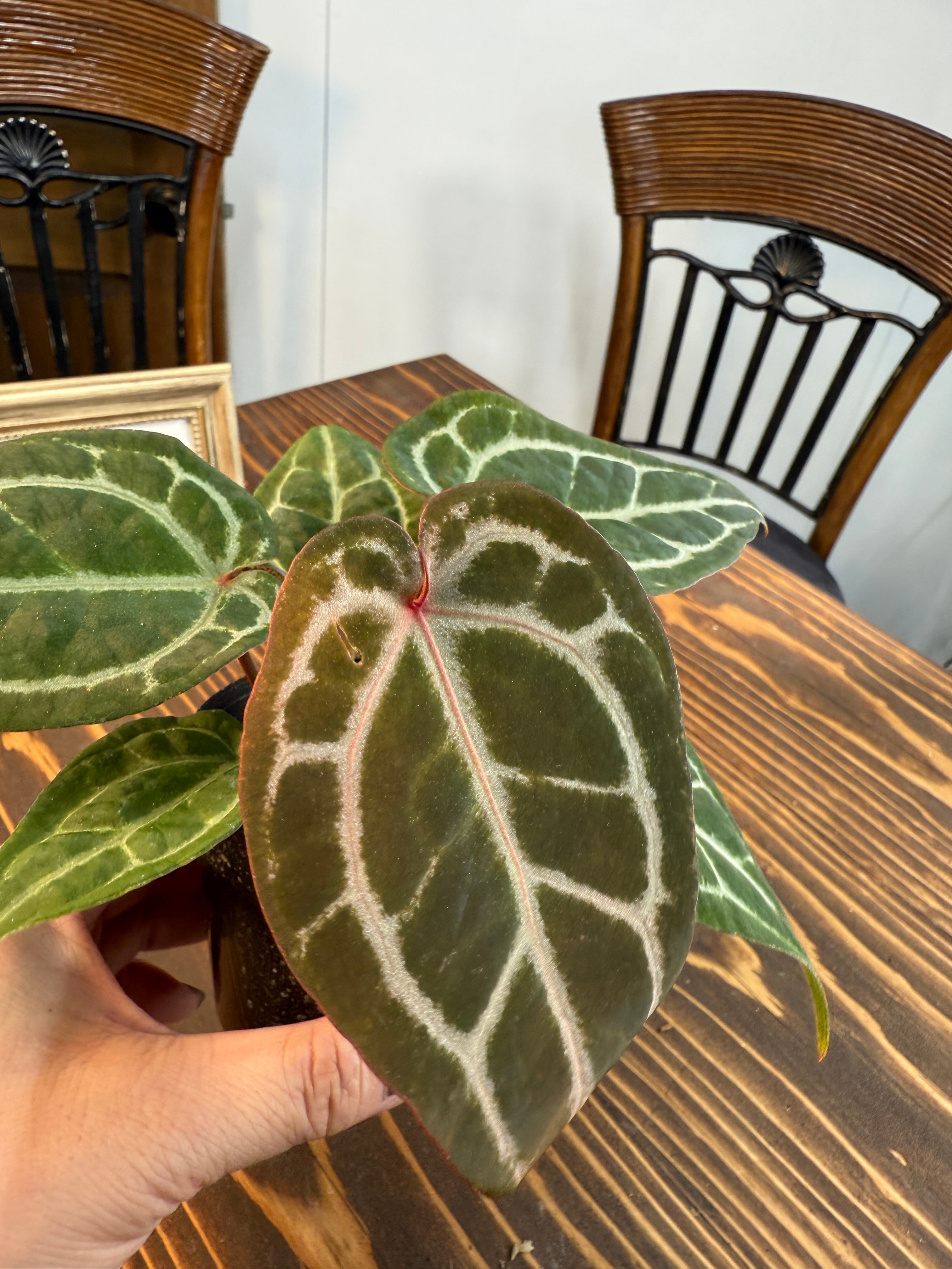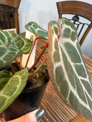 ★1626【艶紅の葉脈】アンスリウム レッドクリスタリナム♯2×♯1 (2.5号プラ鉢)