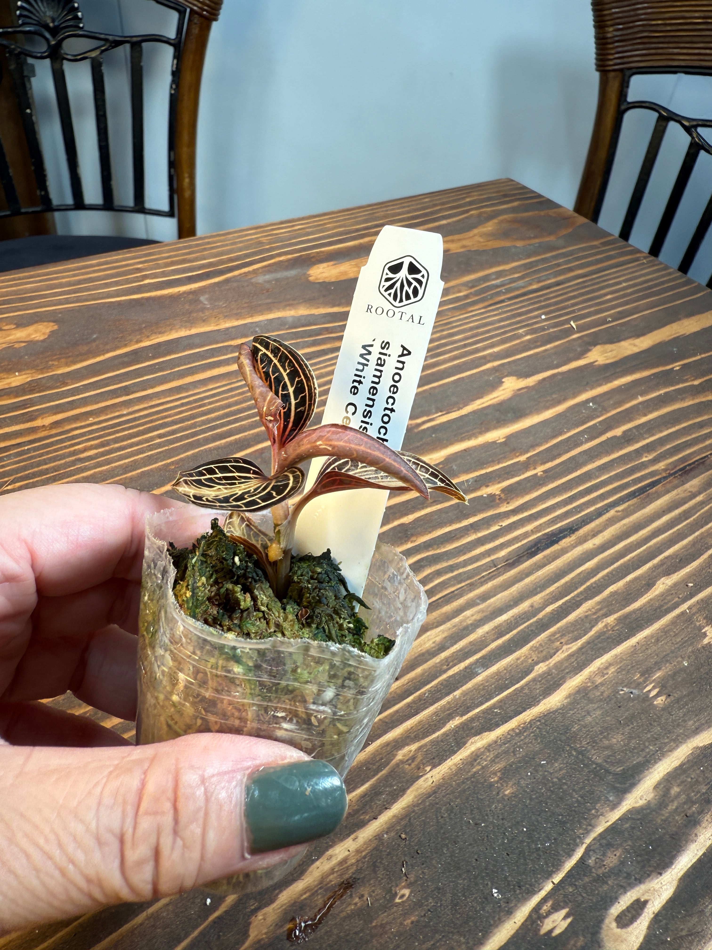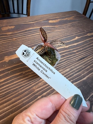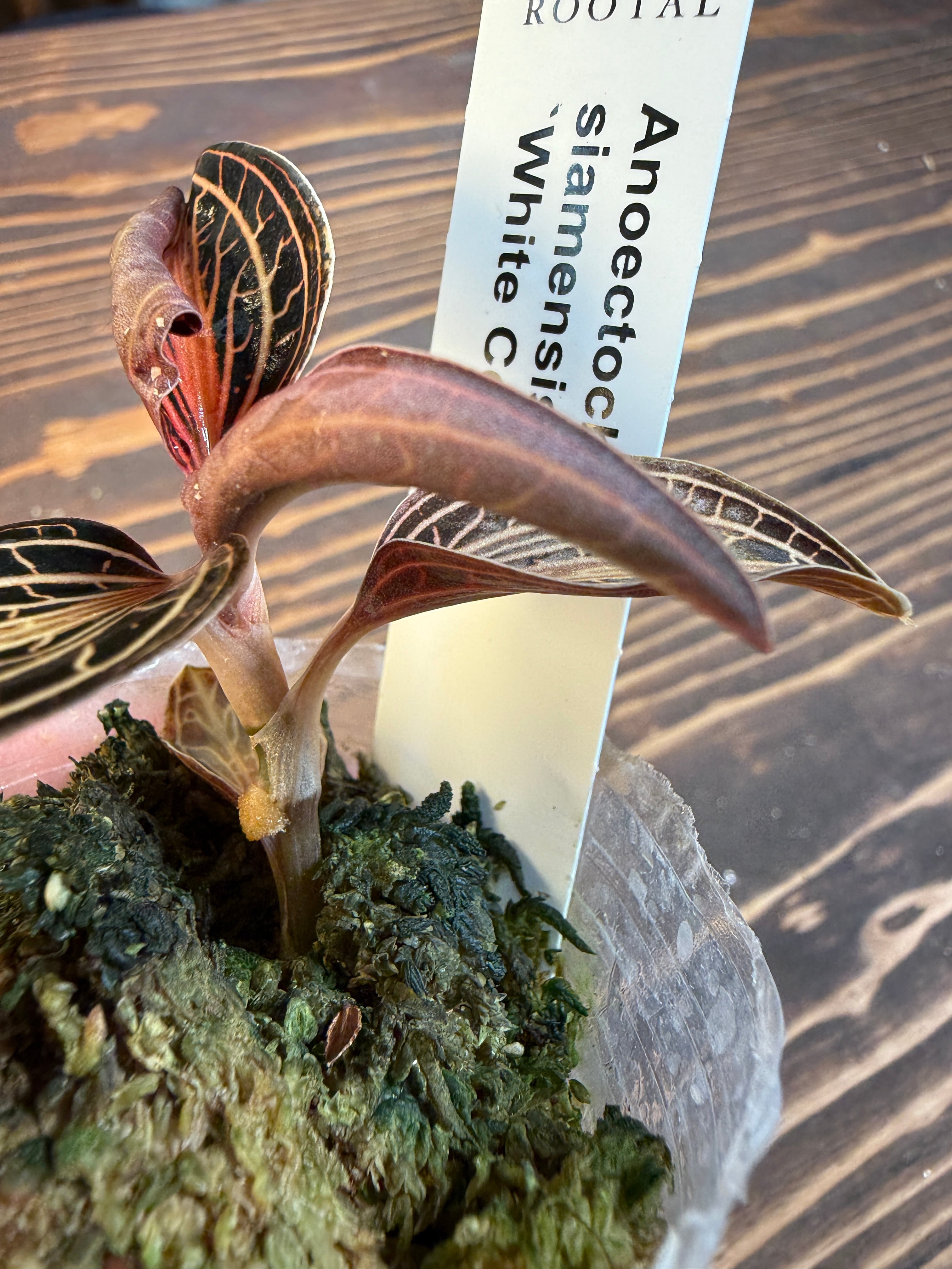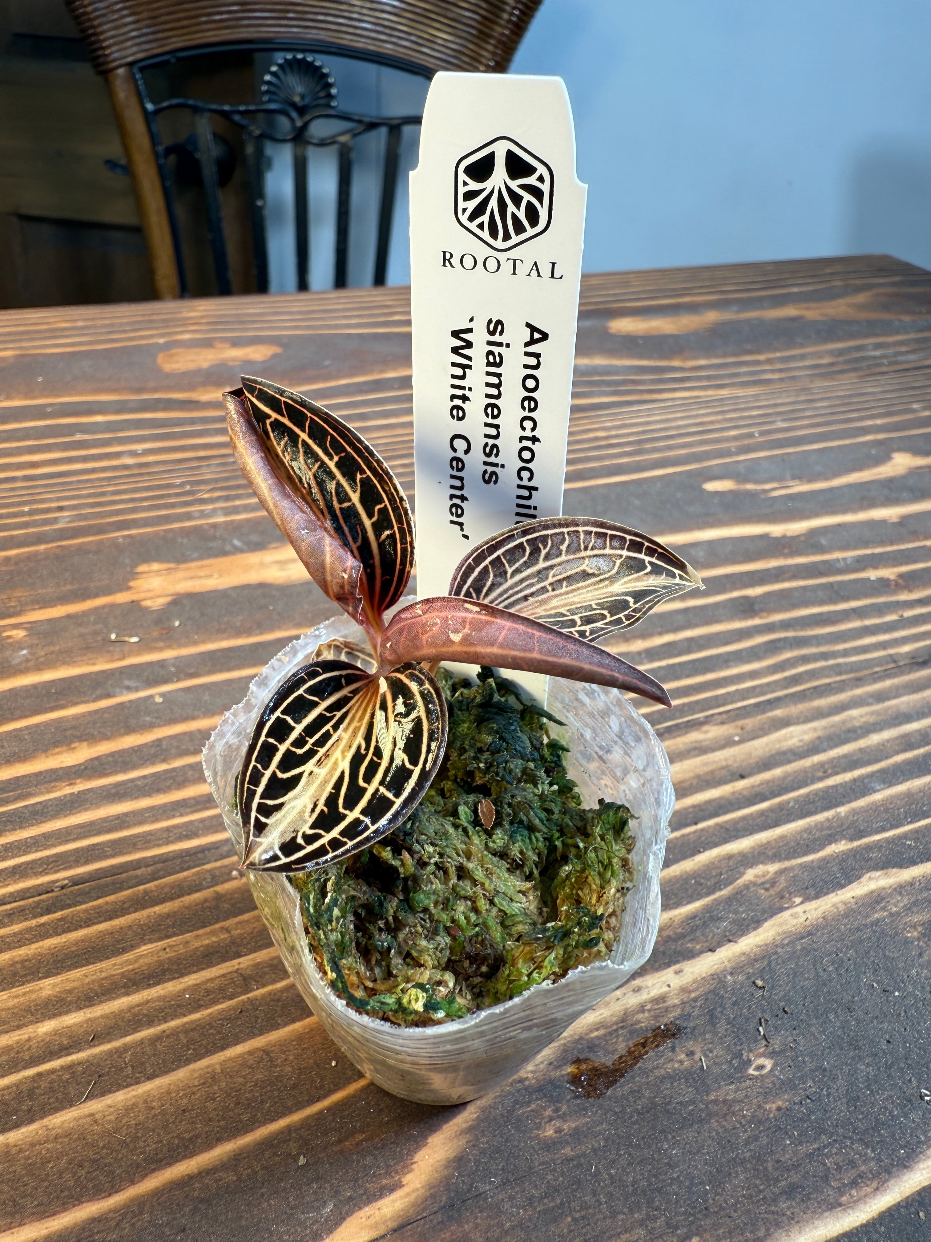 ジュエルオーキッド!!美しい葉模様が特徴のアネクトキルス サイアメンシス ホワイトセンター!その優雅な姿は、インテリアにナチュラルな雰囲気を与え、心地よい空間を演出します。日本国内で丁寧に育てられた特別な株は、自宅で自然の美しさを楽しむための素晴らしい選択です。